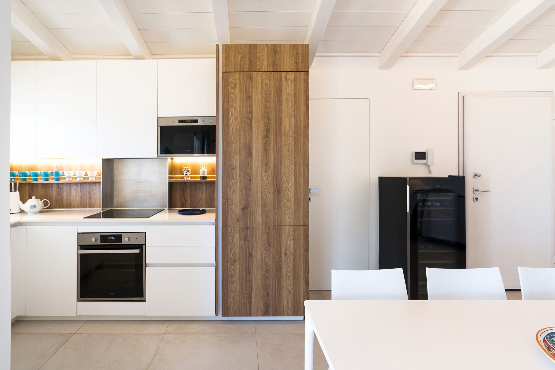 Første etasje: stue med peis (aircondition, smart-TV), spiseplass og kjøkken (komfyr, stekeovn, kjøleskap, fryser, oppvaskmaskin, mikrobølgeovn, brødrister, espressomaskin, americano kaffemaskin ), vaskerom, 2 doble soverom (aircondition, myggnett) hver med eget bad med dusj.