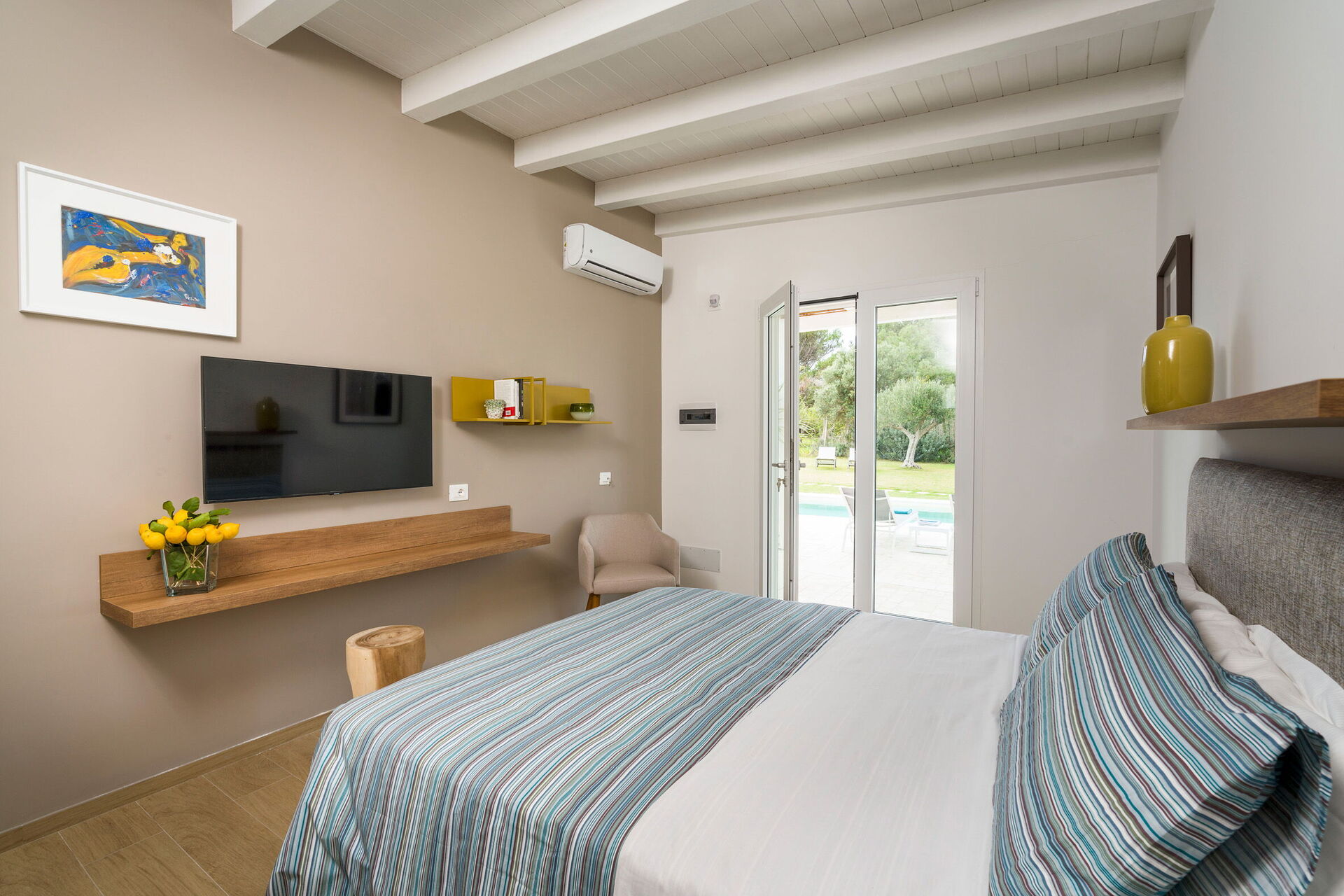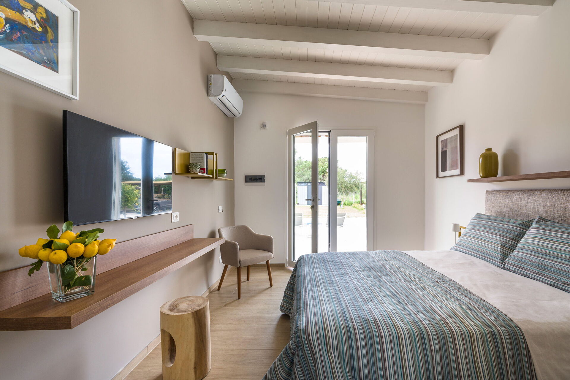 Første etasje (kun tilgjengelig fra utsiden og ikke koblet internt til resten av villaen): soverom med dobbeltseng (aircondition, minibar, myggnett) hvert med eget bad med dusj.