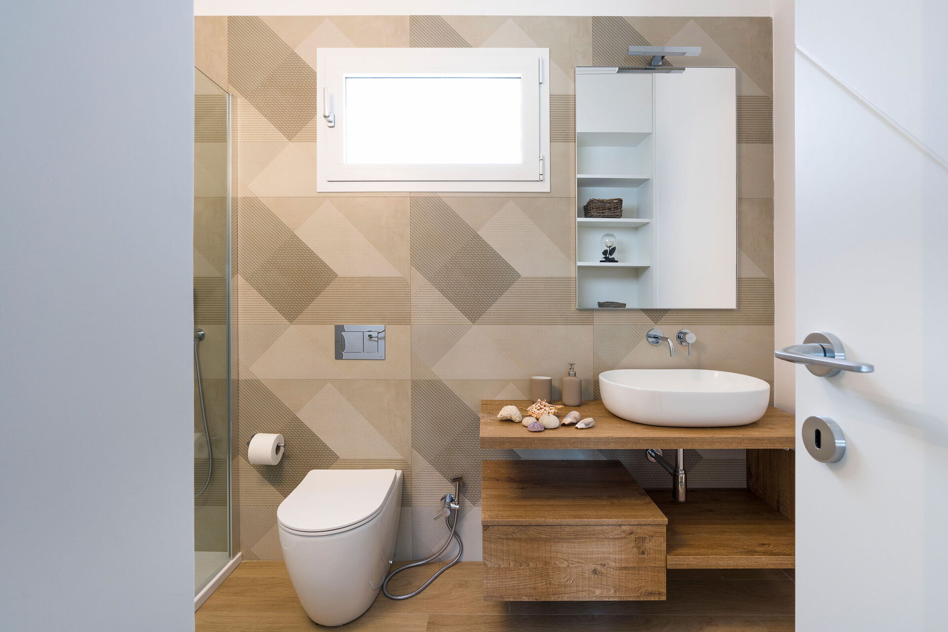 Første etasje: soverom med dobbeltseng (aircondition, minibar, myggnett) hvert med eget bad med dusj.