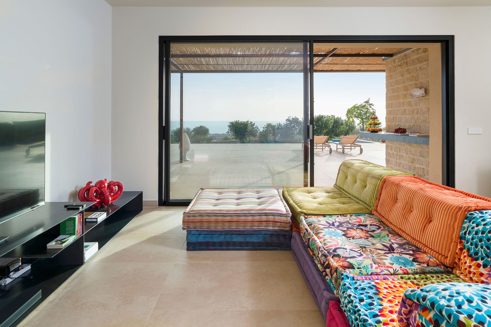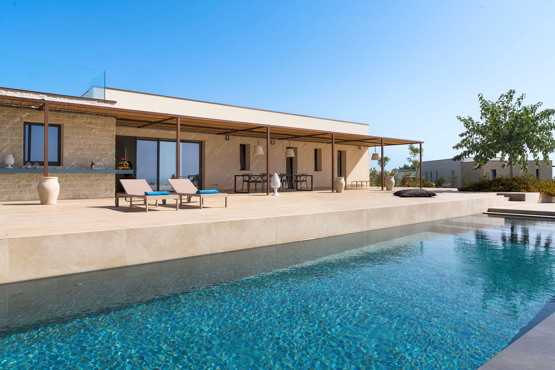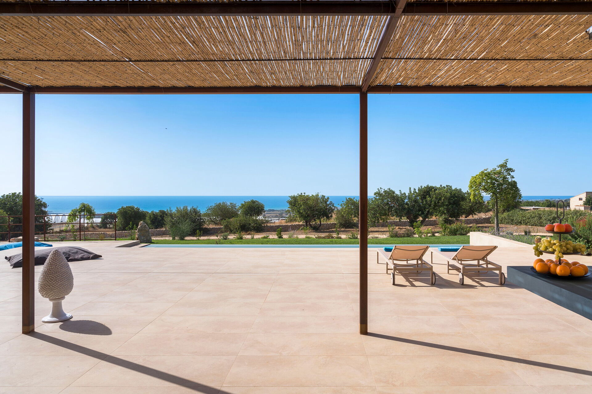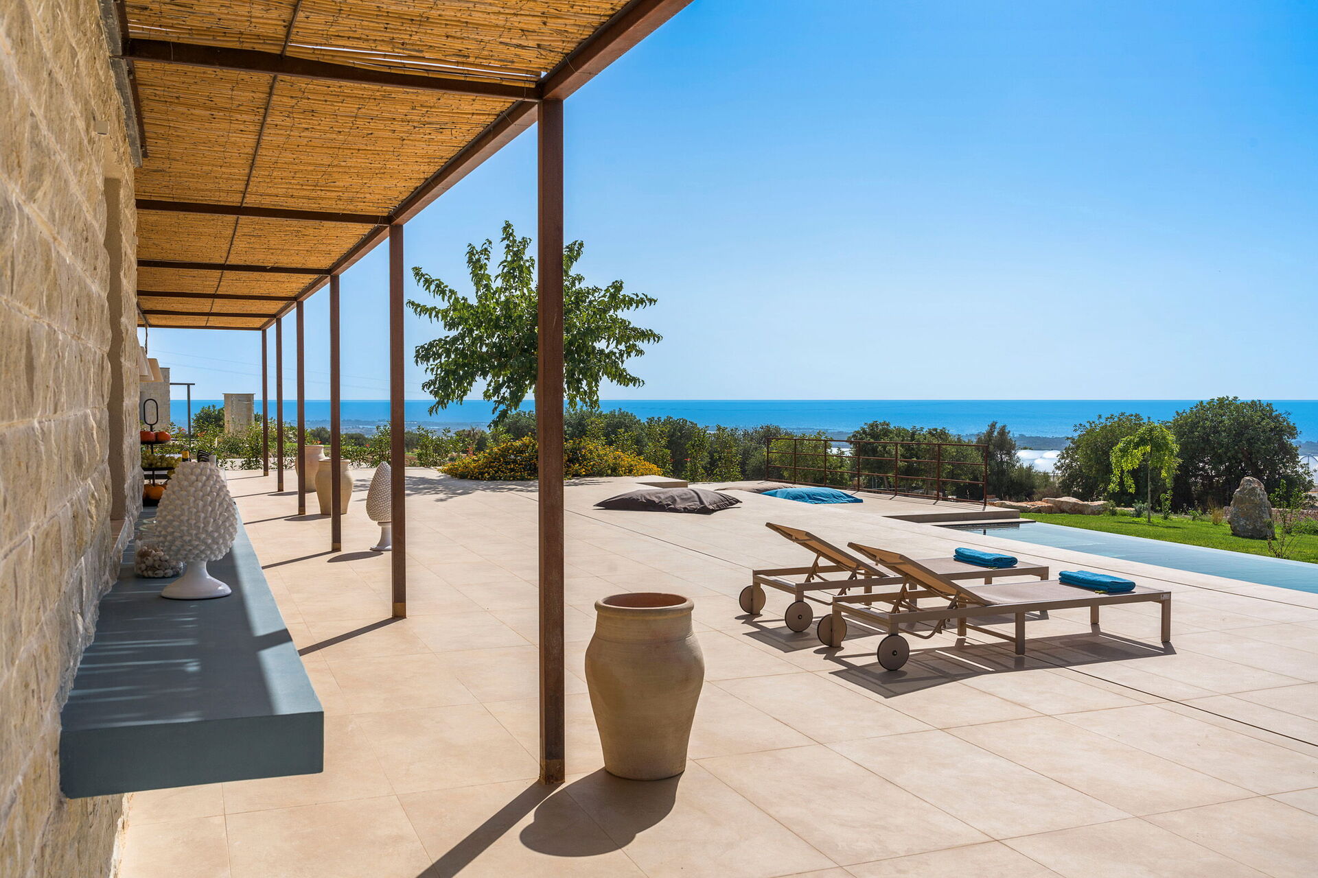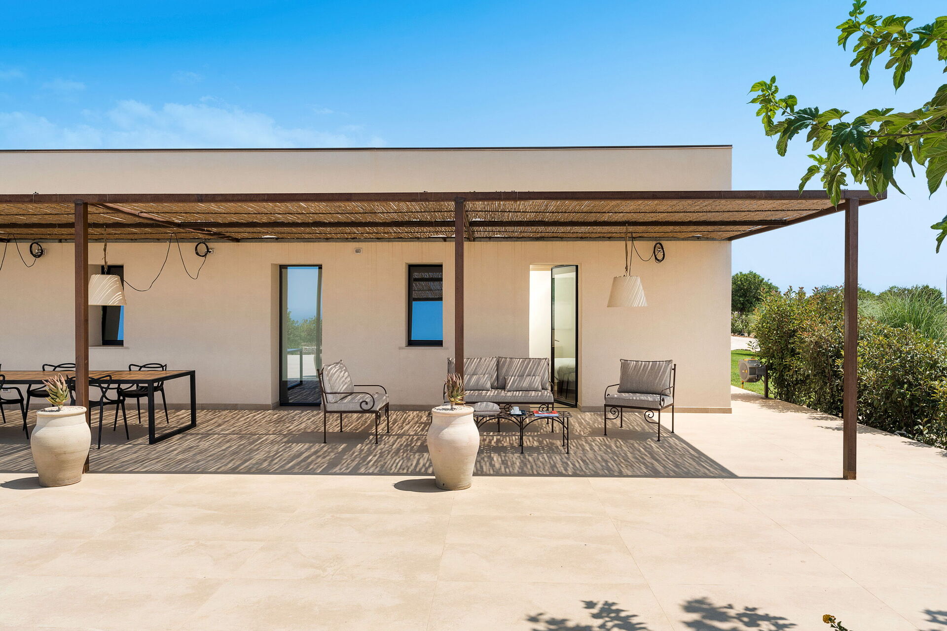 Ekslusivt feriehus i utkanten av Scicli (spektakulær barokkby som står på UNESCOs verdensarvliste) med rolig og naturskjønn beliggenhet med fantastisk utsikt over det vakre landskapet, landsbygda og havet, både fra bassenget og fra de romslige terrassene.
