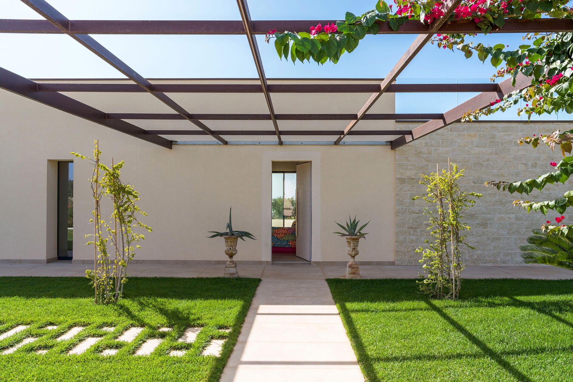 Nydelige Gelso Bianco har plass til opptil åtte personer i fire soverom, 3 soverom i hovedhuset og 1 i annekset.