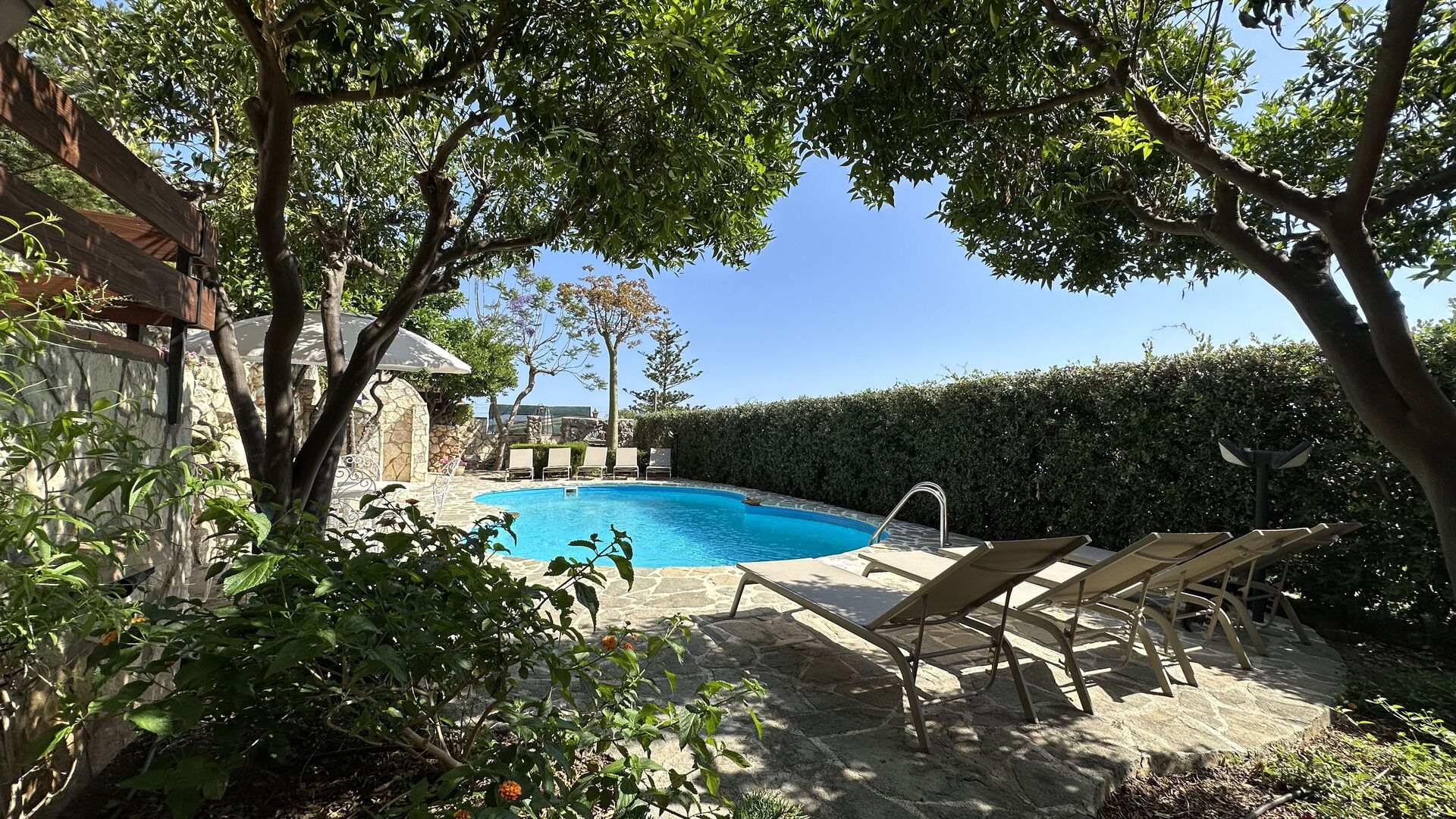 Mit Freunden zusammen haben wir beide Wohnungen gemietet. So ist es wirklich ideal, weil man das Schwimmbad für sich hat und sich völlig frei bewegen kann. Der Blick ist wunderschön und die Besitzer sind sehr nett.