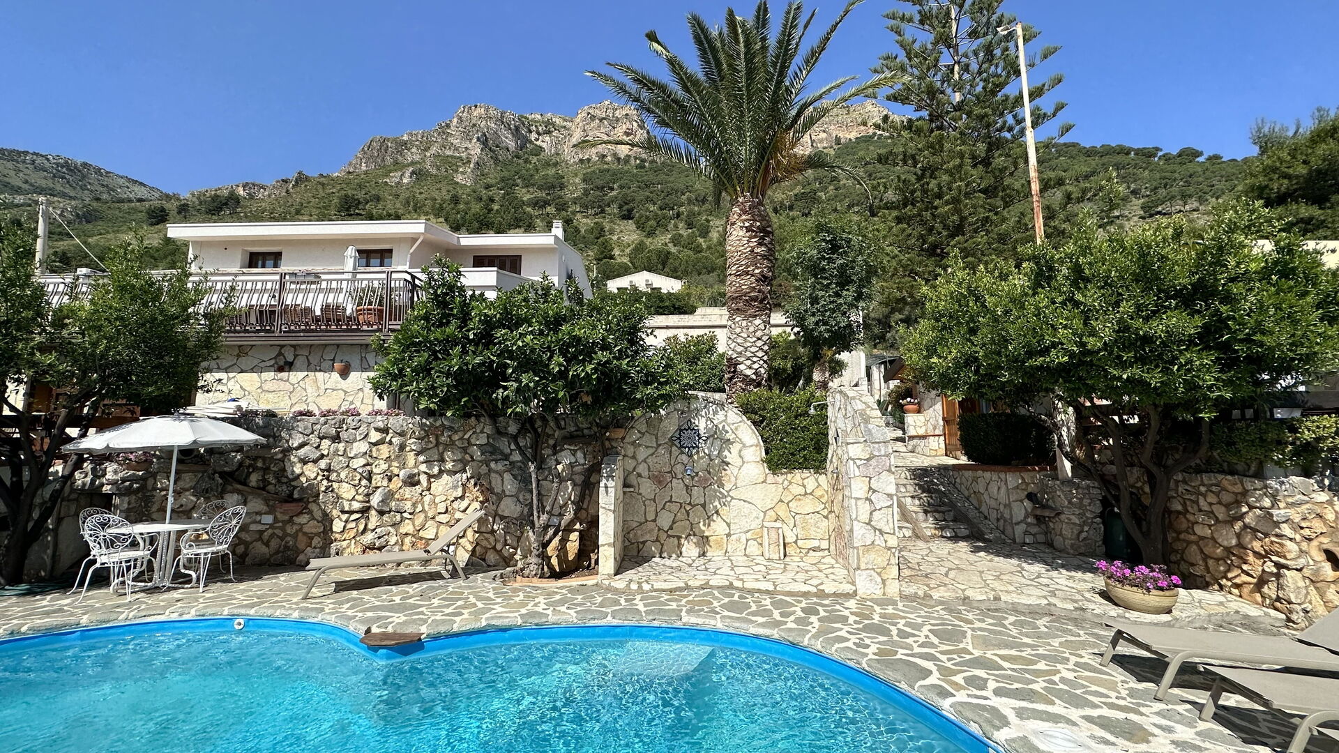 Avstander: Castellammare del Golfo, med alle slags butikker på ca. 1,5 km, Castellammare strender 2 km, Scopello 5 km, Palermo flyplass 15 km.