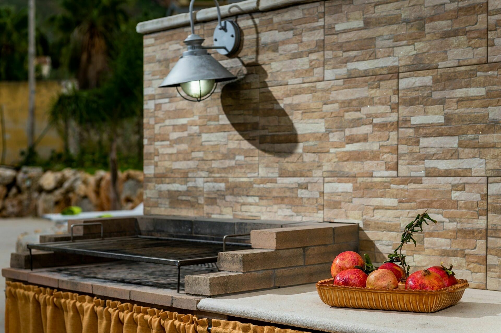 Et utekjøkken med grill gir gjestene mulighet til å tilberede utendørs måltider og samtidig som man har en fantastisk utsikt til det omkringliggende landskapet.