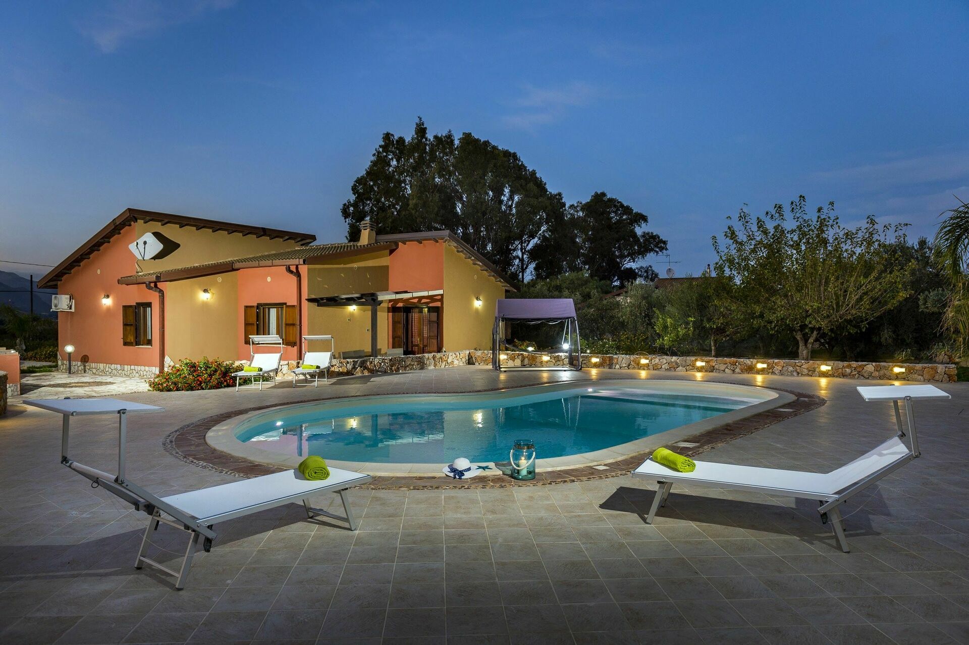 Avstander: Sjø 5 km, Castellammare del Golfo (butikker, restauranter, supermarked) 6 km, Palermo (flyplass) 50 km.
