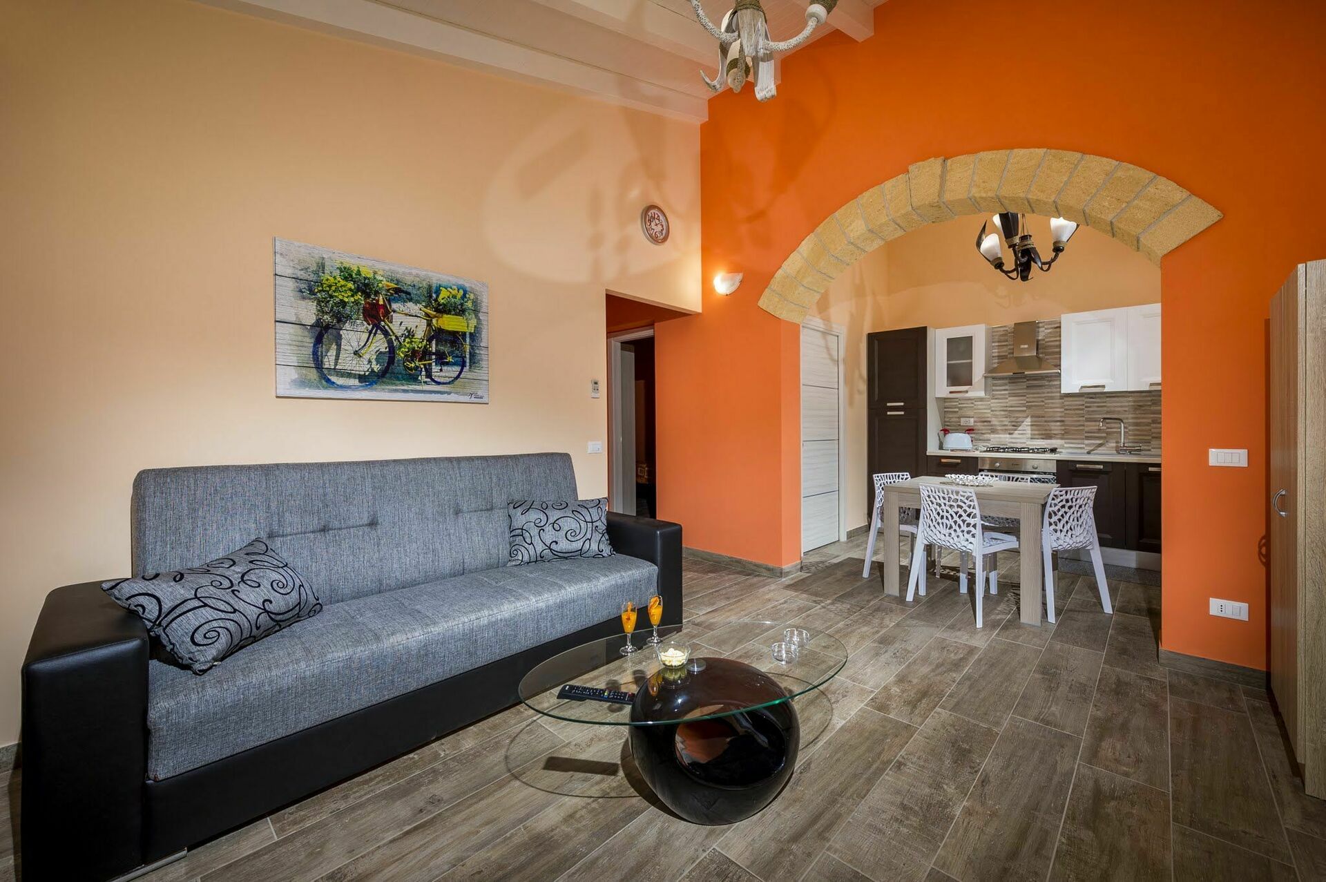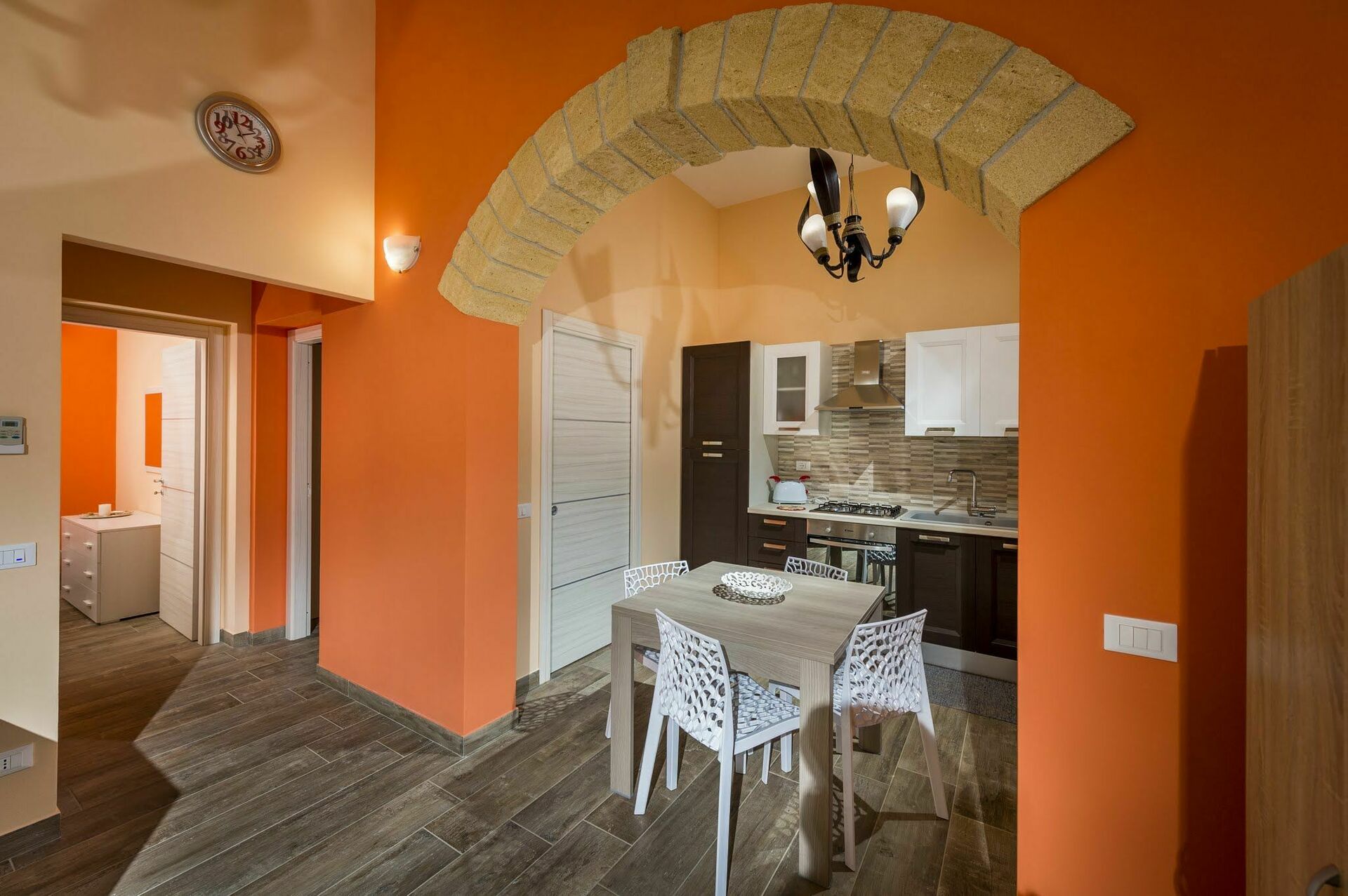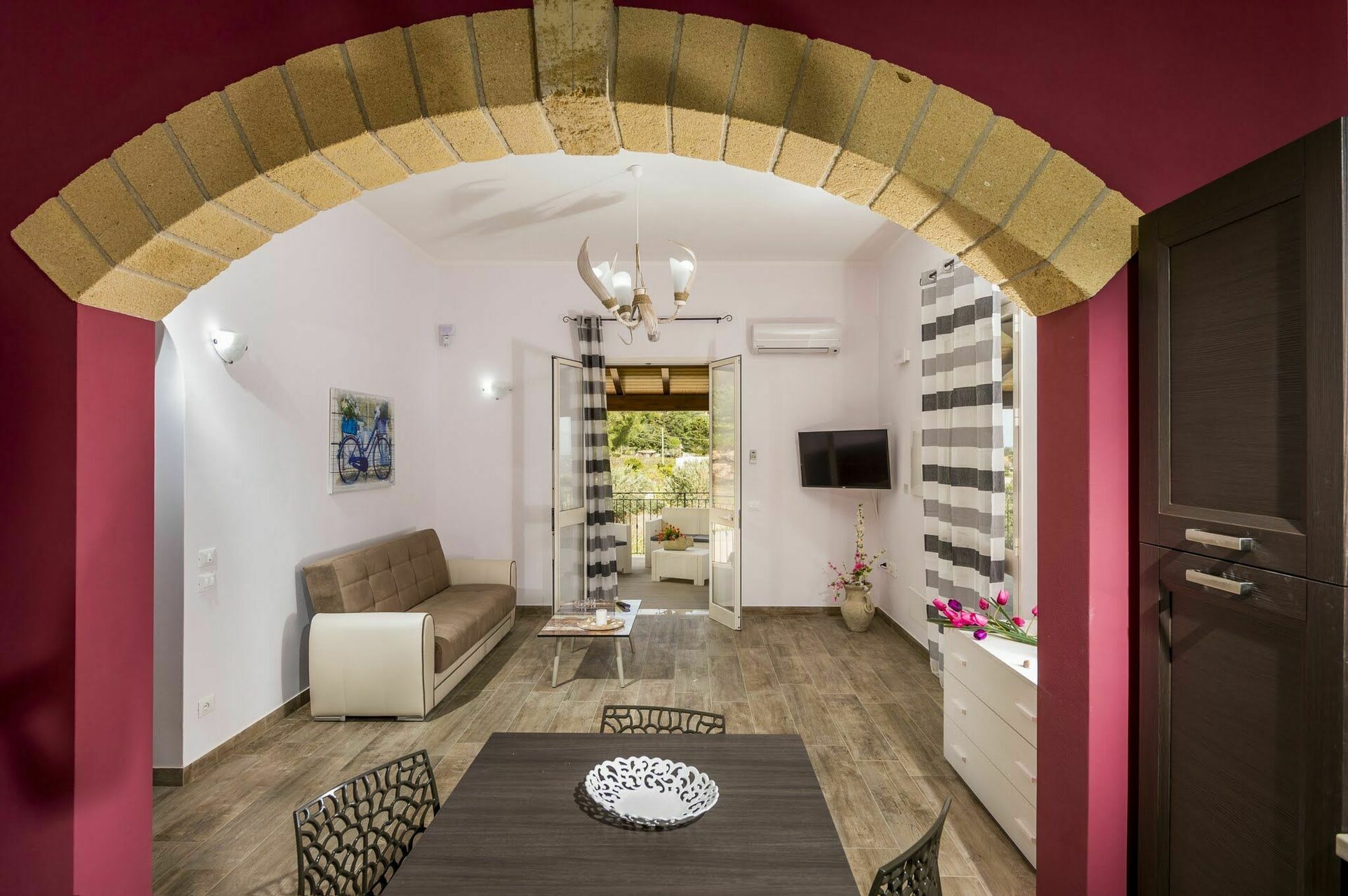 Huset er omgitt av en frodig hage med oliventrær og typiske middelhavsplanter. I restaureringen av eiendommen er det brukt lokale, tradisjonelle sicilianske materialer, som tuff og tre som gjør rommene varme og koselige.