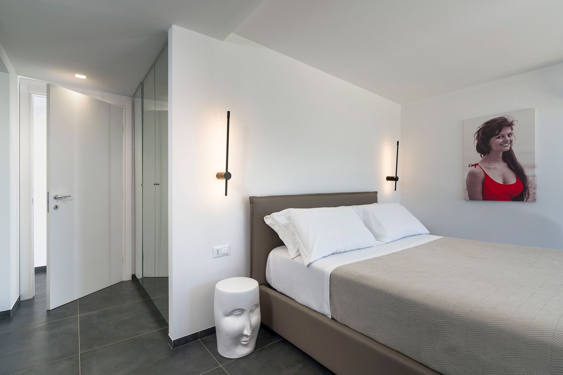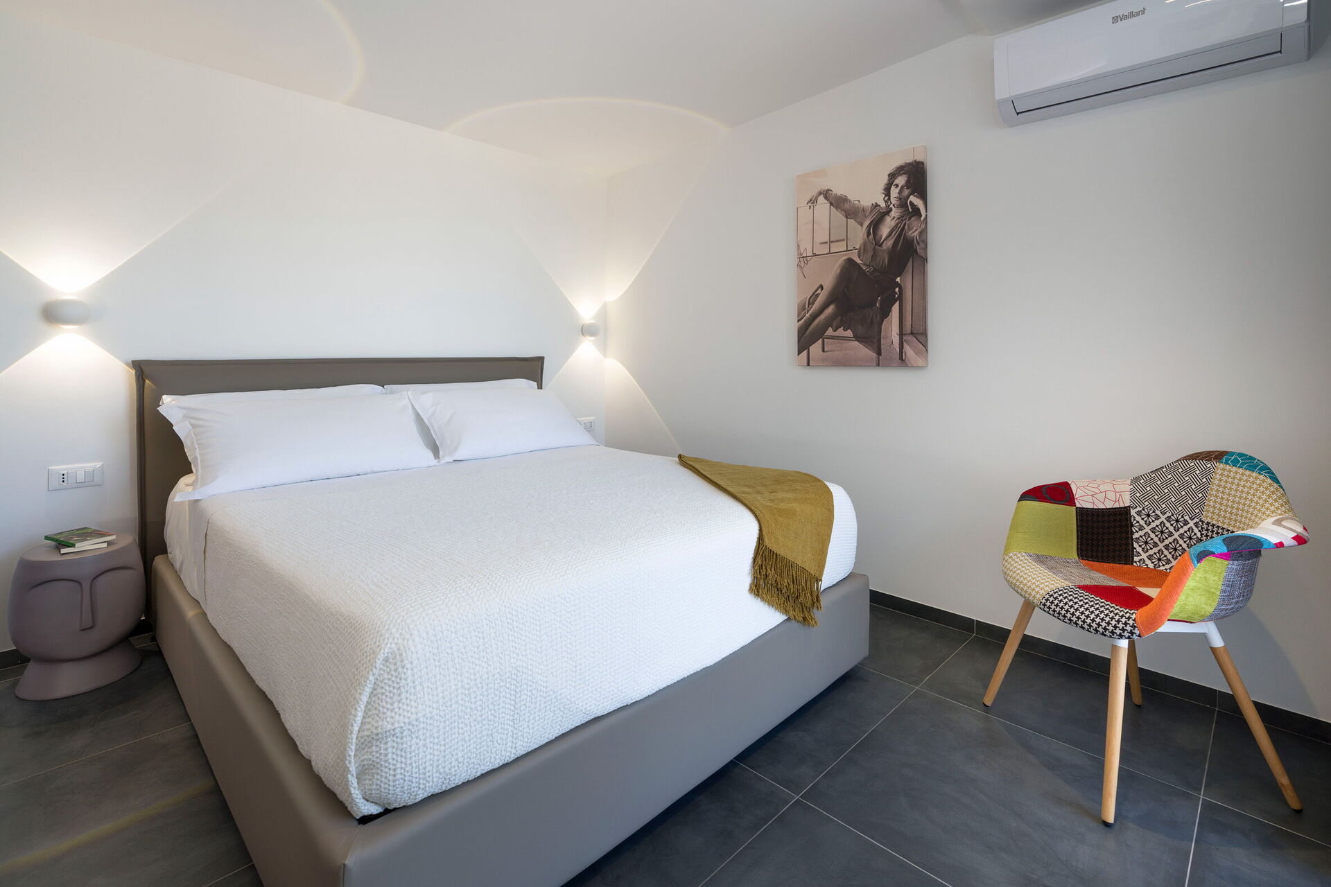 Stor stue (aircondition, TV) med spiseplass og kjøkken (kokeplater, elektrisk stekeovn, kjøleskap, fryser, oppvaskmaskin, mikrobølgeovn, brødrister, espressomaskin, kaffetrakter), 1 dobbeltrom (aircondition), 1 bad med dusj
