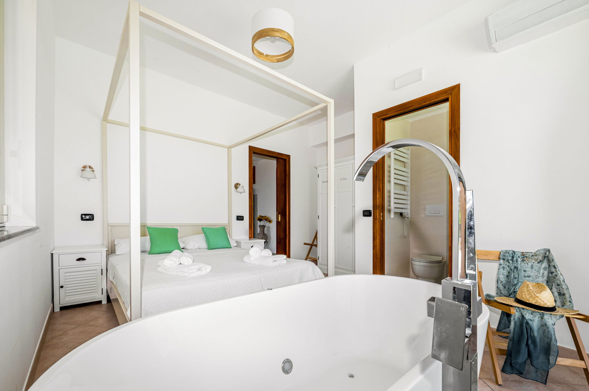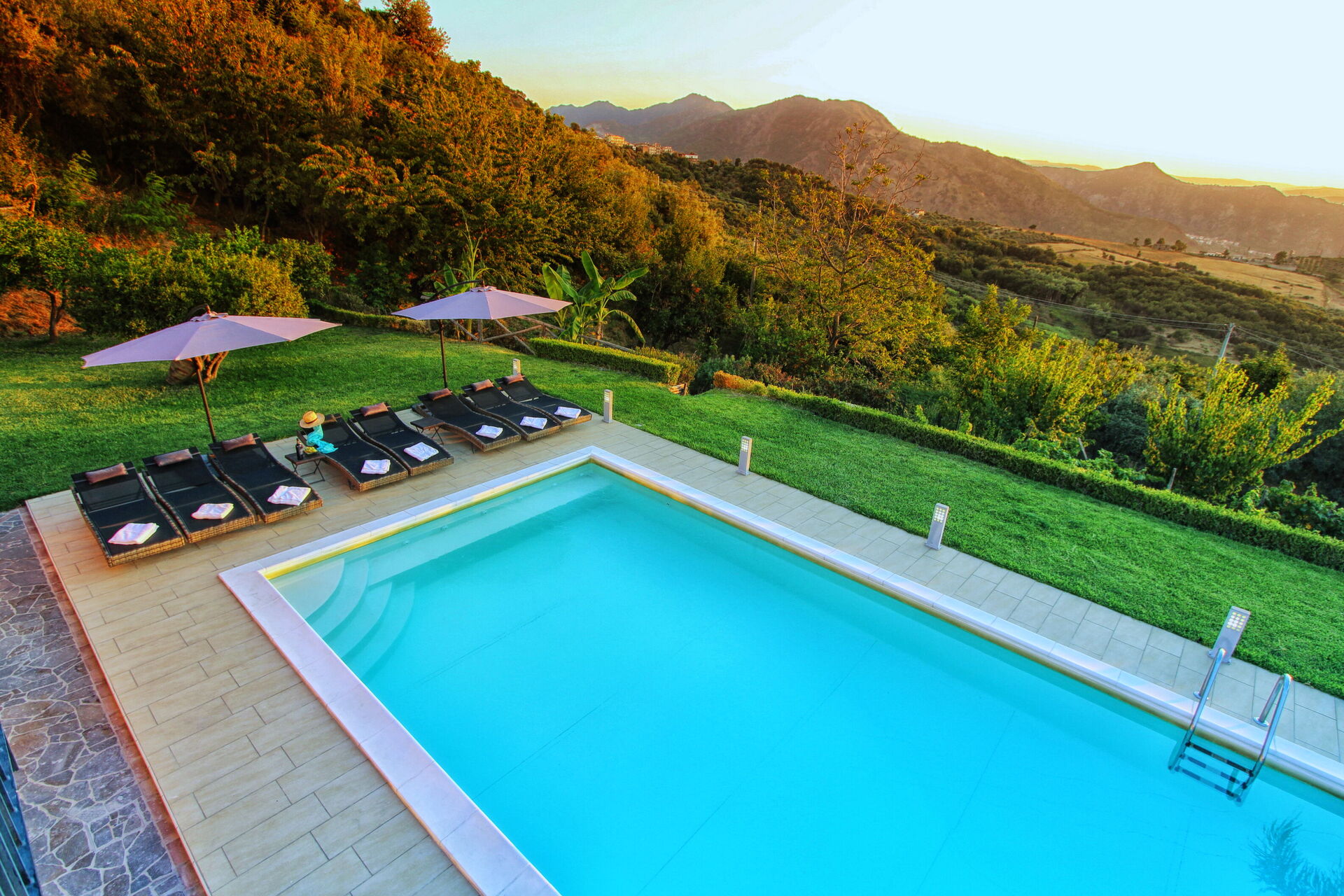 Uteområdet har et møblert spiseområde under verandaen, fullt utstyrt grillområde og et svømmebasseng med hydromassasjeområde og bassengdekk med 8 solsenger, her er det mange muligheter til å nyte uforglemmelige øyeblikk under den sicilianske solen.