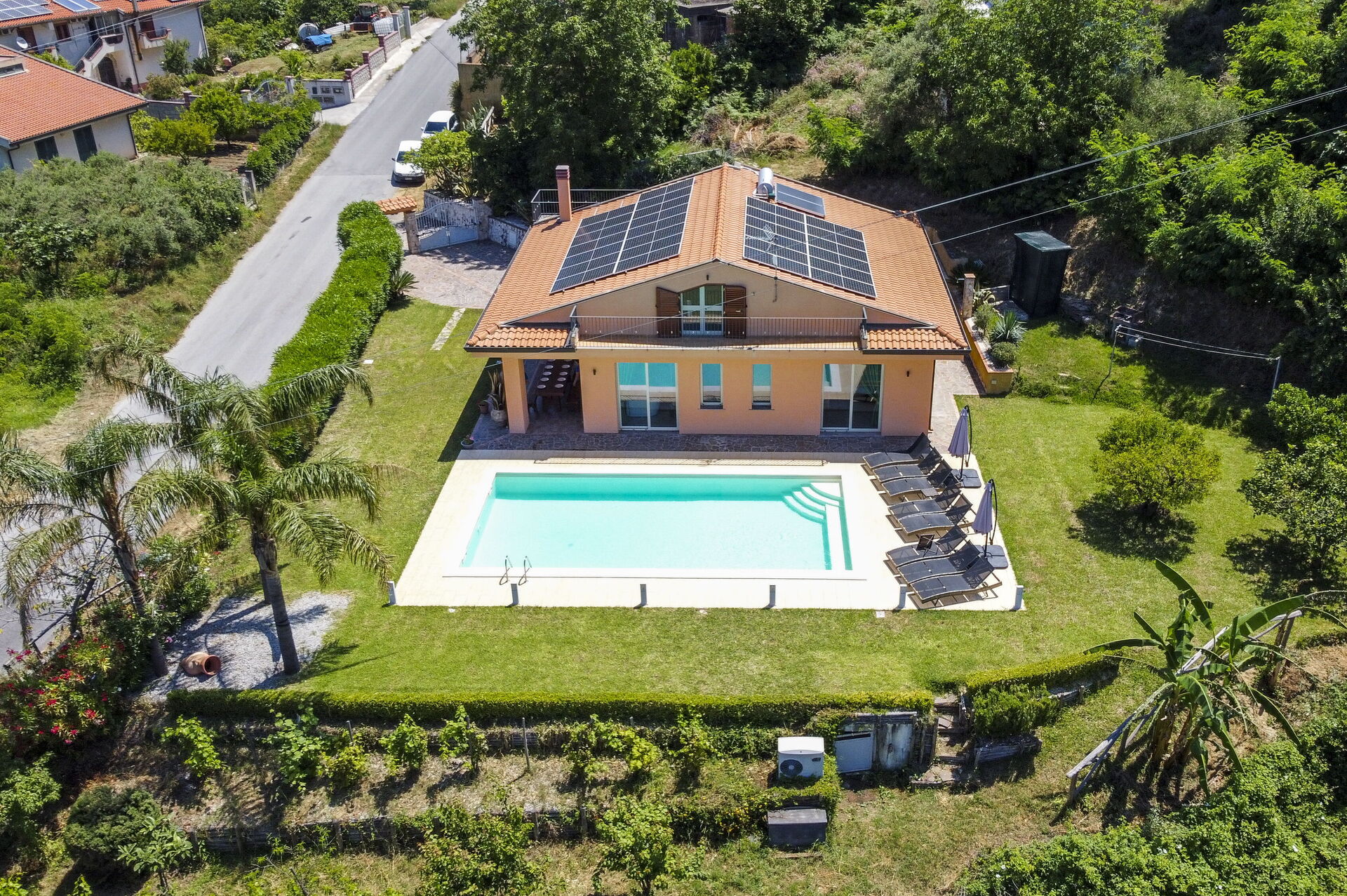 Villa Malu har spektakulær utsikt over De eoliske øyer, er fullstendig nedsenket i grøntområder med frukttrær, palmer og flere hundre år gamle oliventrær.