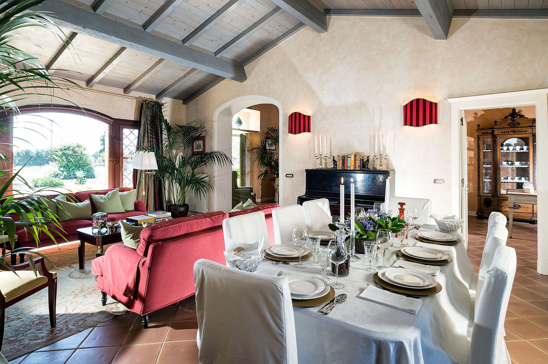 Don Salvatore er på ett plan, med 5 soverom for opptil 8 personer. Huset har et lyst og innbydende interiør med klimaanlegg.