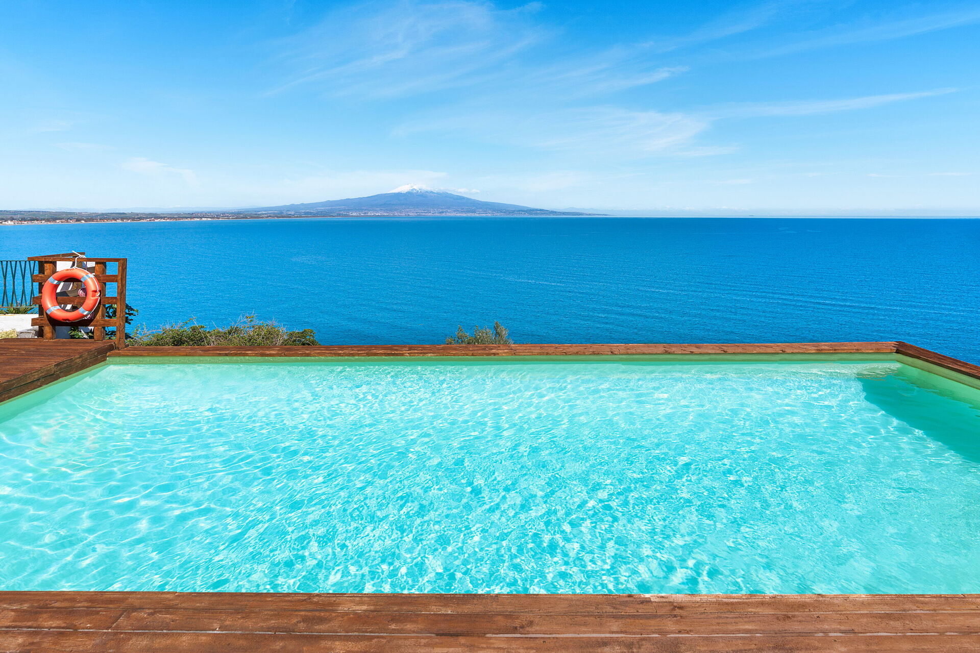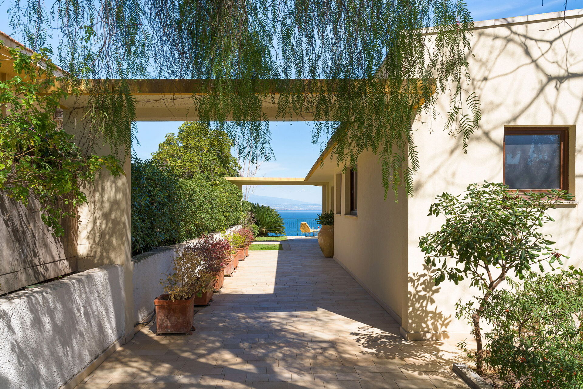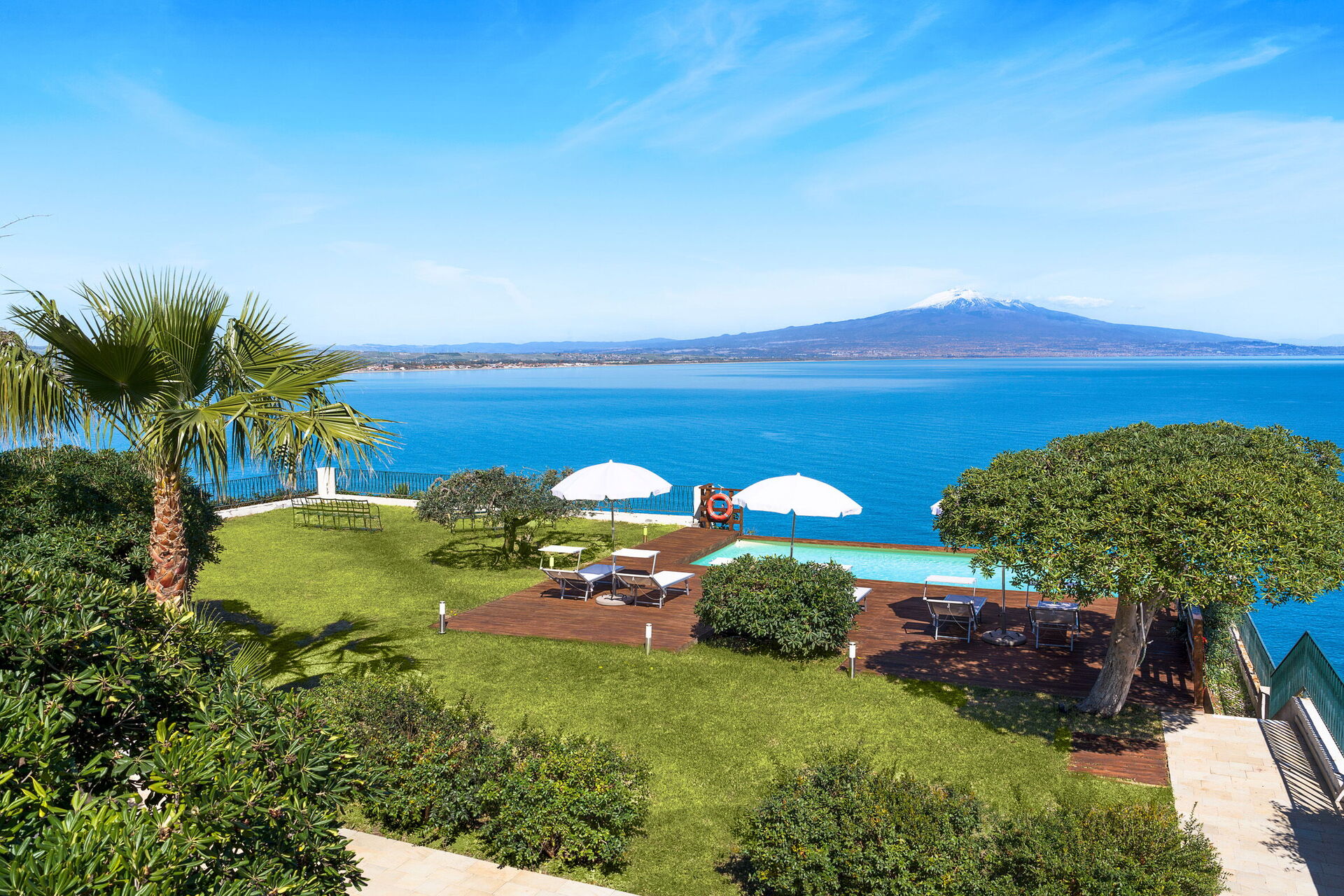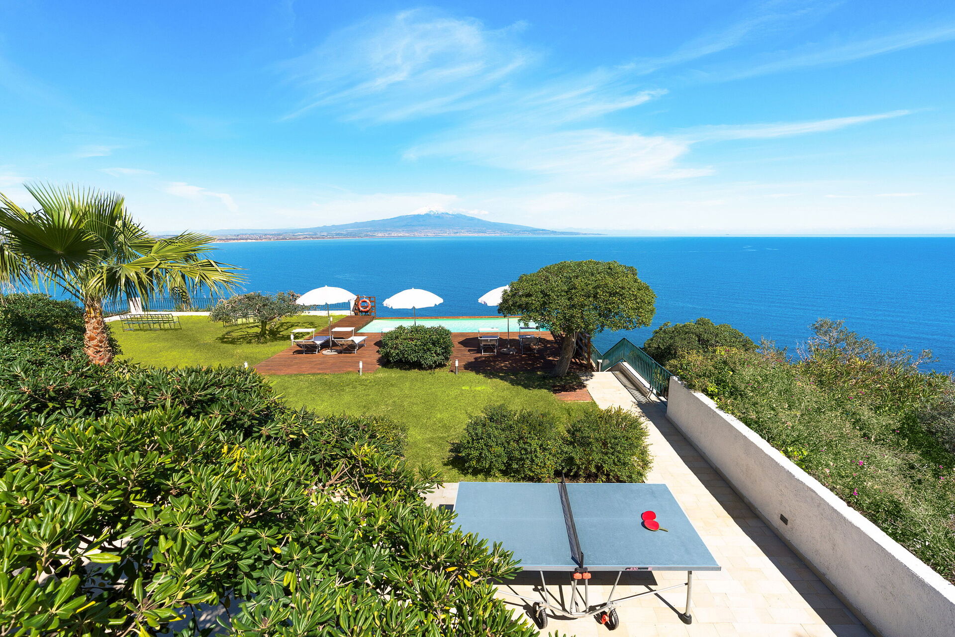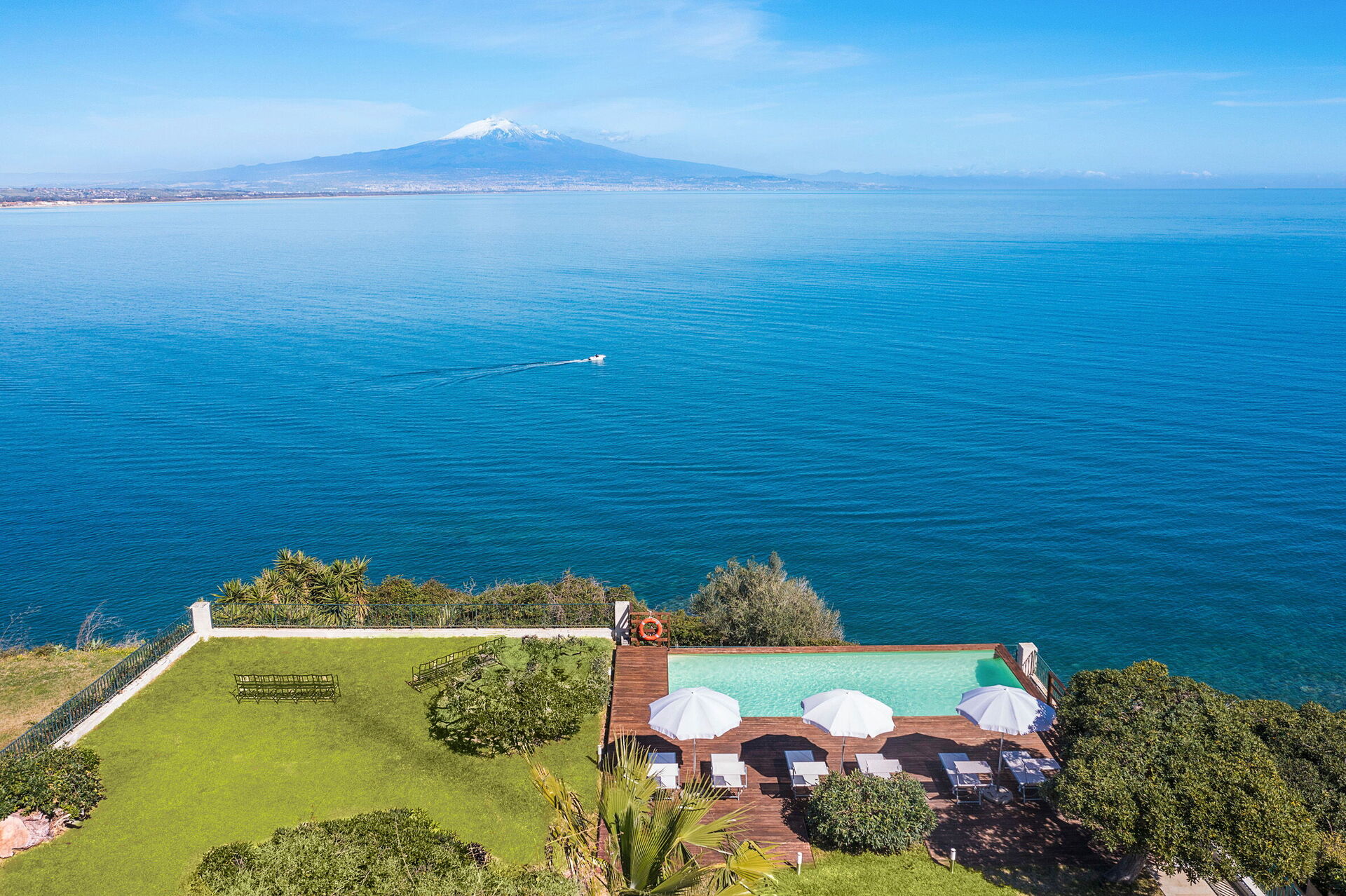 Med sin plassering på en klippe over havet, har eiendommen fullstendig ro og byr spektakulær utsikt over havet og Etna i det fjerne.