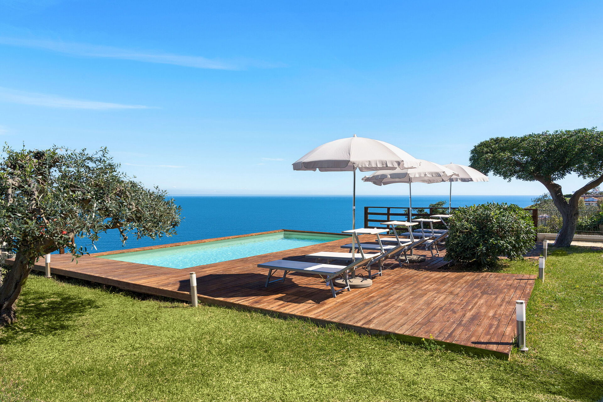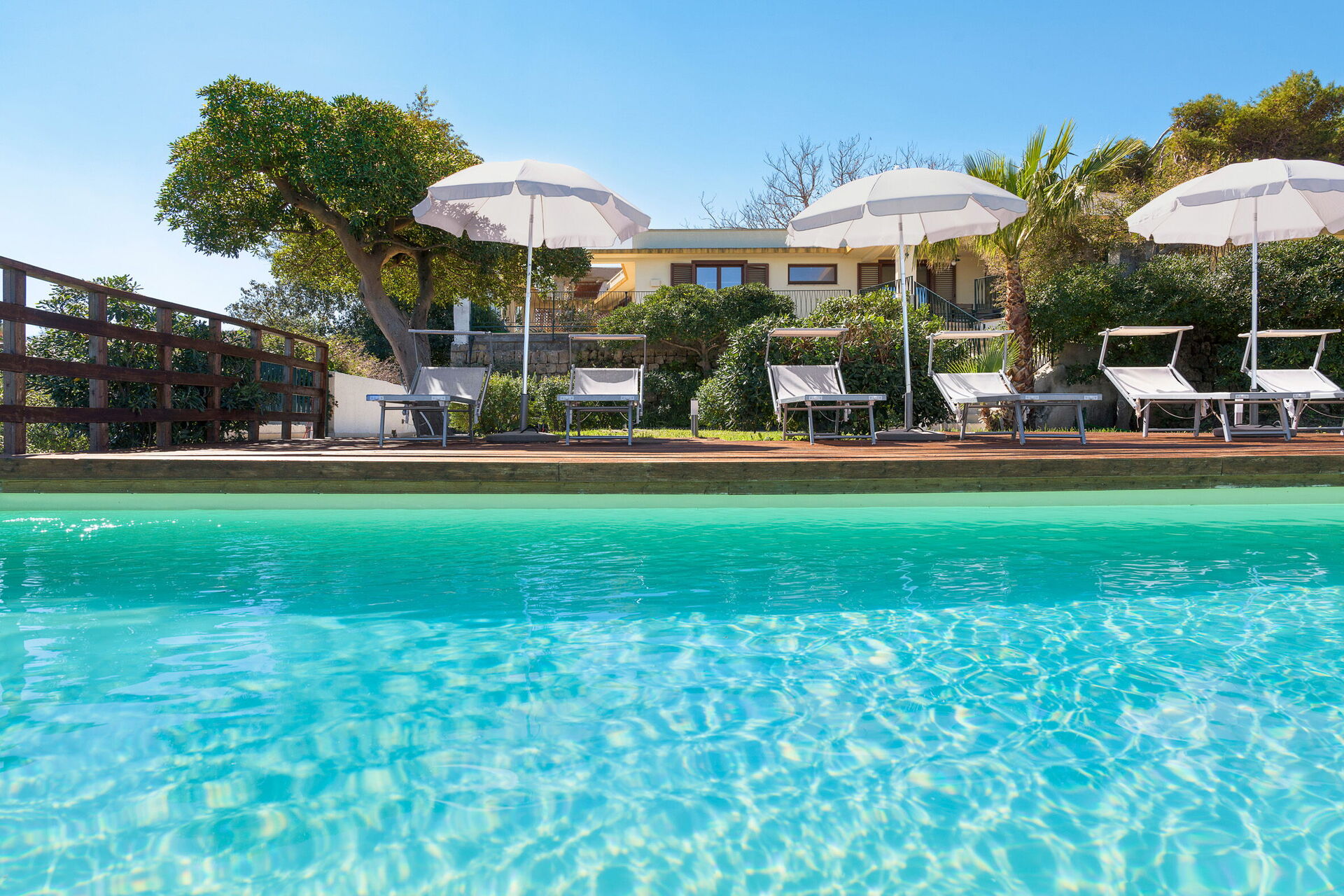 De store solområdene og bassenget med sin panoramautsikt gjør dette feriehuset til det perfekte stedet for en avslappende ferie sammen med venner eller familie under den varme solen på Sicilia.
