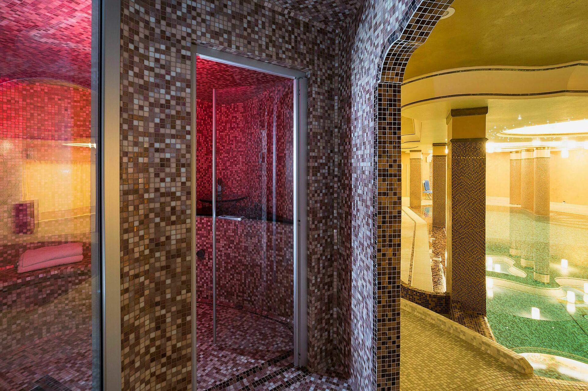 - Velværeområde: oppvarmet (25°C) svømmebasseng, boblebad, hamam