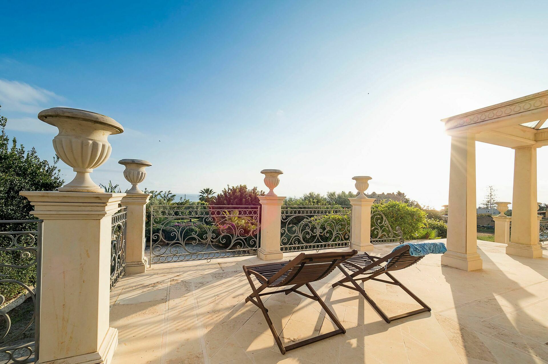 Luksushuset er innrammet av typiske tørrsteinsvegger, har en velstelt hage og store panoramaterrasser med utsikt over det vakre landskapet rundt og havet.