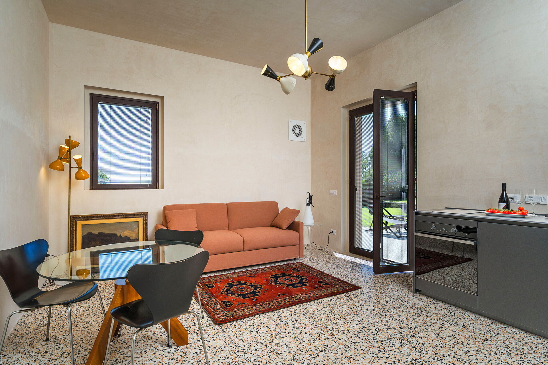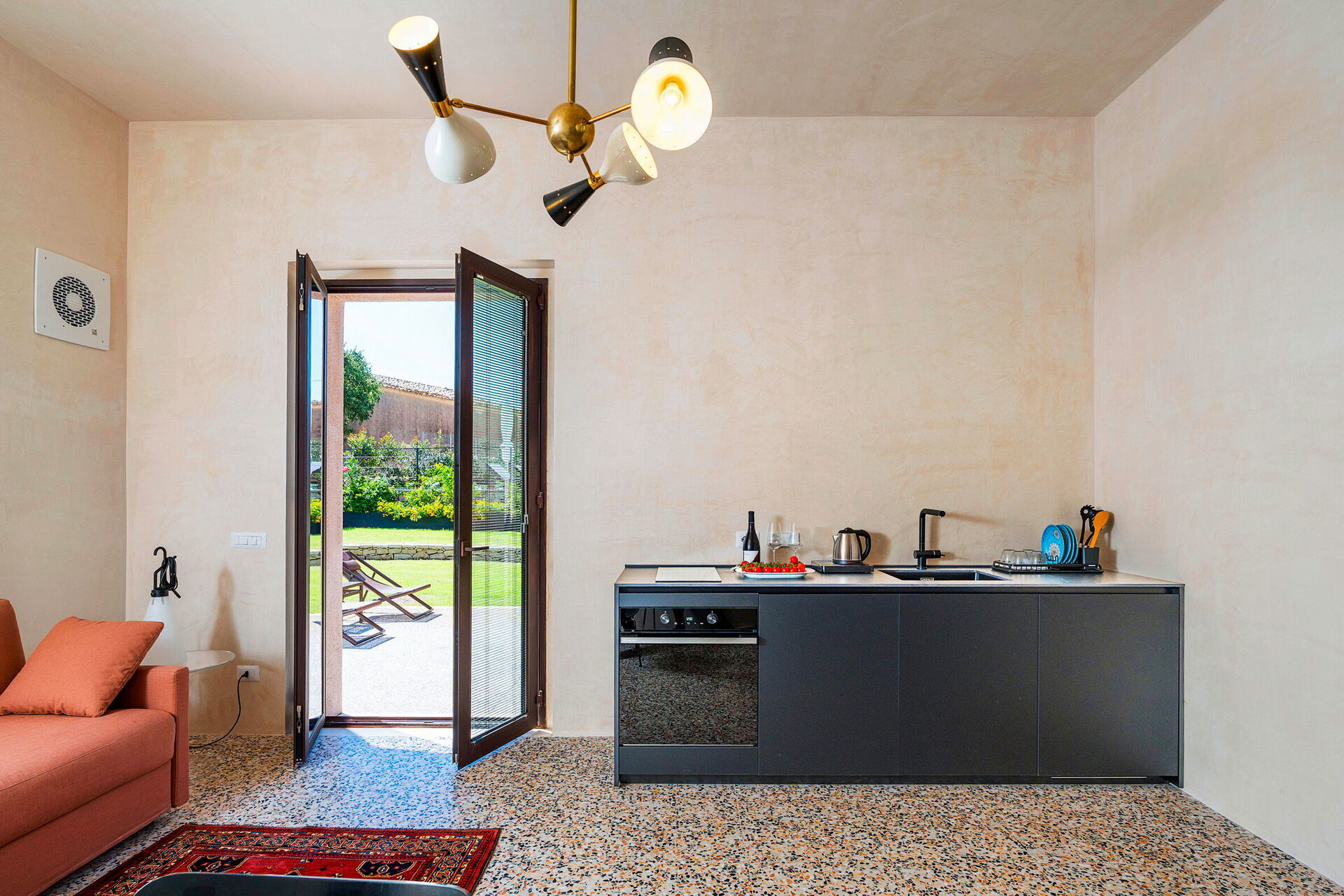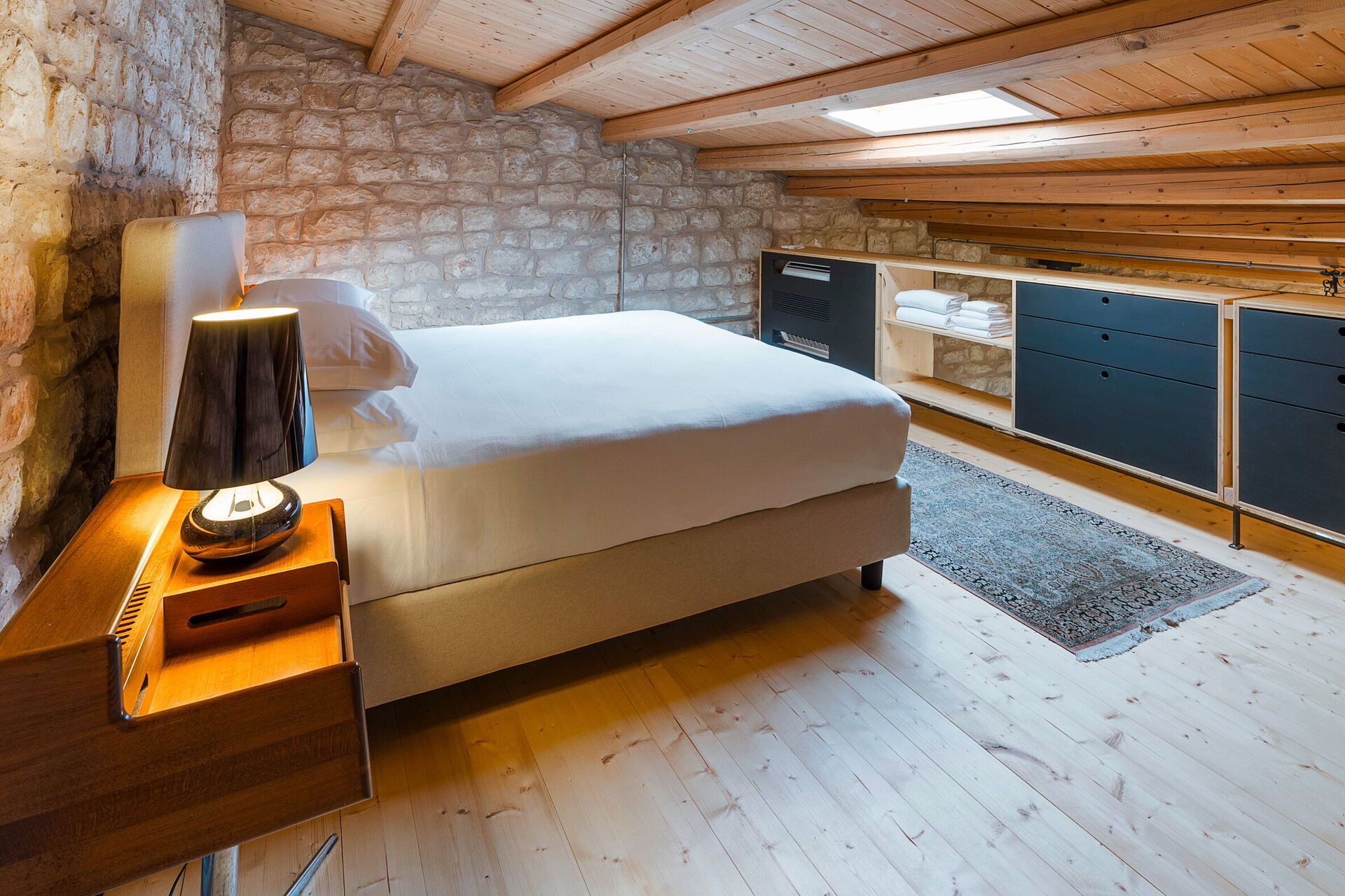 Første etasje (kun tilgjengelig utenfra og ikke forbundet med resten av villaen fra innsiden): stue (med ekstra enkeltsovesofa på forespørsel) med kjøkkenkrok (kjøleskap, vannkoker, espressomaskin); dobbeltrom med eget bad med dusj; dobbeltrom (sengemål: 160 x 200 cm) med eget bad med dusj.
