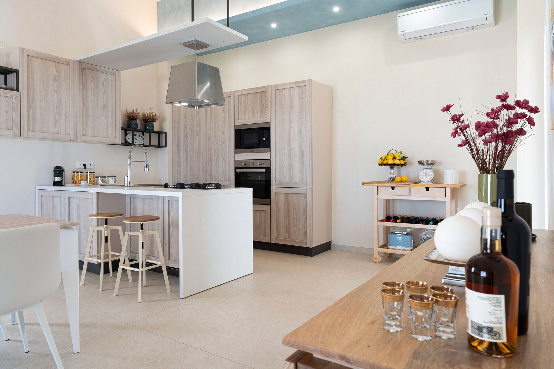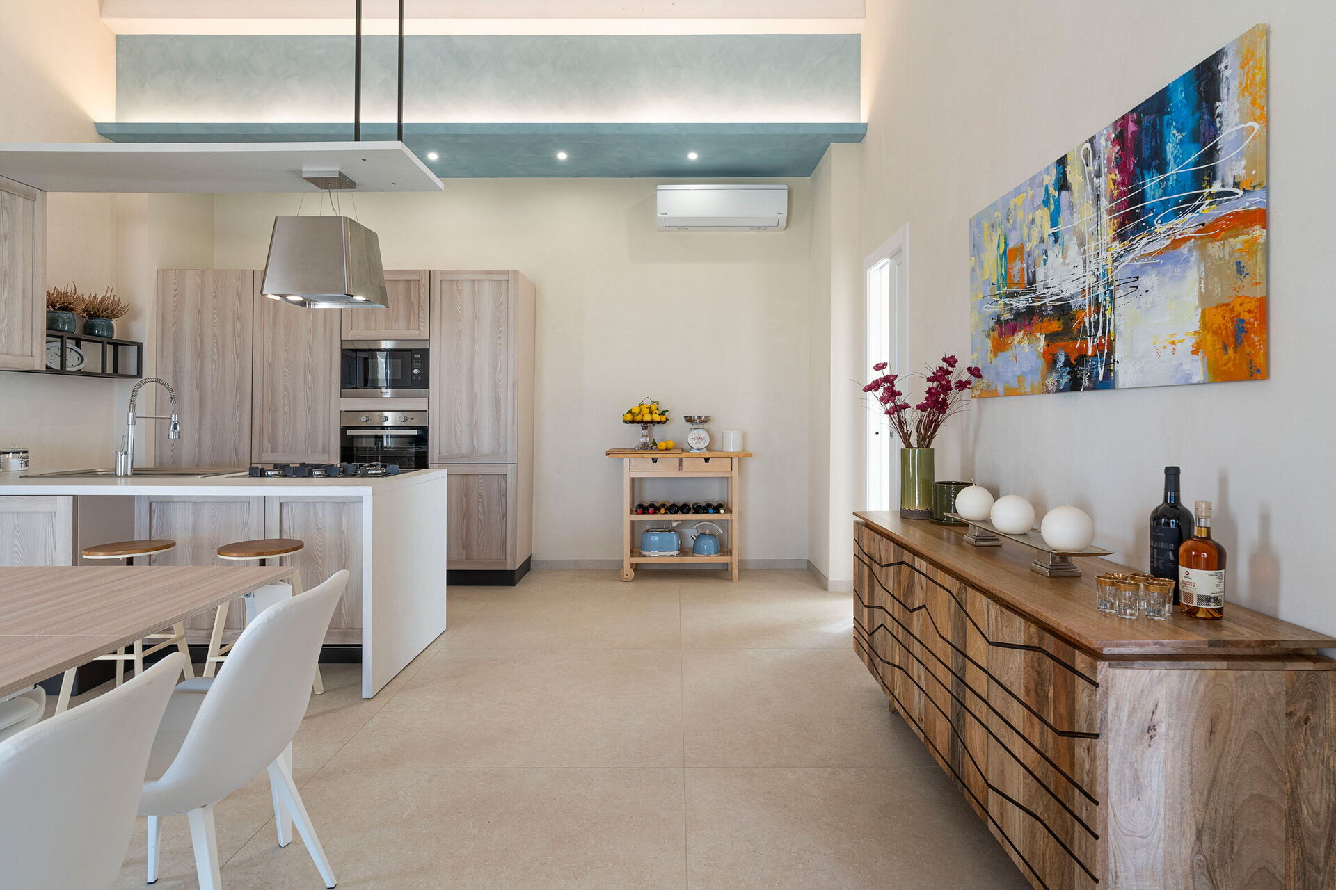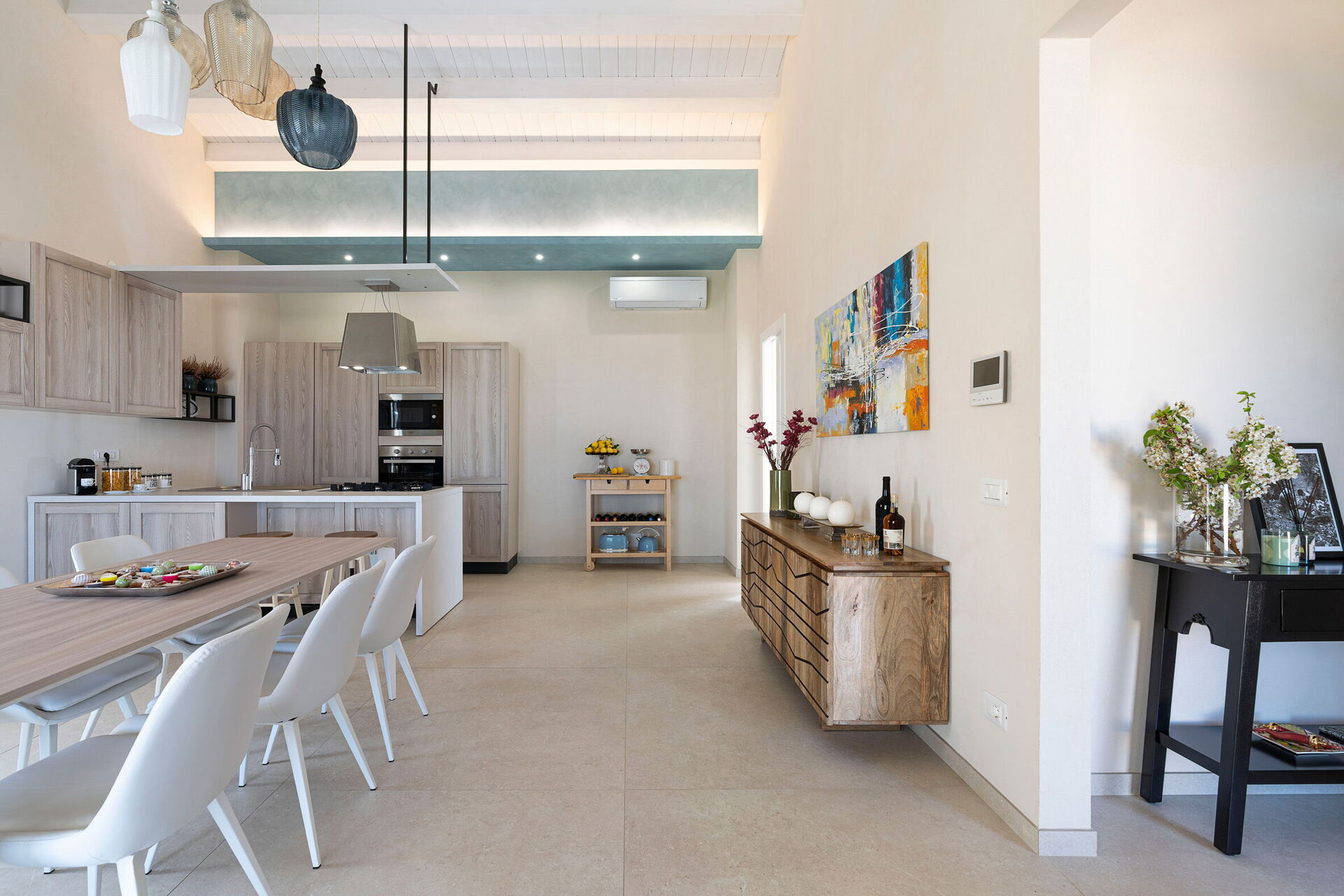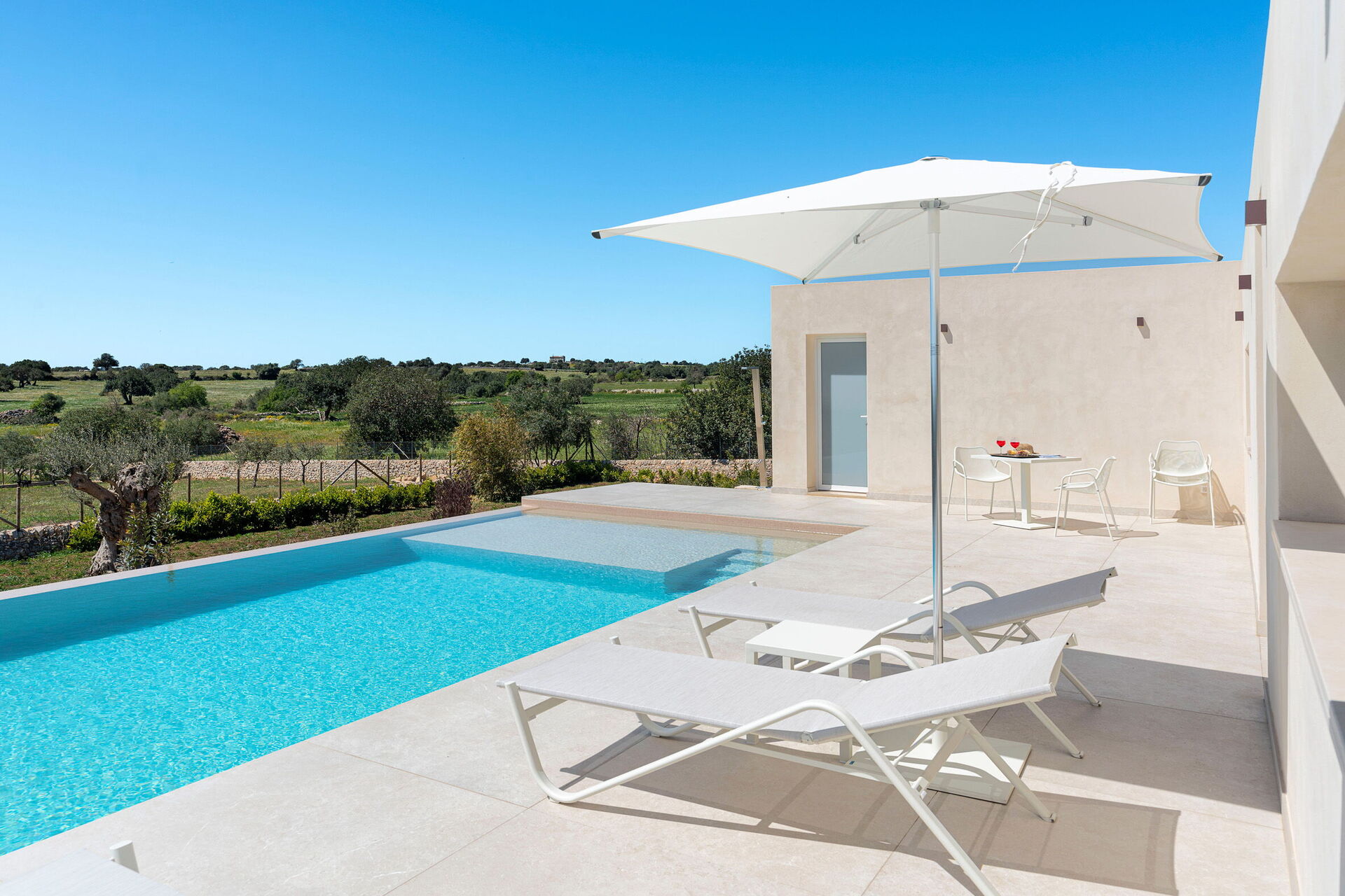 Det omkringliggende landskapet består av oliventrær, johannesbrødtrær og hvite kalkede steinmurer du kan beundre mens du slapper av ved det fantastiske saltvannsbassenget, eller fra en av de store møblerte terrassene. På uteområdet er det også en grill og kjøkken for enkelt å kunne lage mat utendørs under ferien på Sicilia.