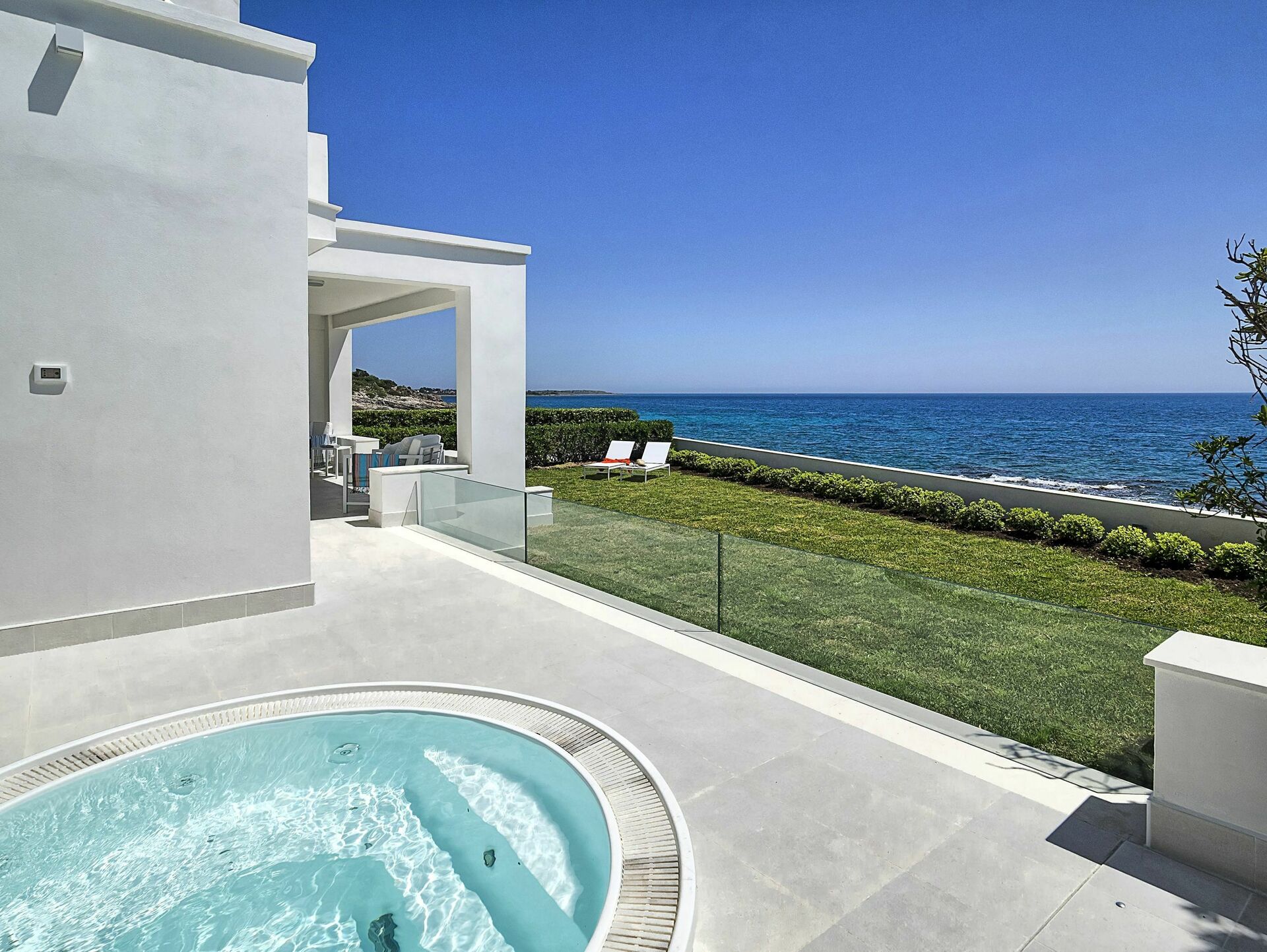 Feriehuset har en fantastisk beliggenhet ved havet og tilbyr en eksklusiv terrasse med boblebad, grillplass og hage.
