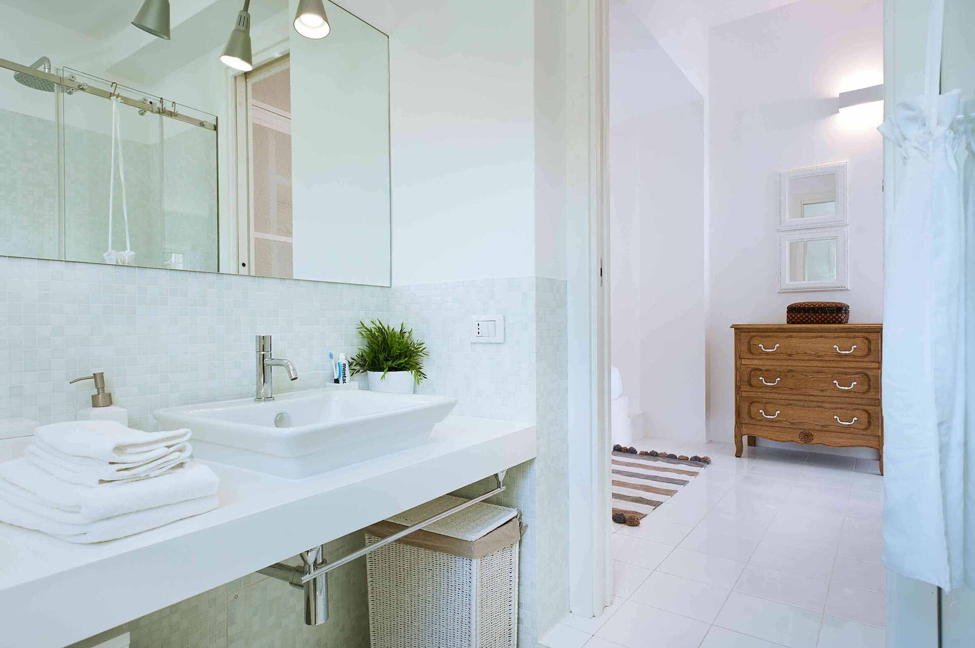 Casa Blu er perfekt for par eller en familie på 4 med 1 dobbeltrom og 1 twinrom fordelt over en etasje med elegante og hvite møbler. Den store overbygde verandaen utstyrt med bord og stoler skaper en følelse av kontinuitet mellom inne og ute.