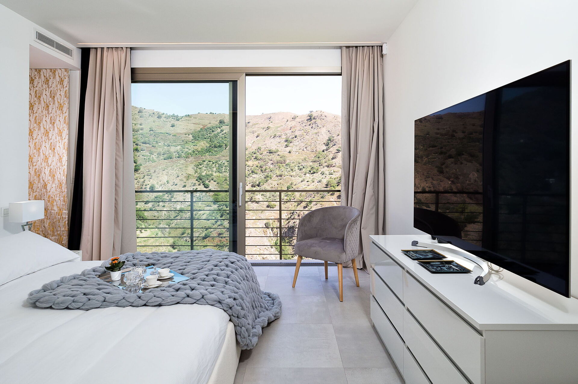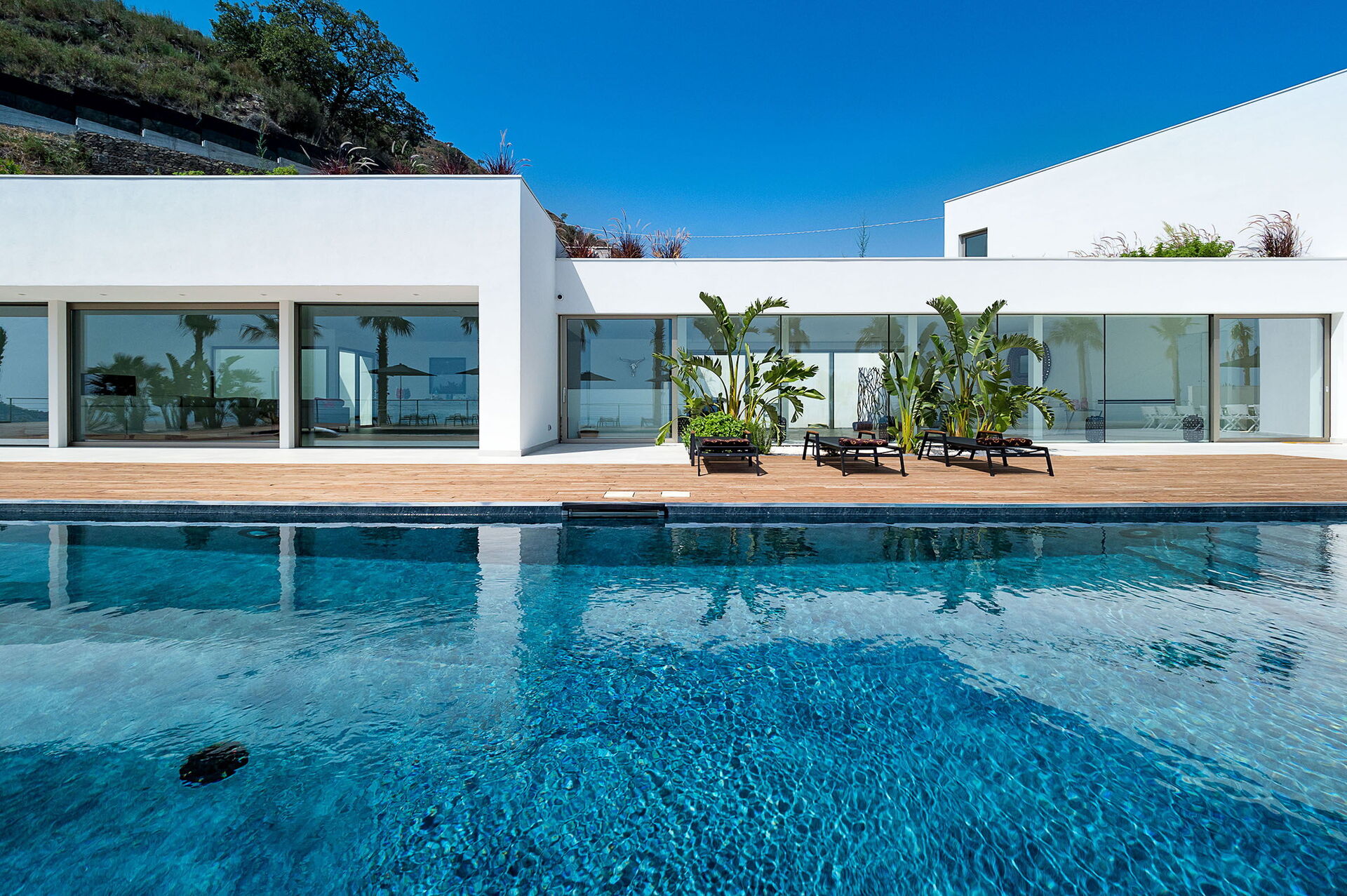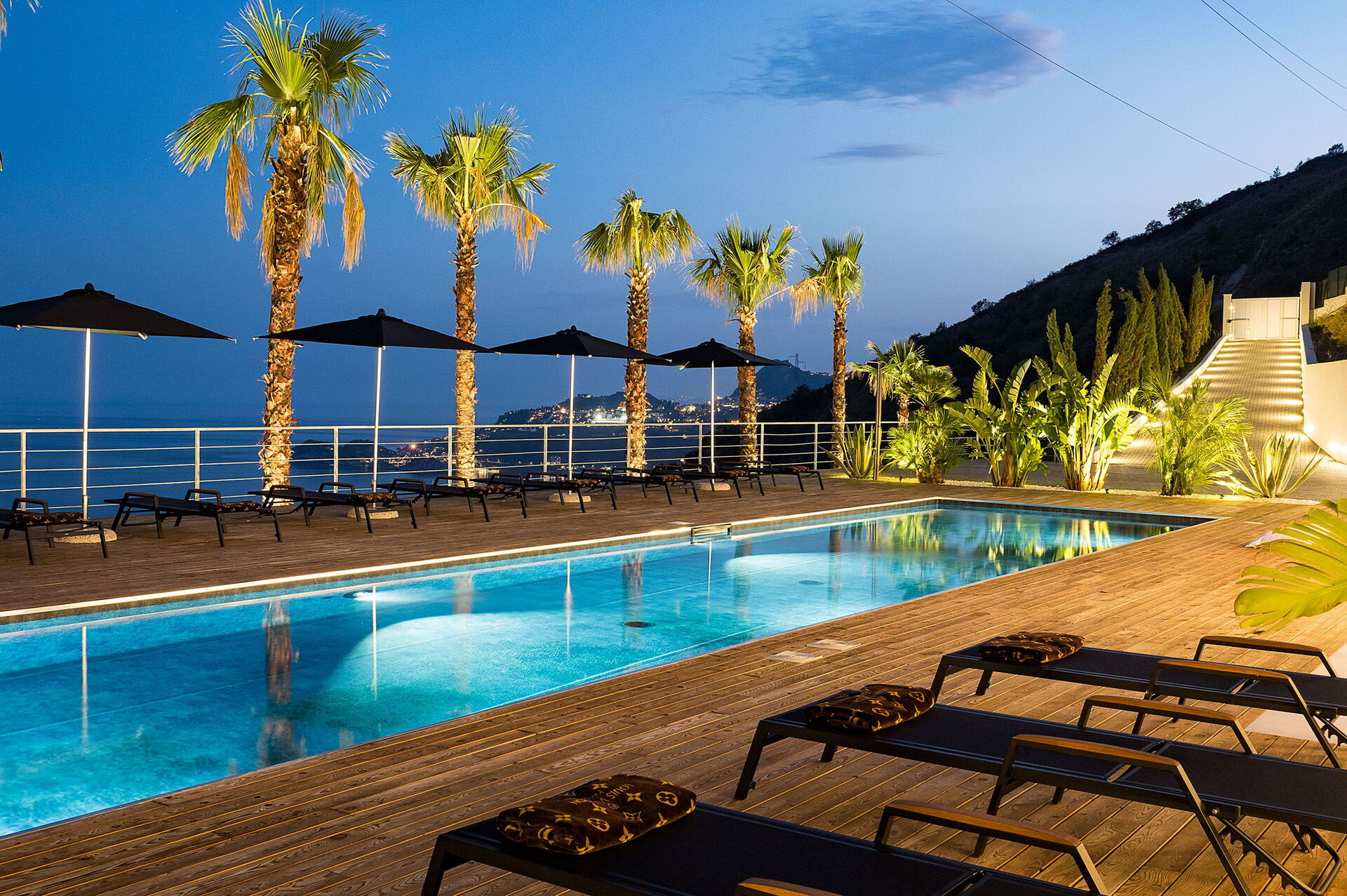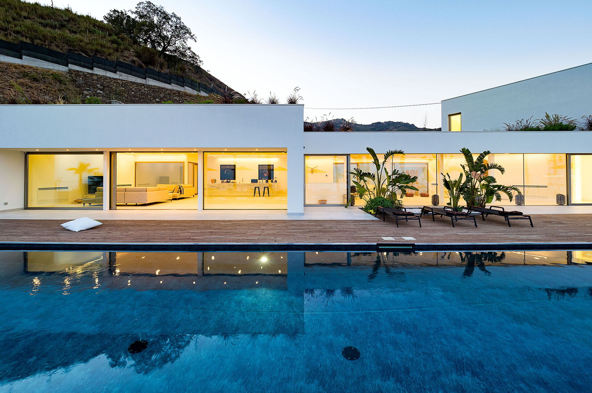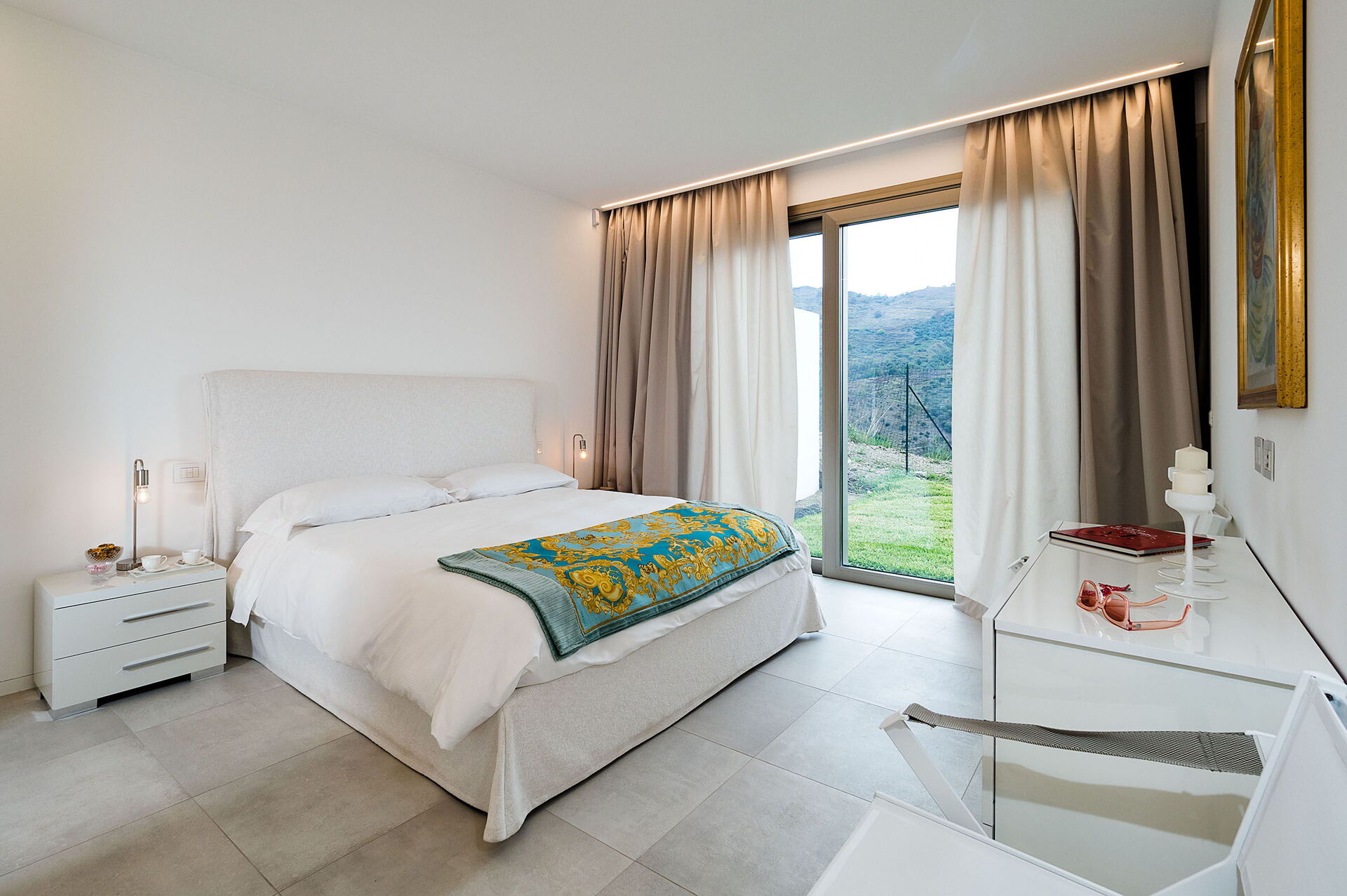 Feriehuset er luksuriøst og moderne med fantastisk utsikt over havet og Taormina-bukten, en utsikt som også beundres fra svømmebassenget med møblert bassengdekk og terrassene.