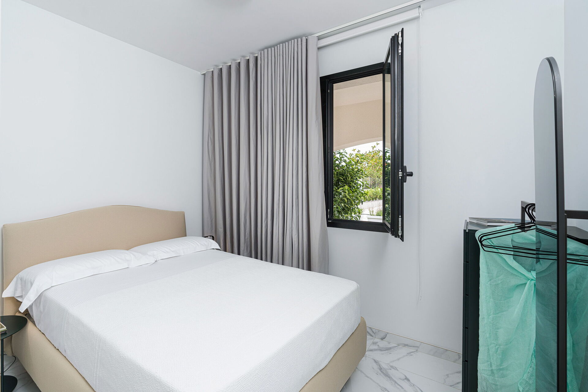 Stue (aircondition, TV) med spiseplass og kjøkken (platetopp, stekeovn, fryser, kjøleskap, oppvaskmaskin, kaffetrakter, brødrister), 1 dobbeltrom (aircondition, myggnett) med eget bad med dusj, 1 soverom med fransk dobbeltseng (dimensjoner 140 x 200) (aircondition, myggnett), 1 dobbeltrom (aircondition, myggnett), bad med dusj
