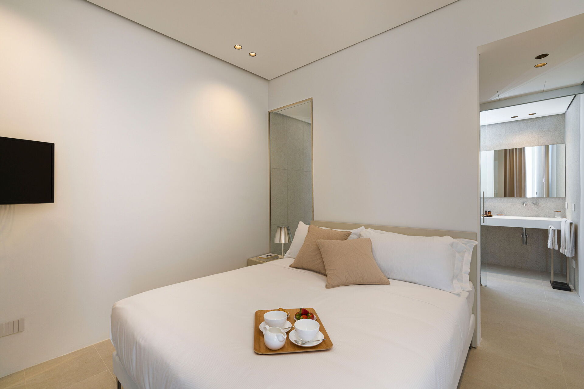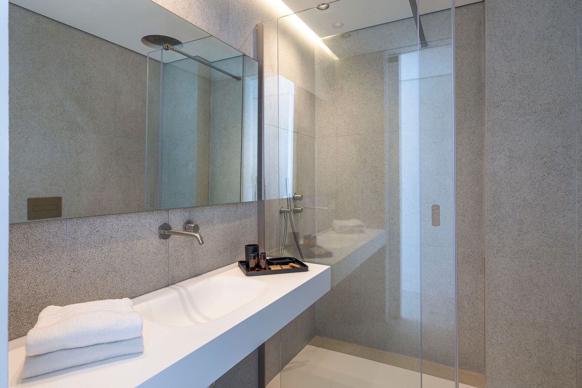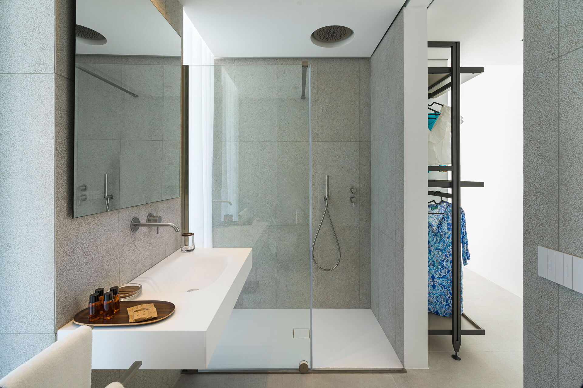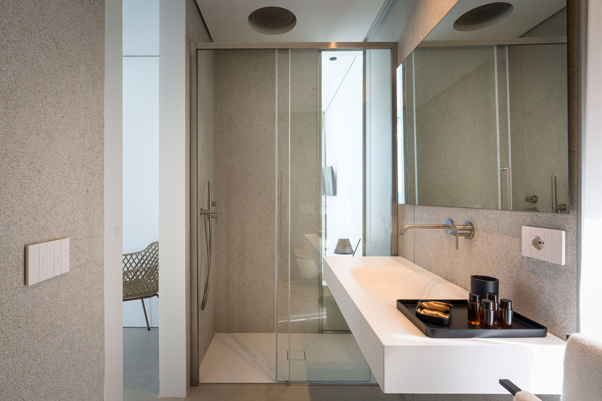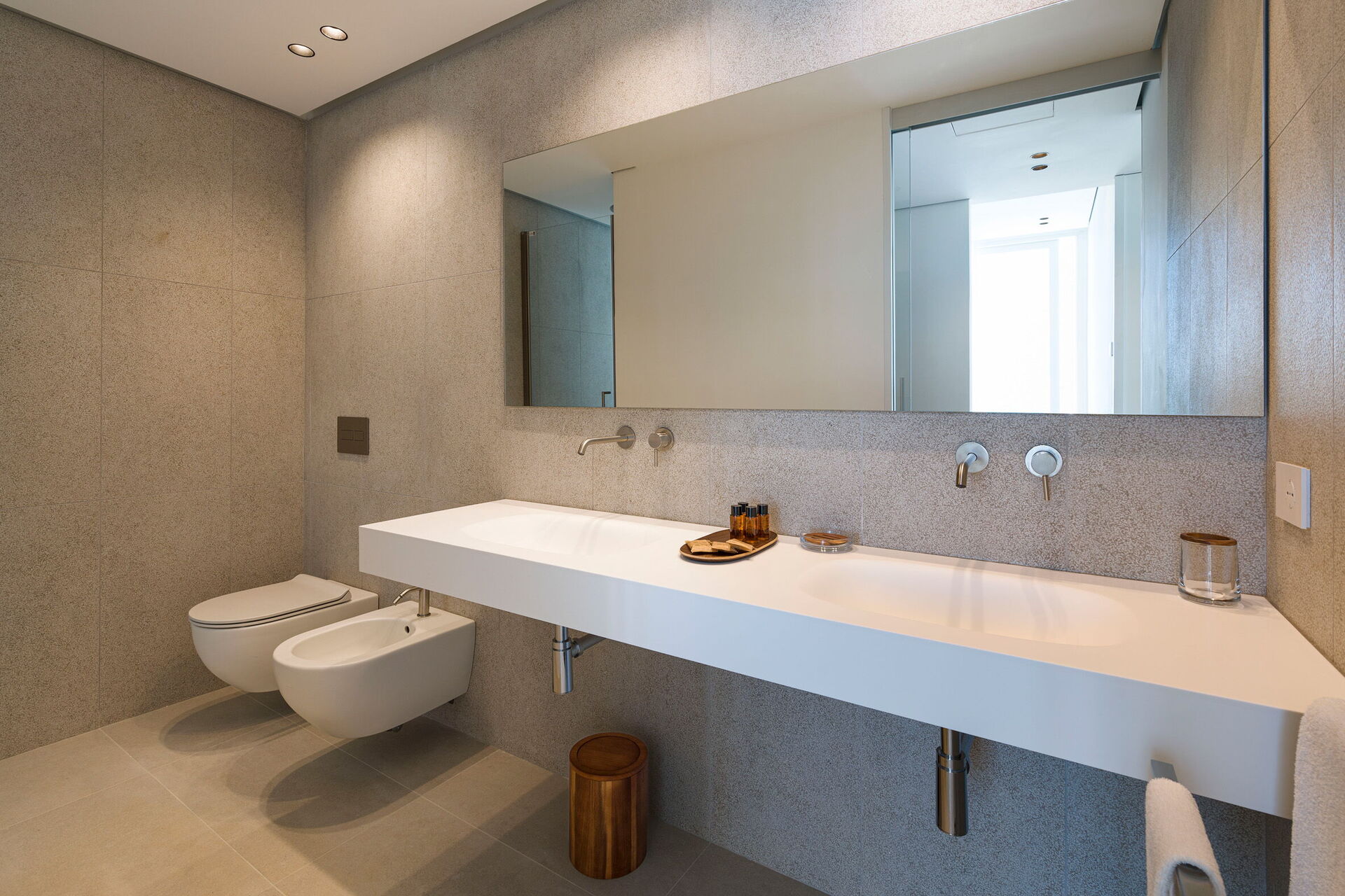 Huset har to etasjer, 4 soverom (alle fire med eget bad og en terrasse vendt mot havet), og kan komfortabelt innkvartere opptil 8 personer. Interiøret er innbydende, og lyst med komfortable moderne møbler og store panoramavinduer med utsikt over havet.