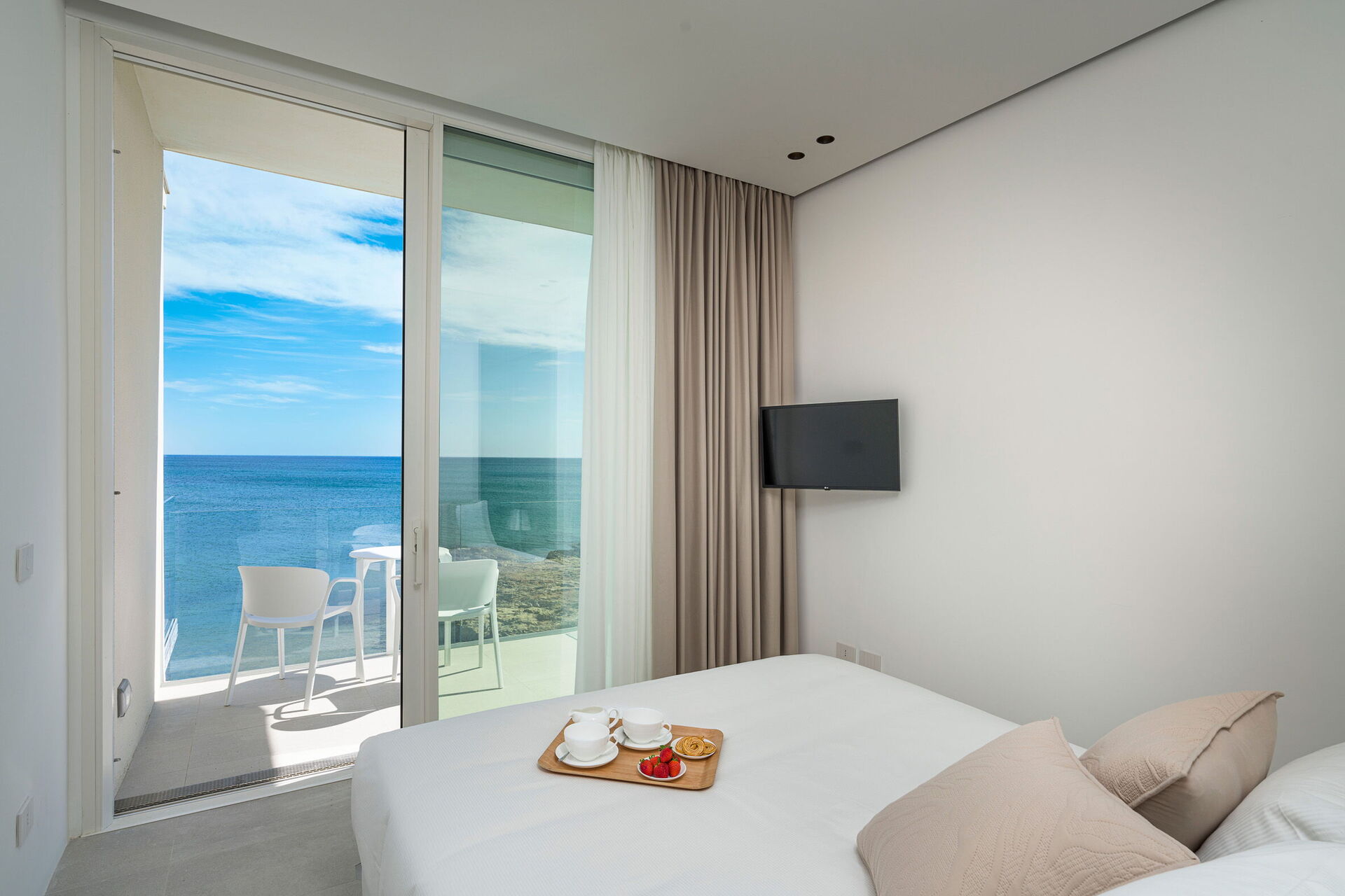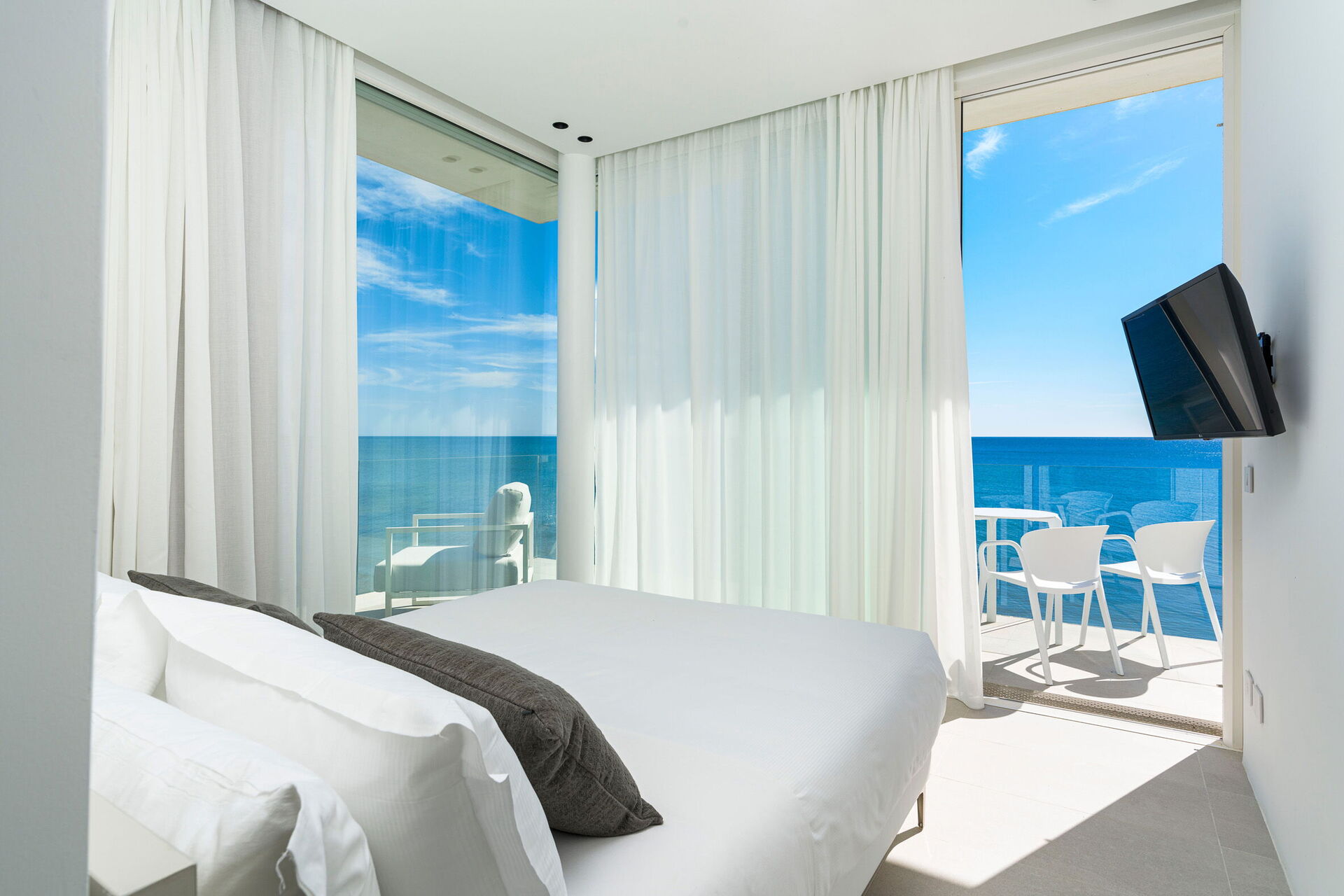 3 dobbeltrom (aircondition) med egne bad med dusj og tilgang til privat balkong med havutsikt.