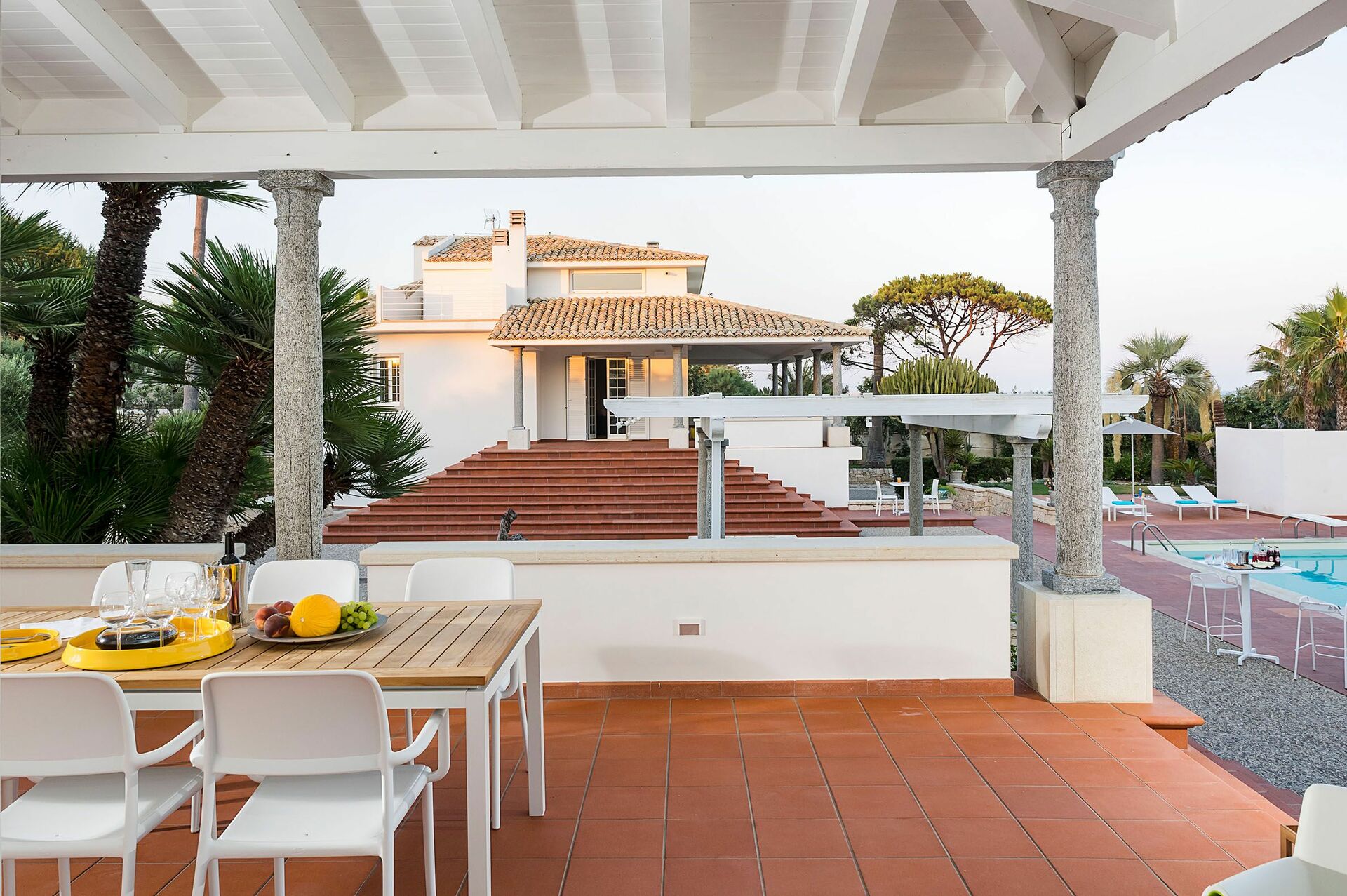 Huset har 9 soverom og en innbydende, eksklusiv atmosfære. Totalt har huset plass til 18 personer. Hvis du leter etter et stort feriehus på Sicilia for en ferie sammen med familie eller venner, er Villa Maya et godt valg.