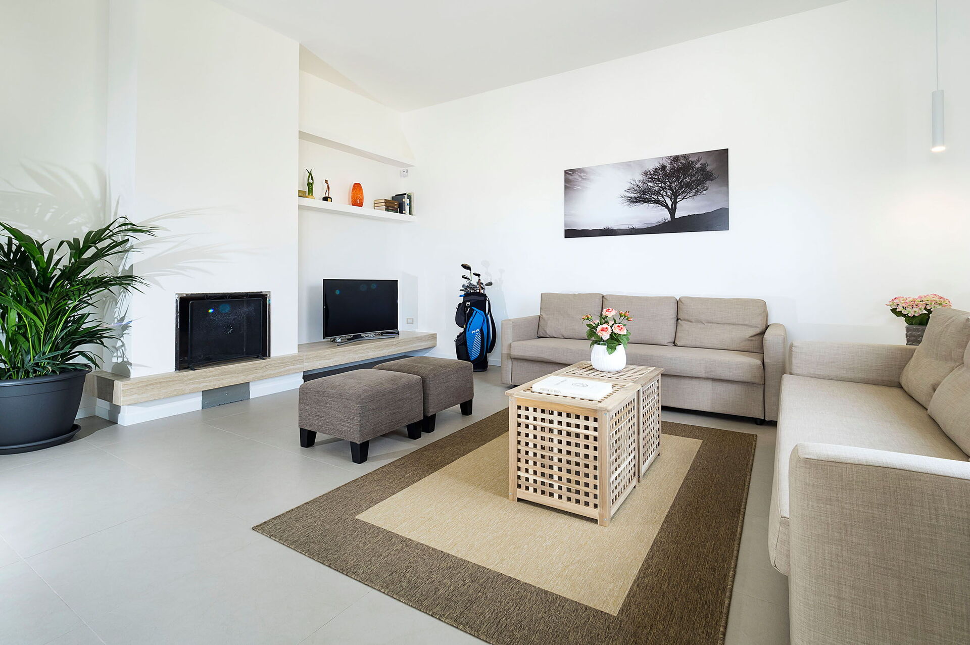 Spredt over én etasje, og takket være 2 soverom og to sovesofaer har den plass til opptil 6 personer. Interiøret er innbydende og lyst, preget av moderne møbler og utstyrt med alle bekvemmeligheter.