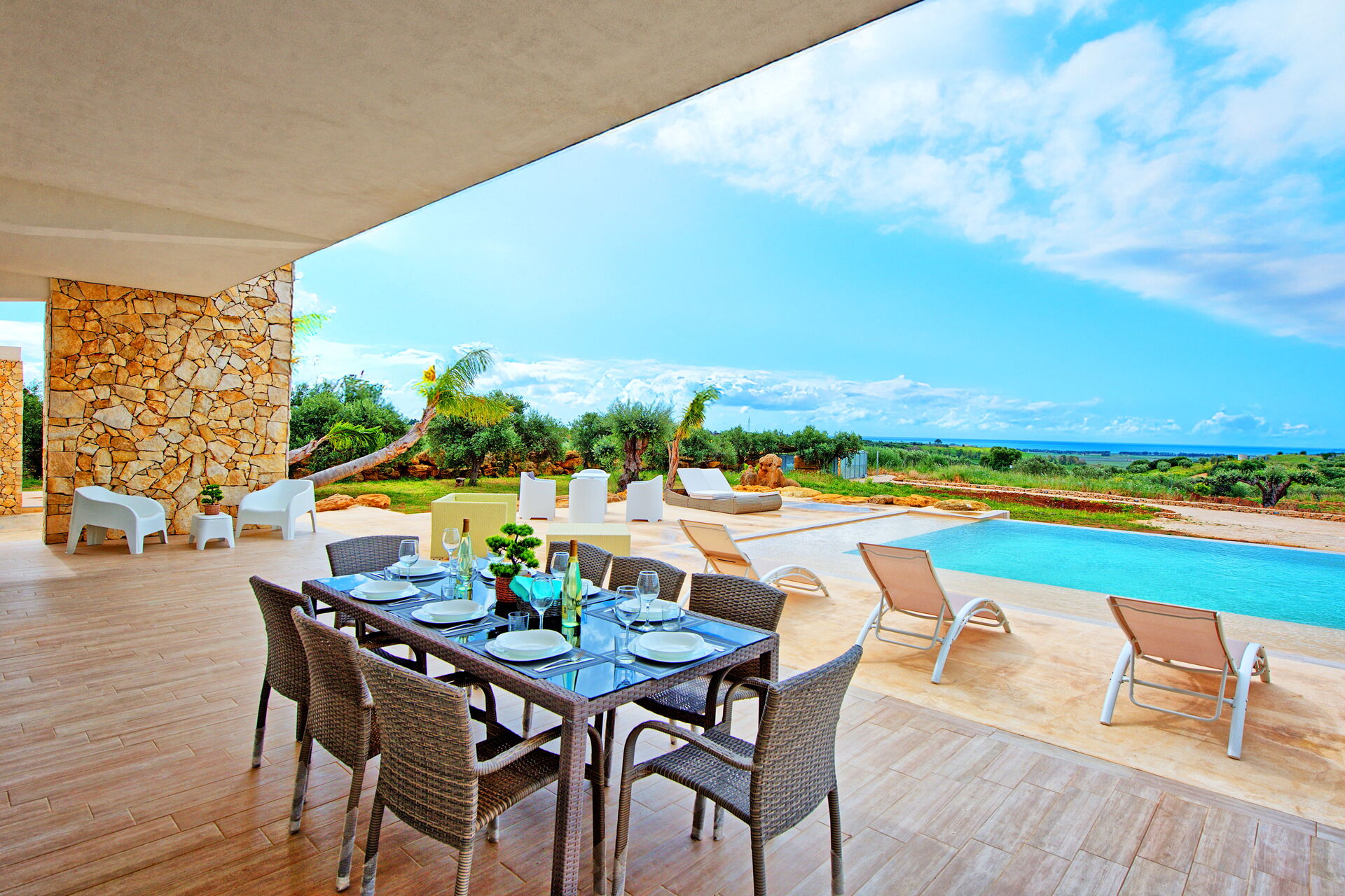Villa Infinito er et moderne feriehus med privat basseng på Sicilia som ligger på et solrikt sted bare få kilometer fra havet i nærheten av Menfi.