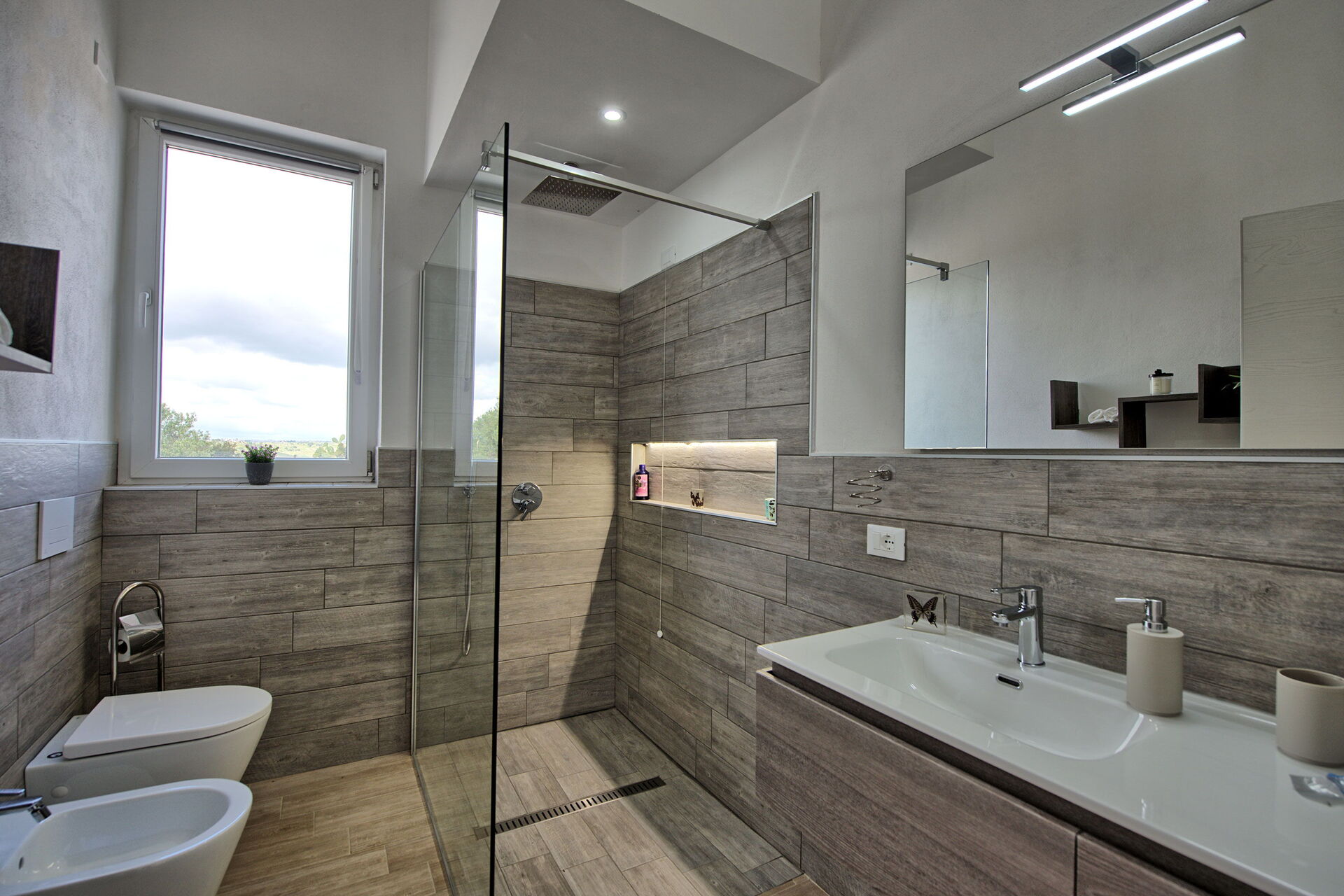Going inside the villa, the kitchen is well appointed , and equipped,, every detail thought out…brava Katia ! It’s new and clean. The beds were very comfortable! Views out of every window, we loved it. The house is equipped with smart TV’s, which also provided background music for our stay. Four full bathrooms and two outdoor showers, was over the top! The A/C was a comfort as well.
