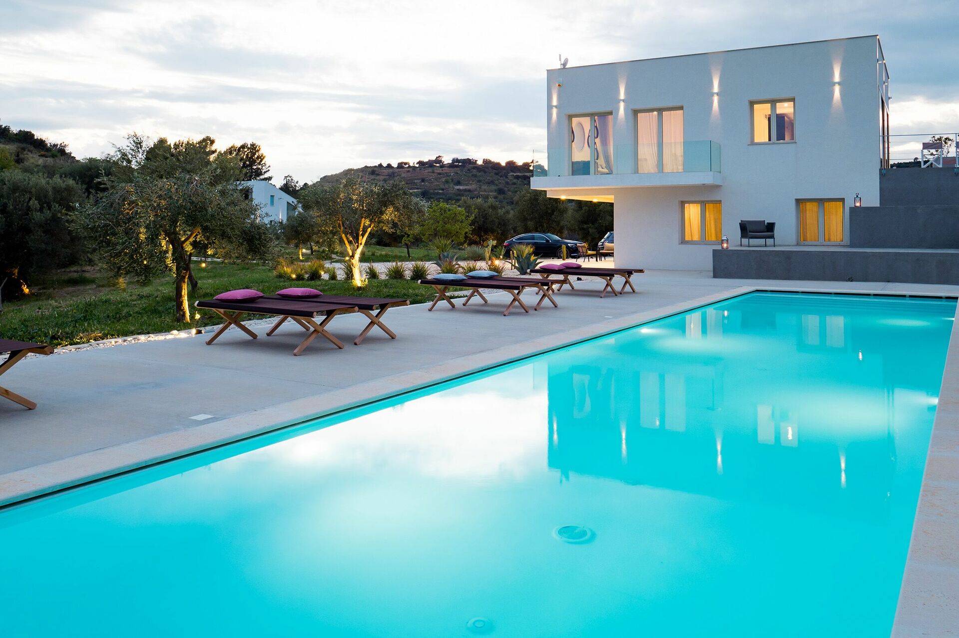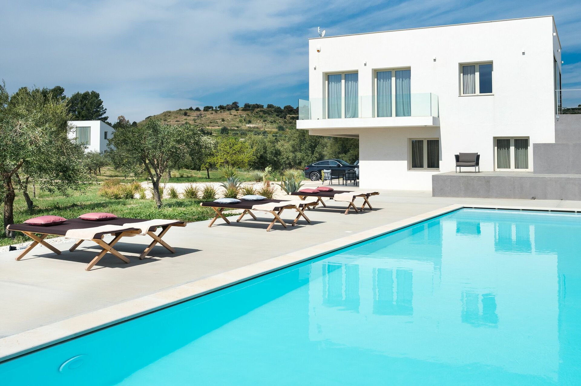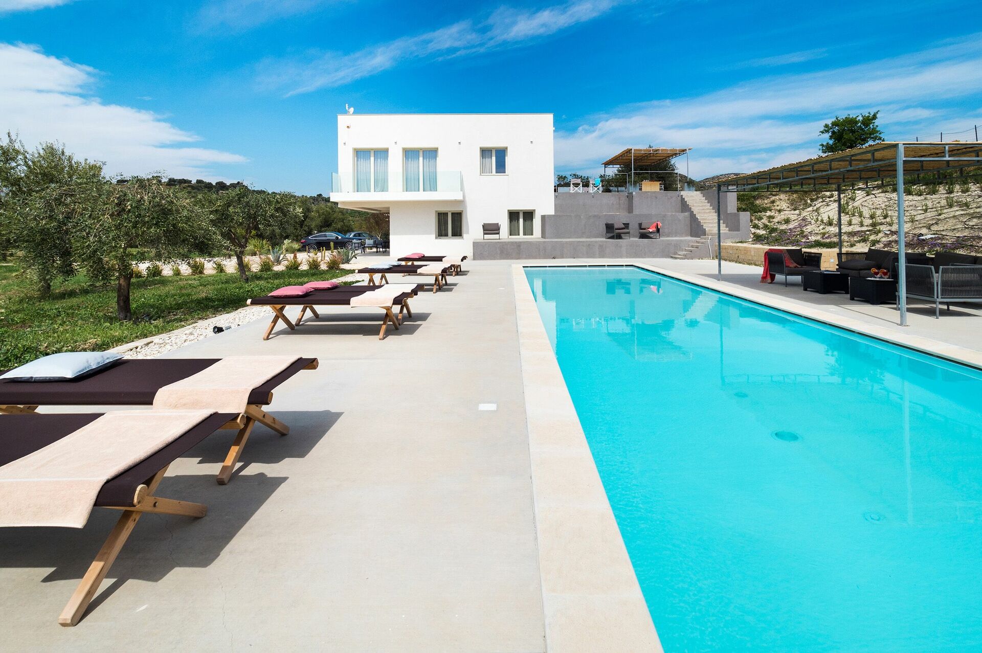 Luksusvilla med privat svømmebasseng til leie på Sicilia. Feriehuset ligger bare 2 km fra den velkjente byen Noto, en gammel og fantastisk barokkby, 35 km fra Siracusa.