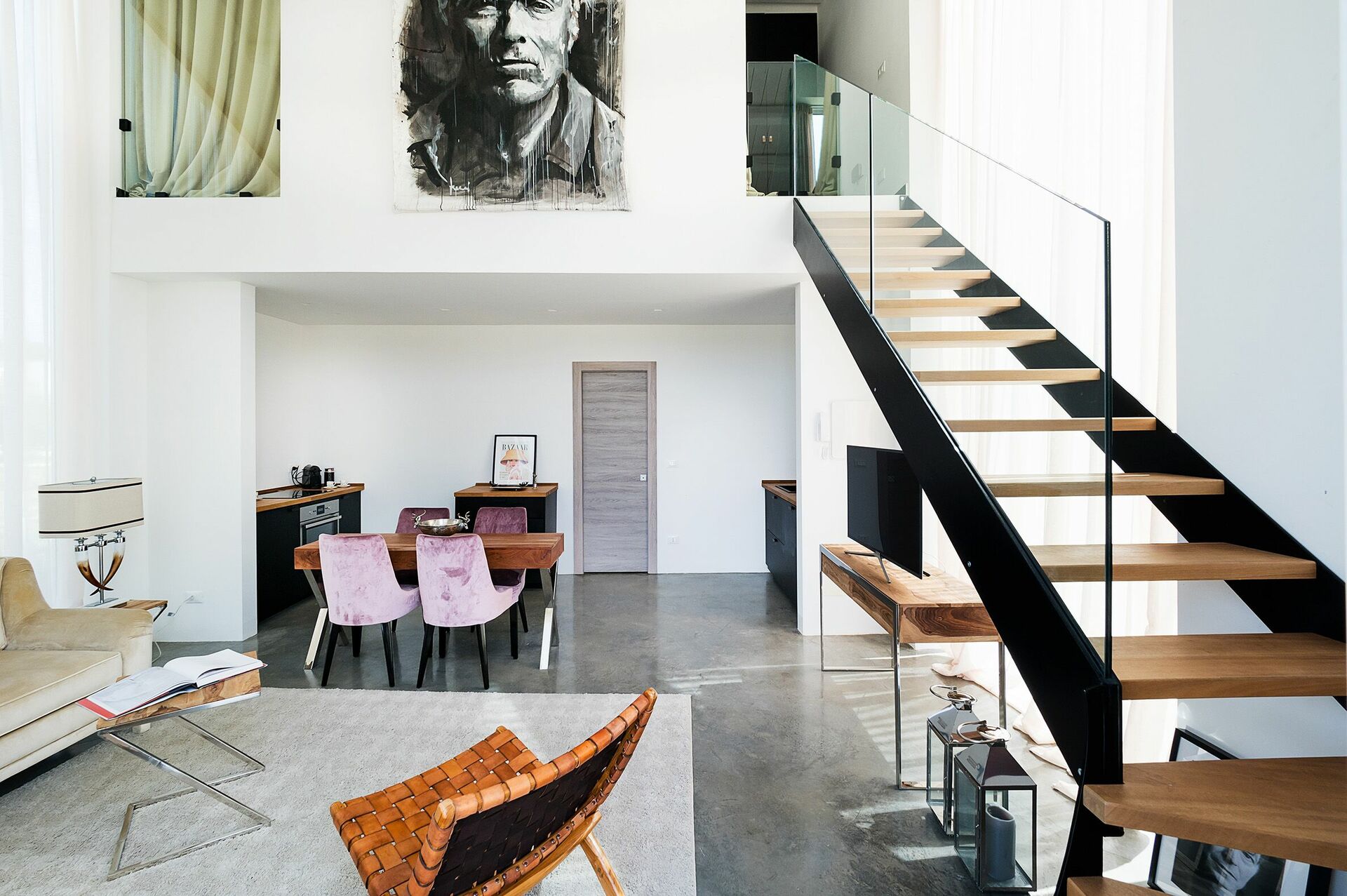 Første etasje: 1 suite med soverom med king-size-seng, stue og eget bad med dusj, 1 suite med dobbelt soverom, stue og eget bad med dusj.