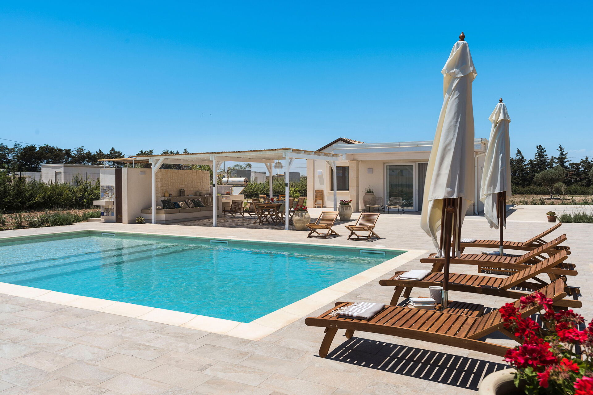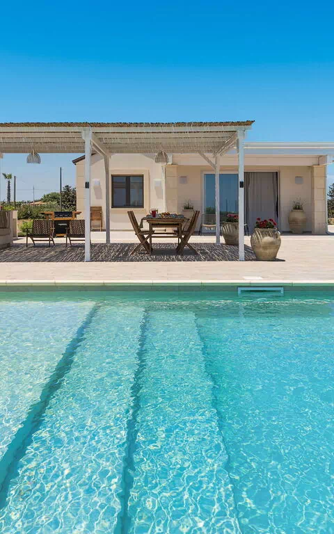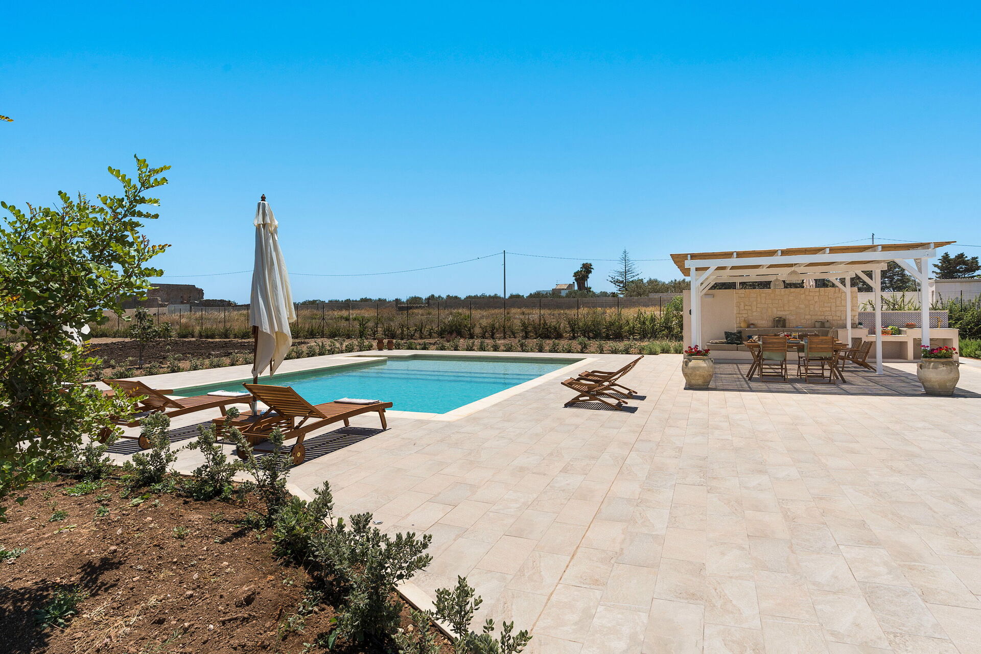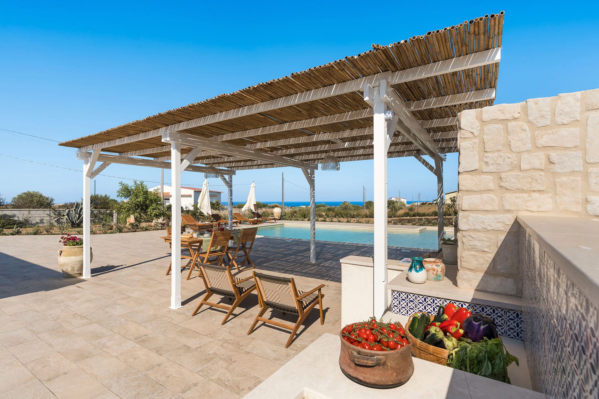 På eiendommen er det et pent privat basseng, en terrasse med solsenger og parasoller, samt en paviljong med bord og stoler. Det perfekte å slappe av eller avkjøle seg under den sicilianske solen sammen med familie eller venner.
