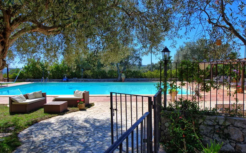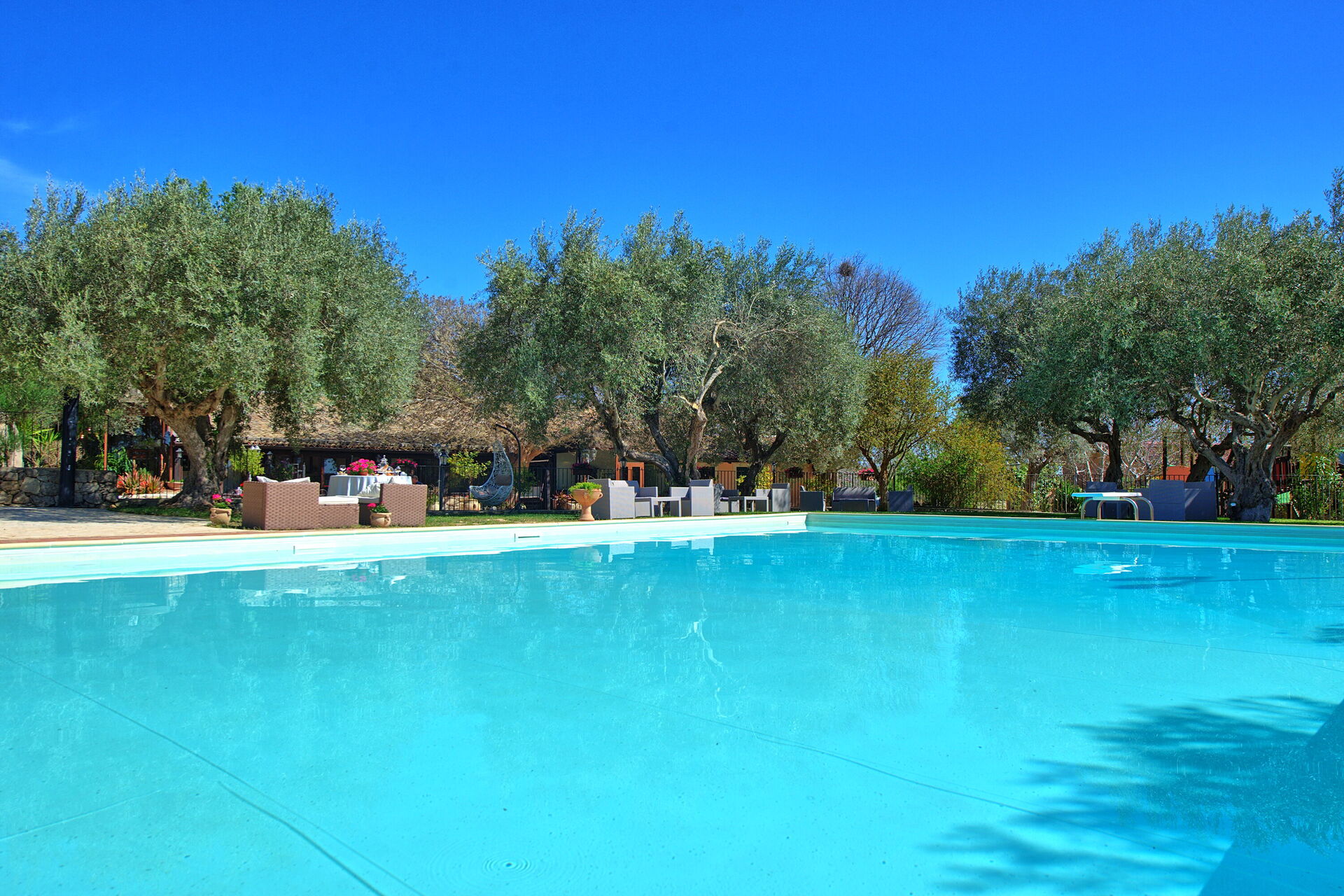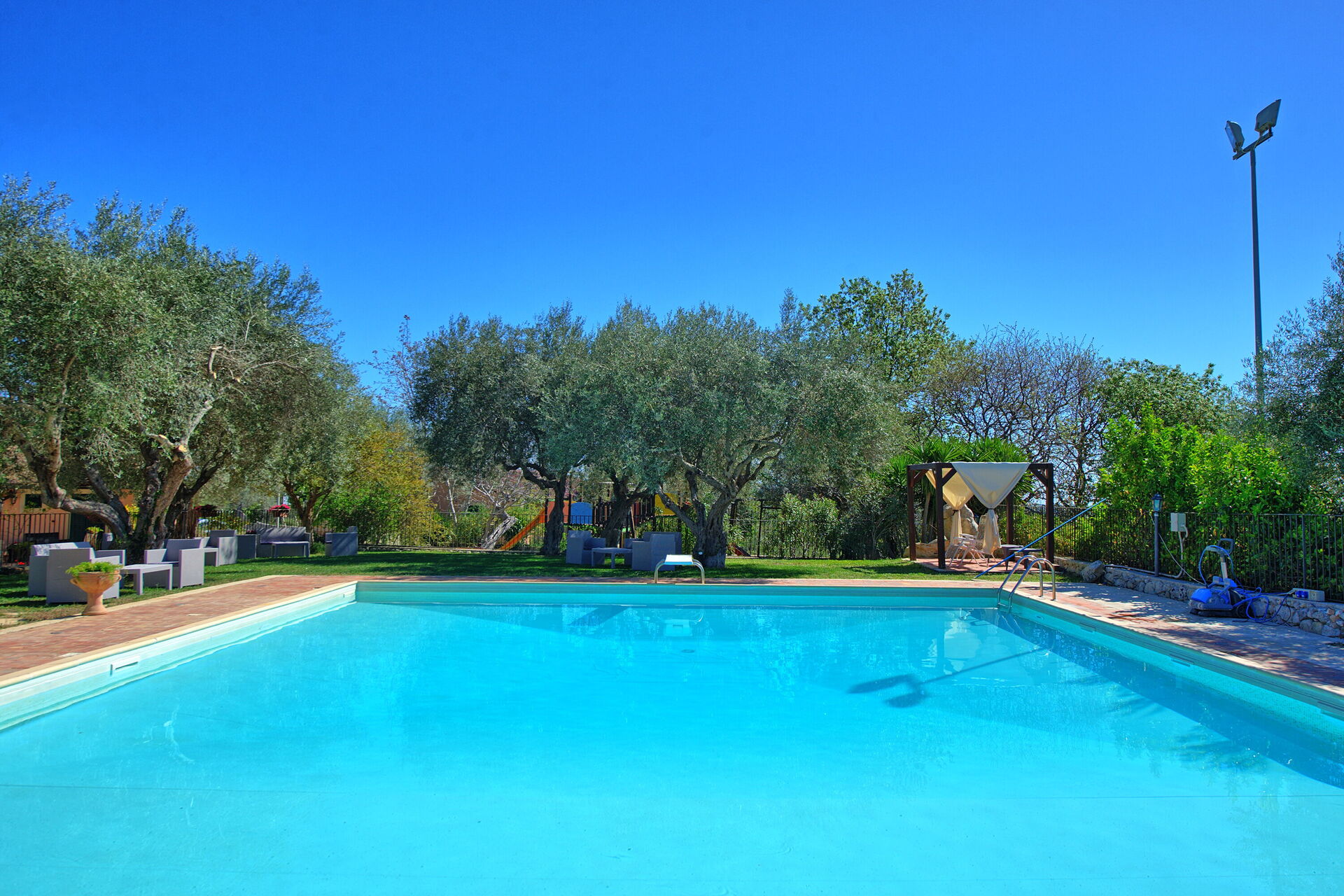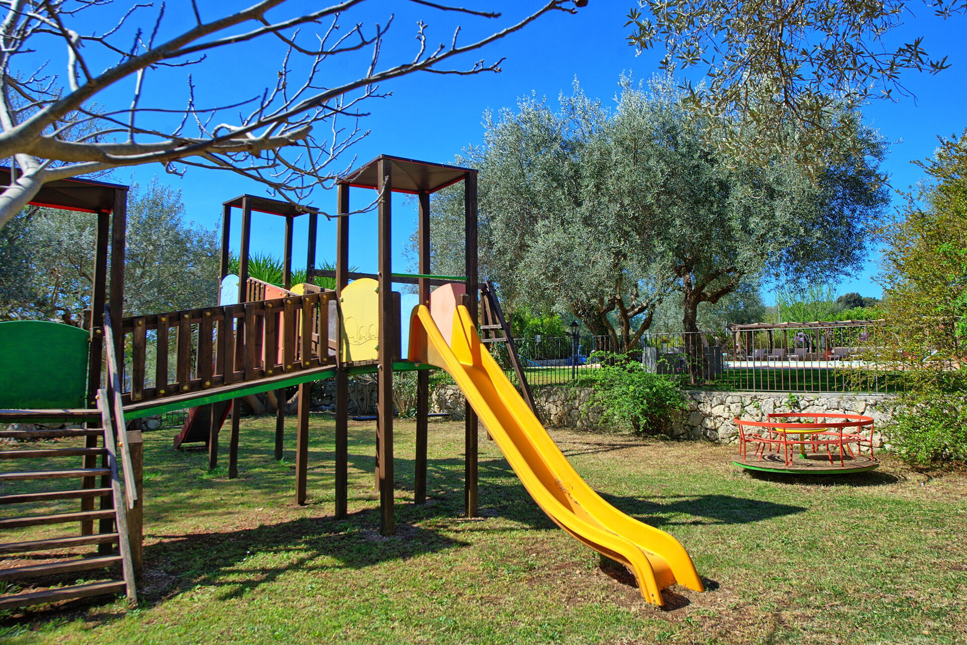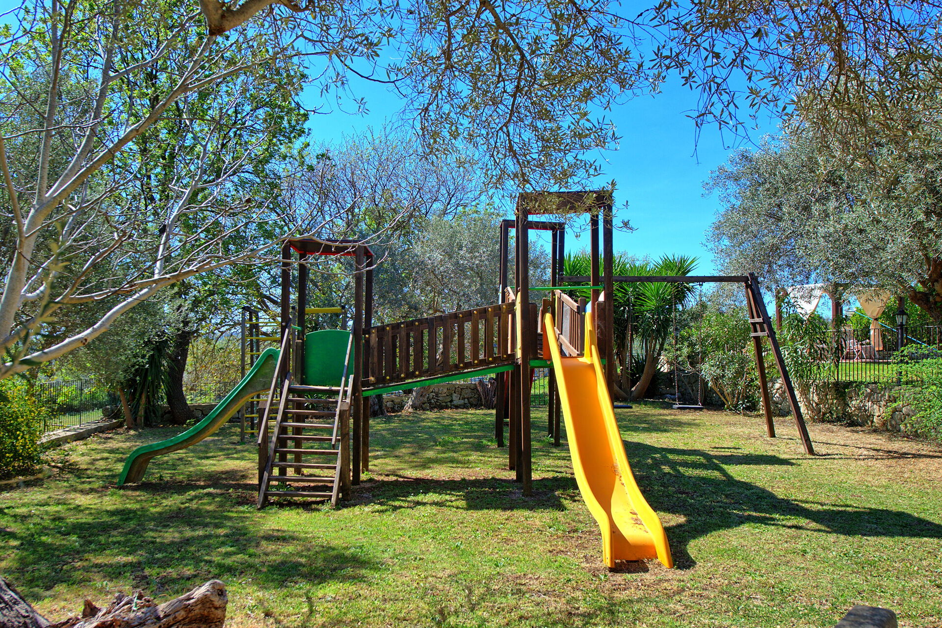 Det er et vakkert basseng, to verandaer og en lekeplass med sklie og huske. Huset omgis av vingårder, olivenlunder, mandeltrær og turstier.