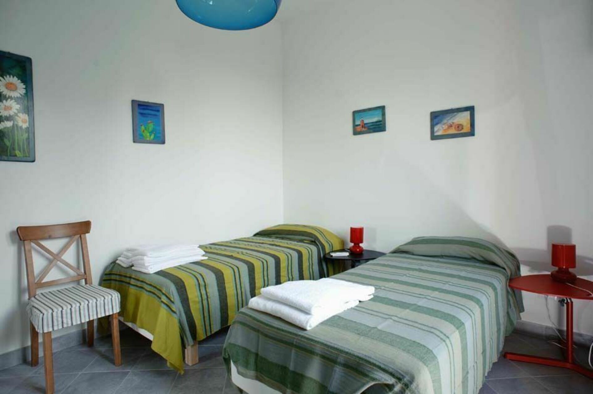 Dobbeltrom, 1 soverom med 2 enkeltsenger, 1 soverom med 2 enkeltsenger, 2 bad med dusj, liten terrasse.