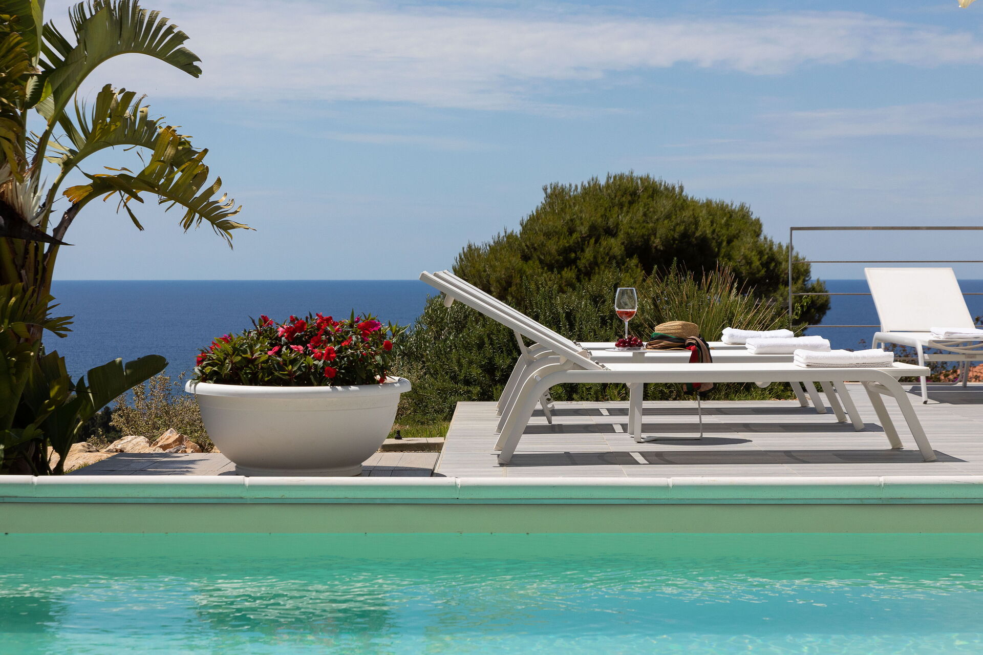 Eiendommen har en stor veranda som fører bort til hagen, hvor man finner et privat basseng. Fra de store vinduene i huset har man vakker utsikt helt til Egadiøyene.