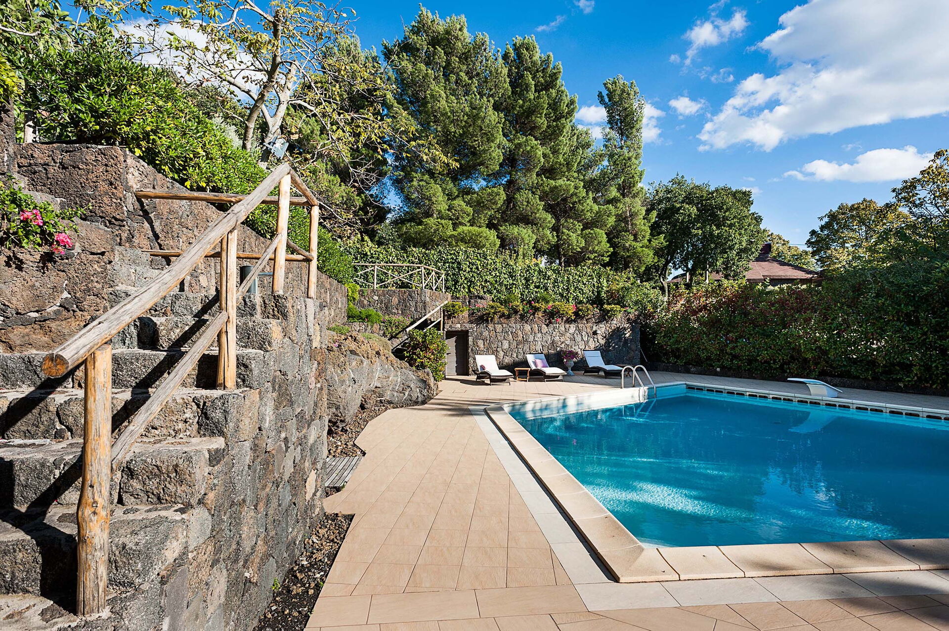 Villa Montefiore har tradisjonelle arkitektoniske kjennetegn som veggbelegg av svart lavastein, en etasje, to soverom, begge med eget bad, og plass til opptil 4 personer.