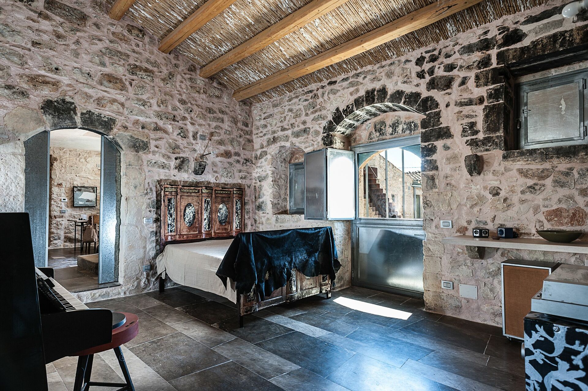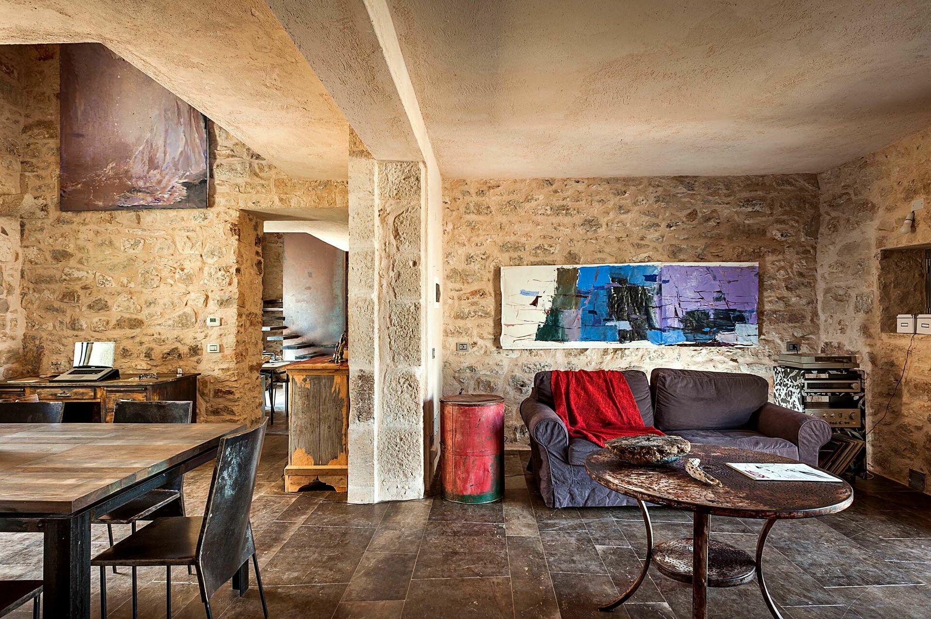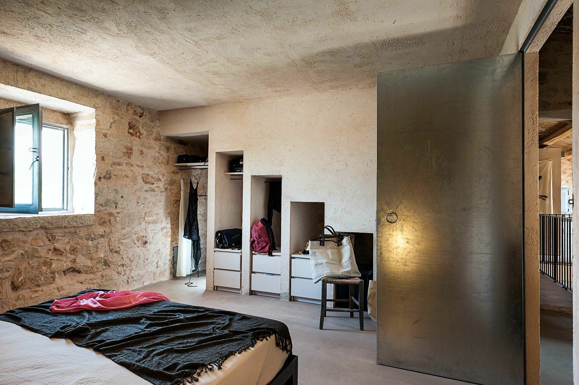 Huset er omgitt av tradisjonelle steingjerder, og byr på et vakkert basseng; store, solfylte terrasser; og en sjarmerende indre gårdsplass. Interiøret har designelementer og bruk av materialer som naturstein, stål og tre, i perfekt harmoni med byggestilen.