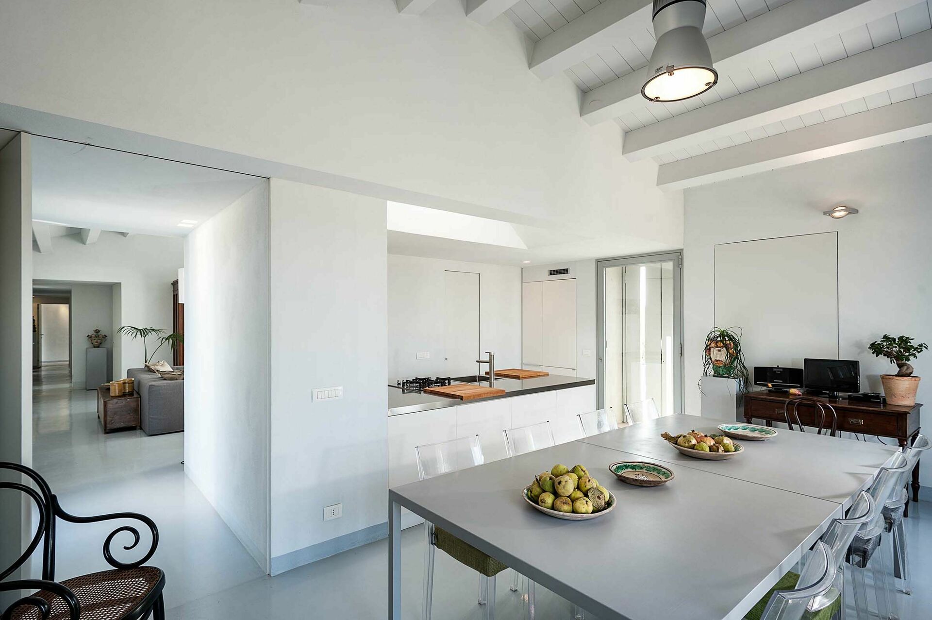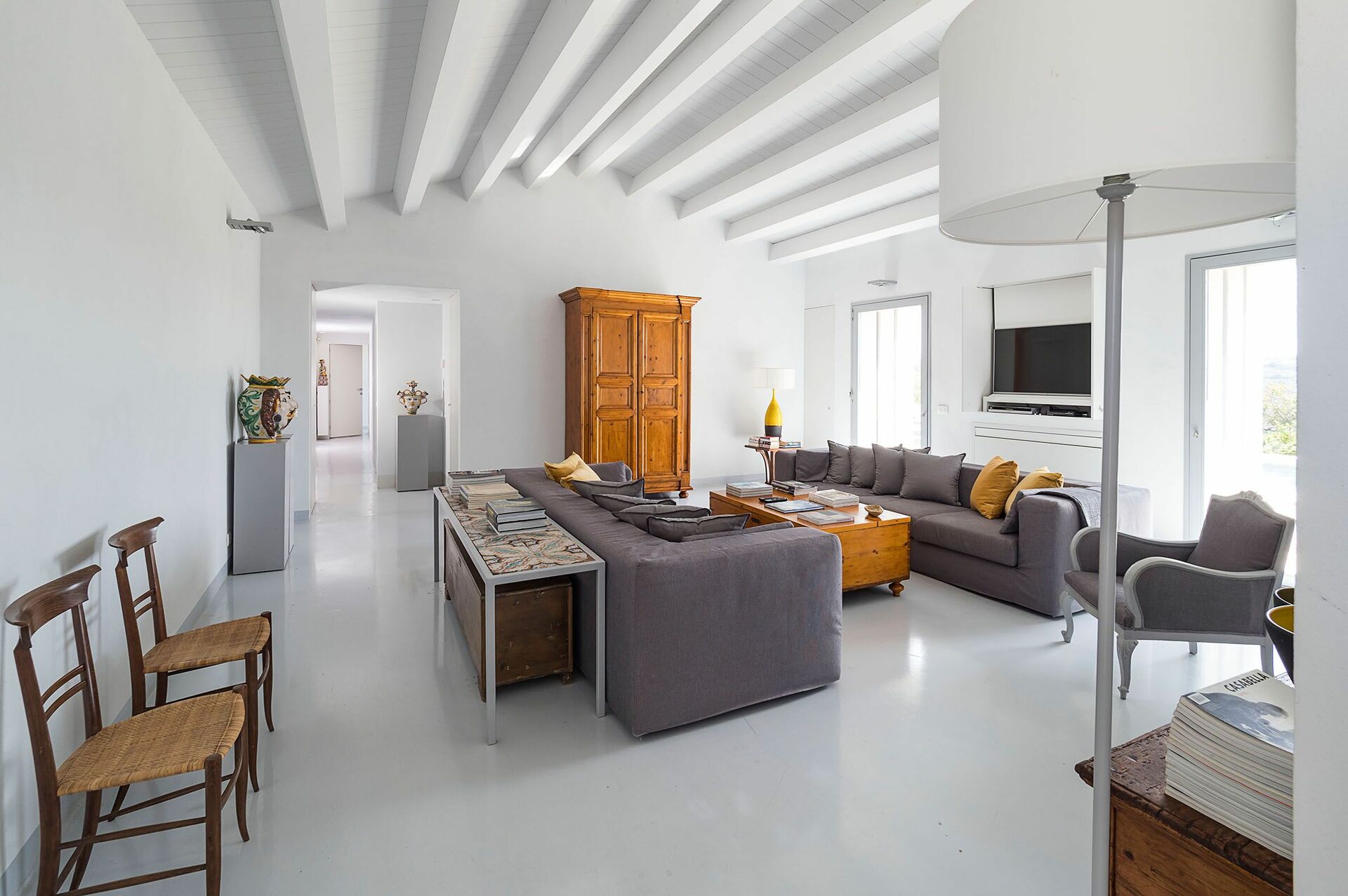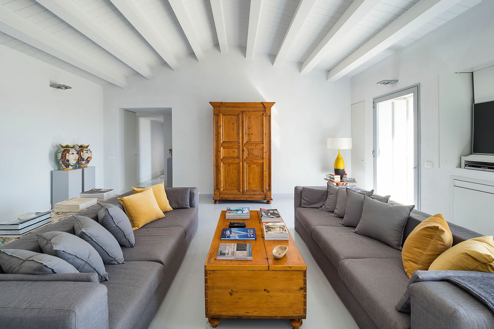 Feriehuset er smakfullt innredet med et interiør som har fokus på detaljer: det er innslag av antikviteter, så vel som moderne designmøbler.