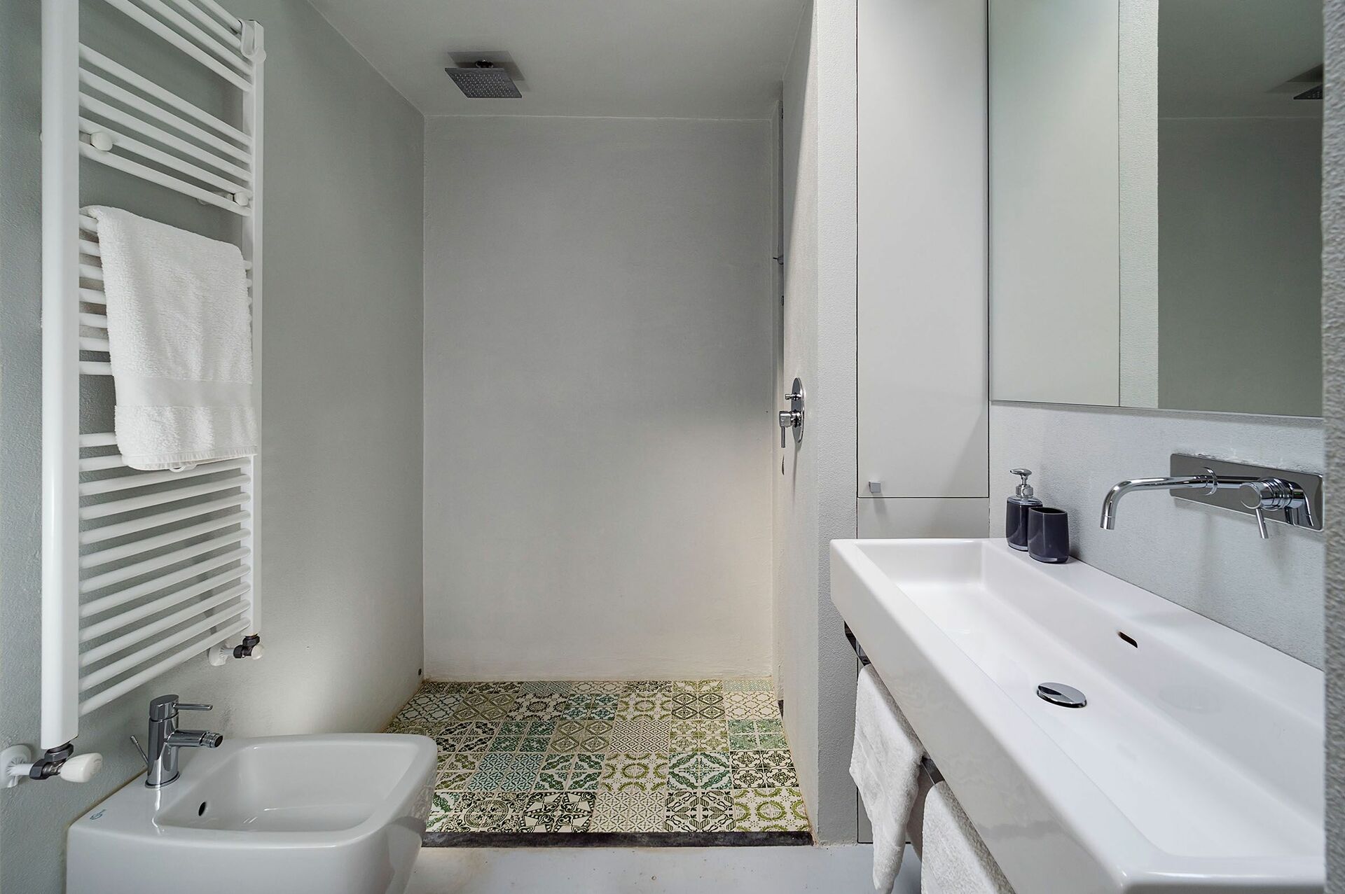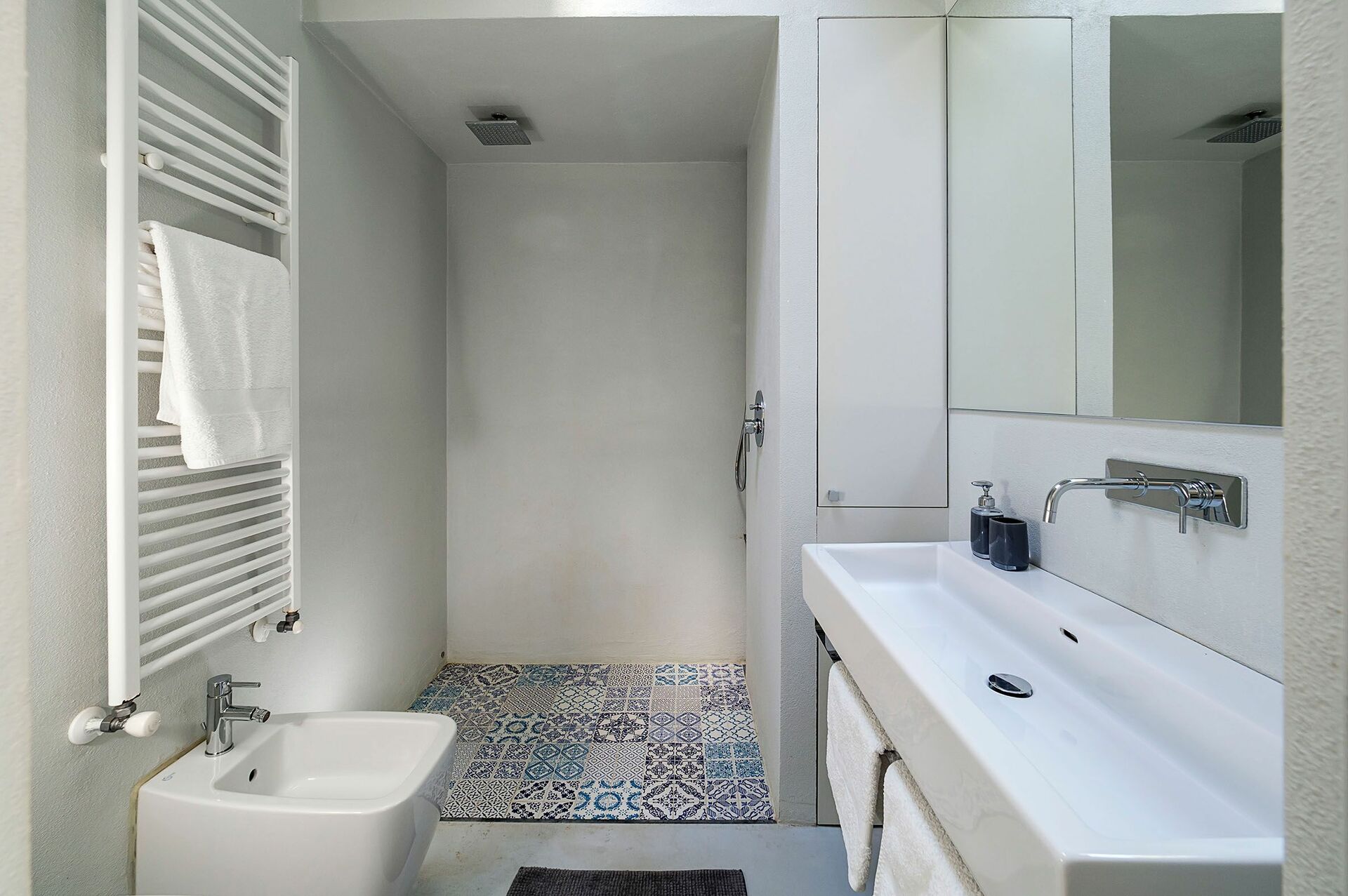 Første etasje: stue; spisestue med kjøkken (ovn, fryser, oppvaskmaskin, mikrobølgeovn, kaffemaskin); 1 bad; 2 doble soverom, hvert med eget bad med dusj; 1 soverom med dobbeltseng/2 enkeltsenger med bad med badekar.