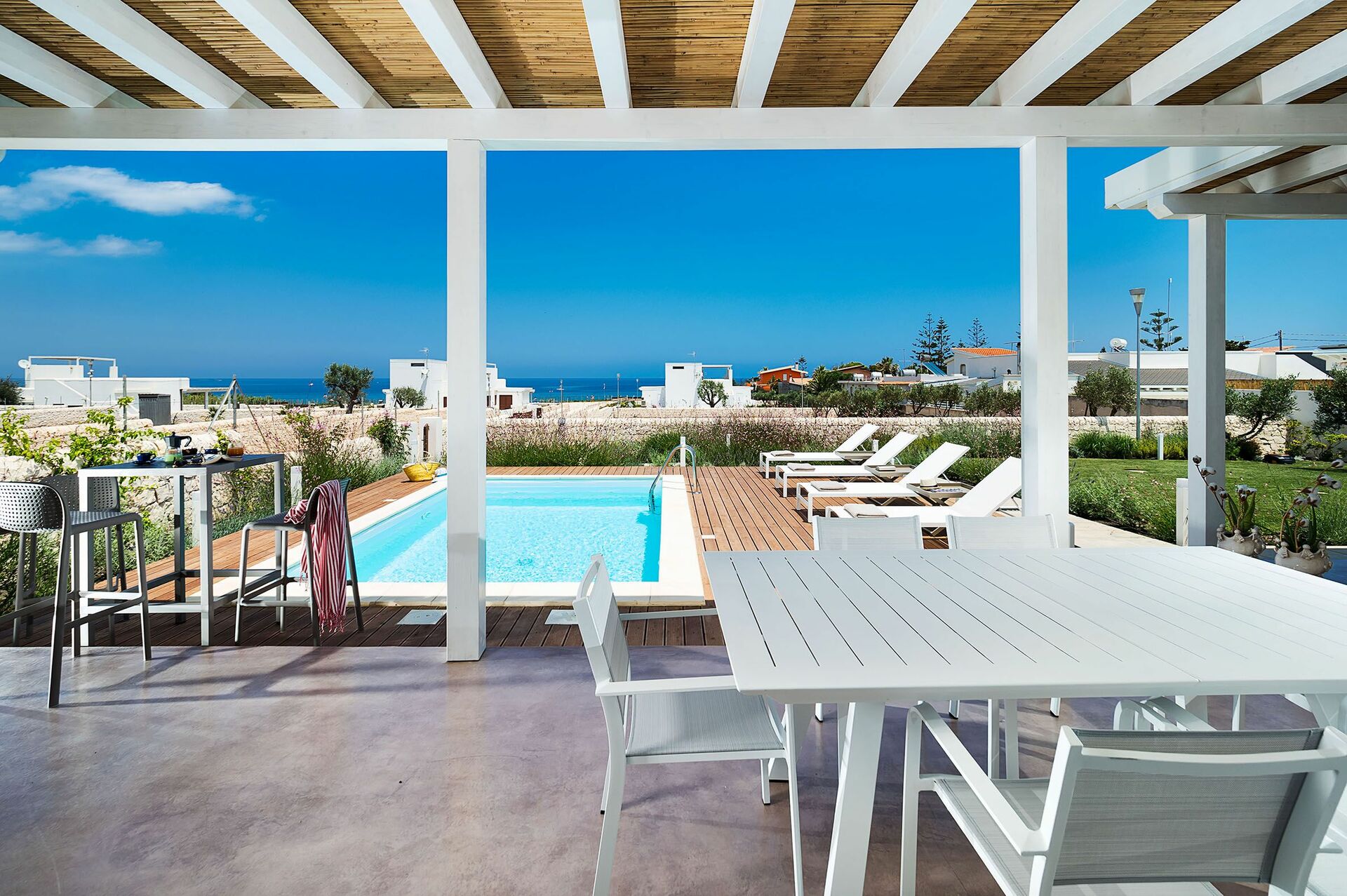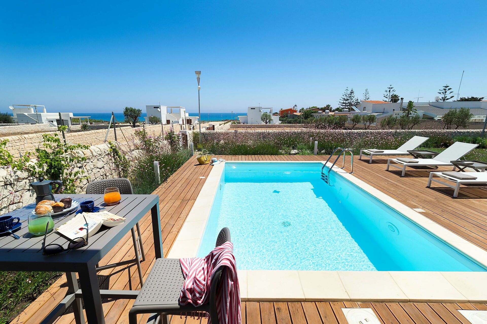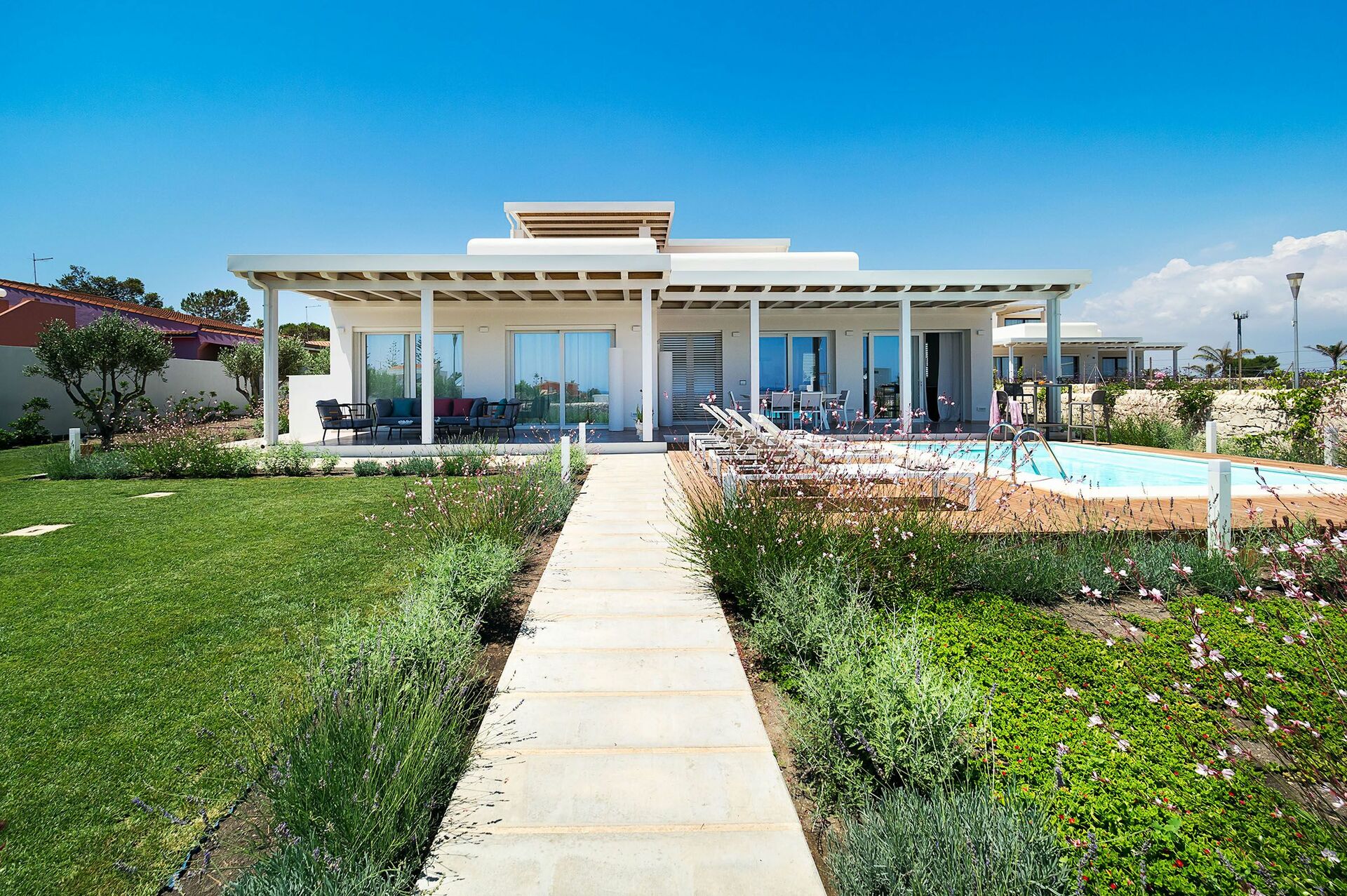 Villa San Lorenzo Palma er et pent feriehus med basseng noen få skritt fra sjøen i den populære badebyen San Lorenzo på Sicilia. Den lille byen kan tilby en av de vakreste strendene på Sicilia.