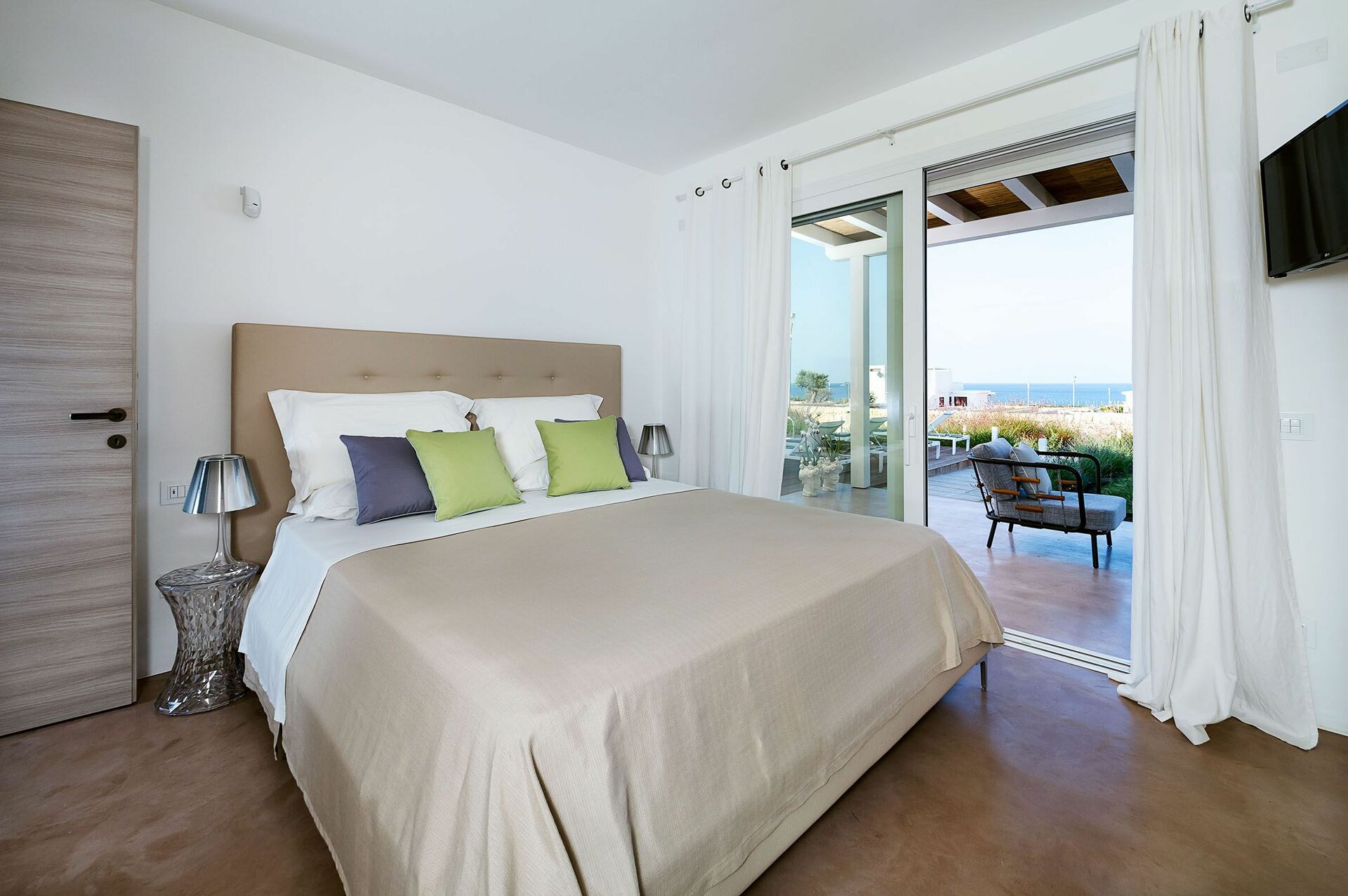 Huset er omgitt av en velholdt hage og store terrasser med panoramautsikt til havet. På eiendommen finner du også et lite privat svømmebasseng. Feriehuset er nyligoppført og har lyse, komfortable rom innredet med tanke på smak og funksjonalitet.