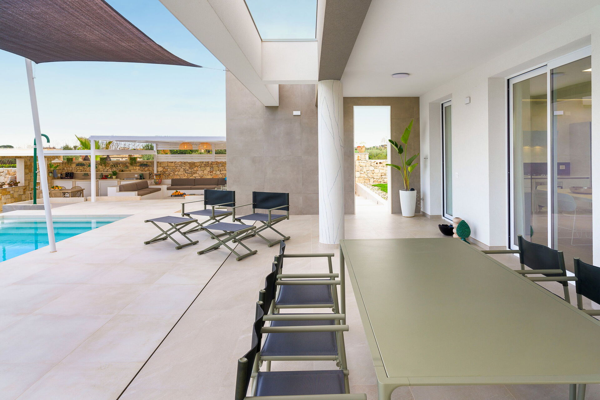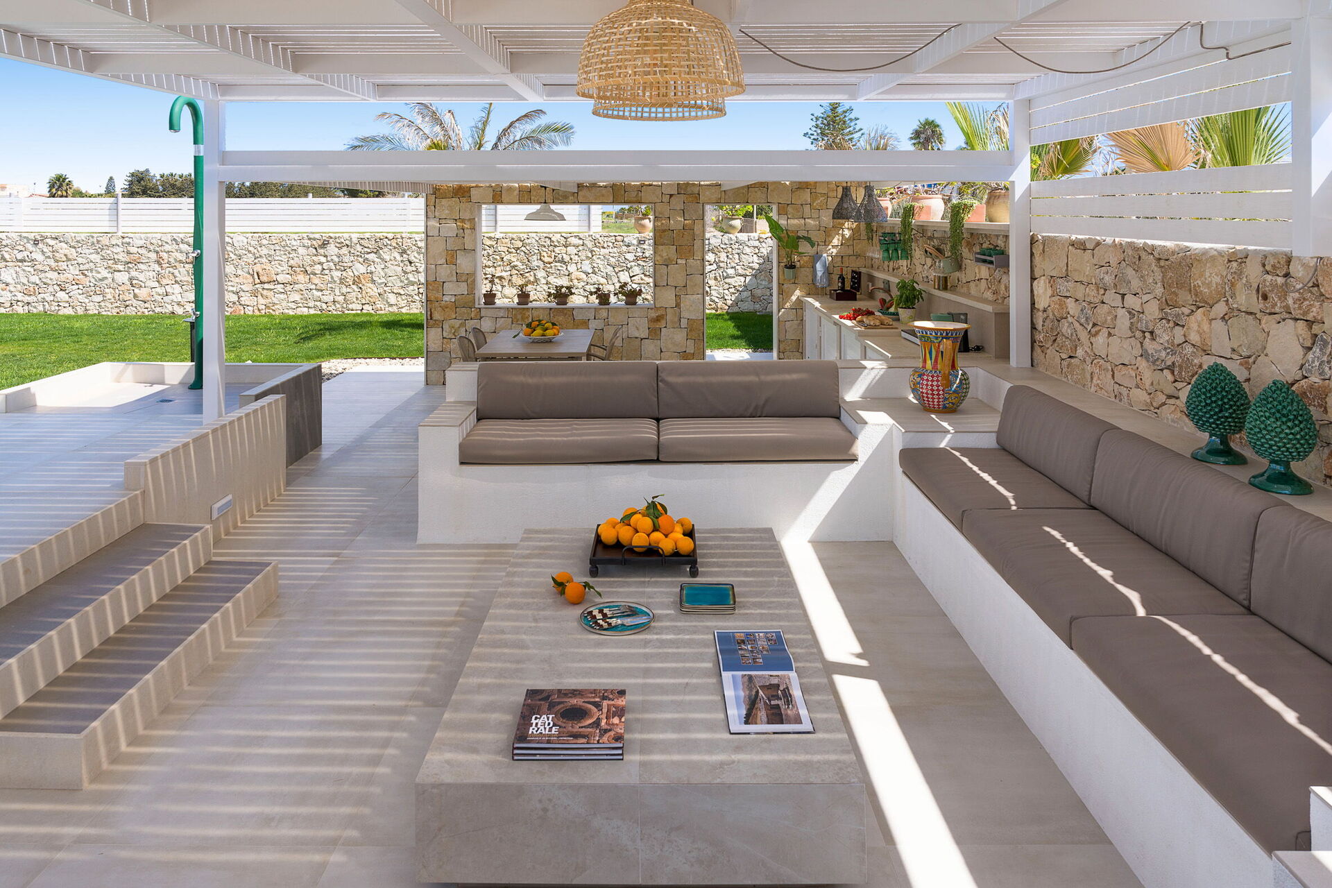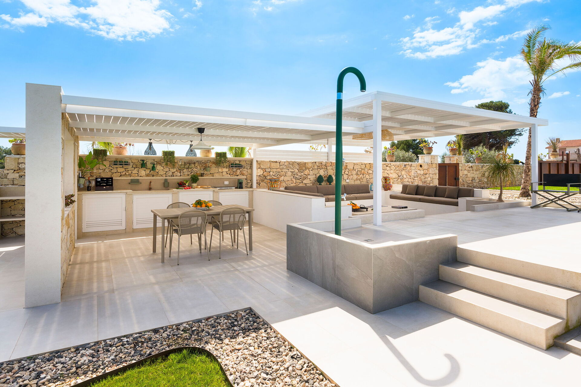 It was clean with equipped indoor and outdoor kitchens which were excellent. The garden furniture around the house and the variety of seating areas were all very comfortable and allowed you to follow the sun. The pool was large and clean regularly by Corrado who popped in every few days. The property was enclosed and with the electronic gate, and not being overlooked, provided privacy.
