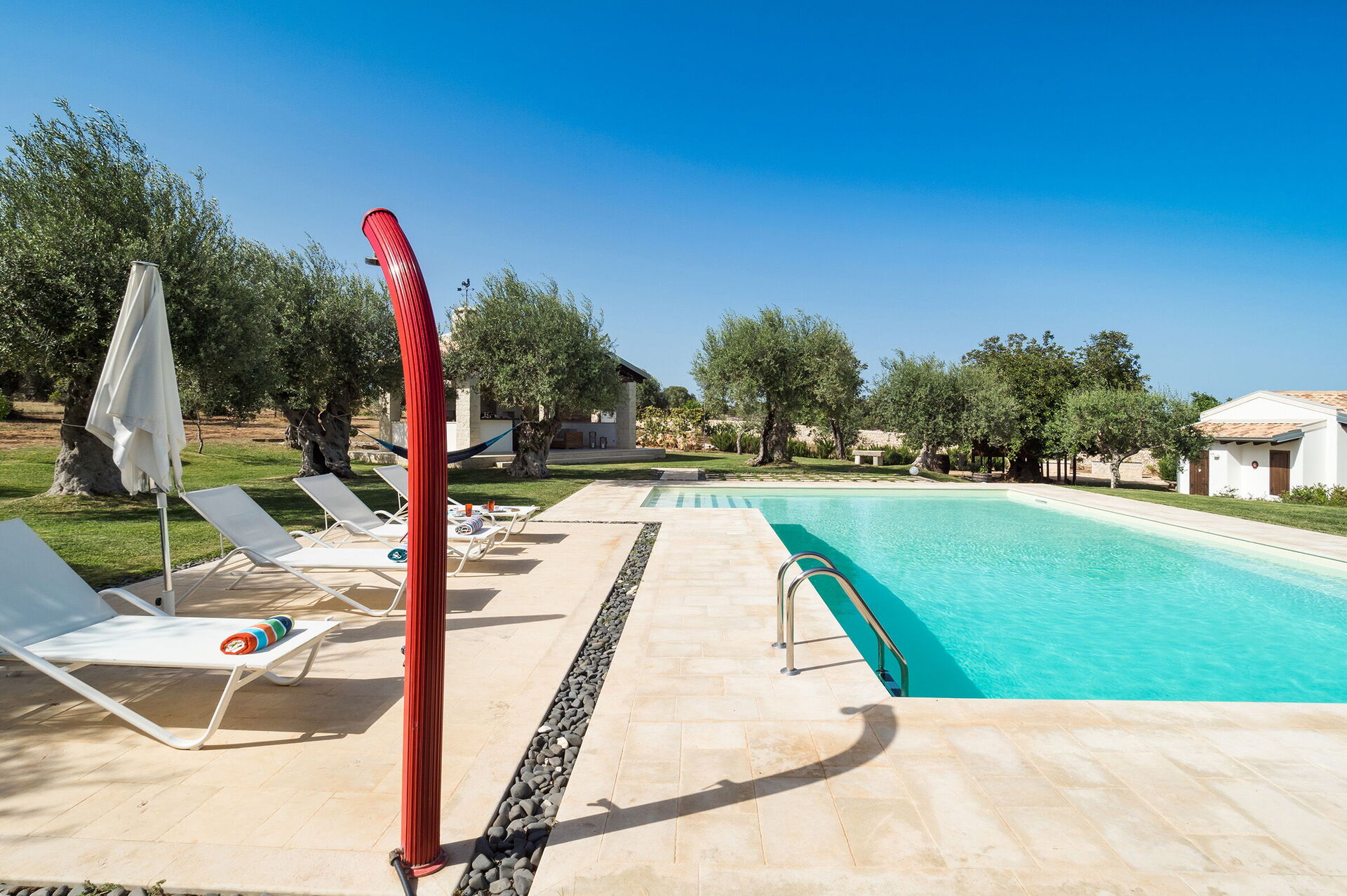 - Privat saltvannsbasseng (12 x 6 m; min dybde: 1,10 m; maks dybde: 2,30 m)