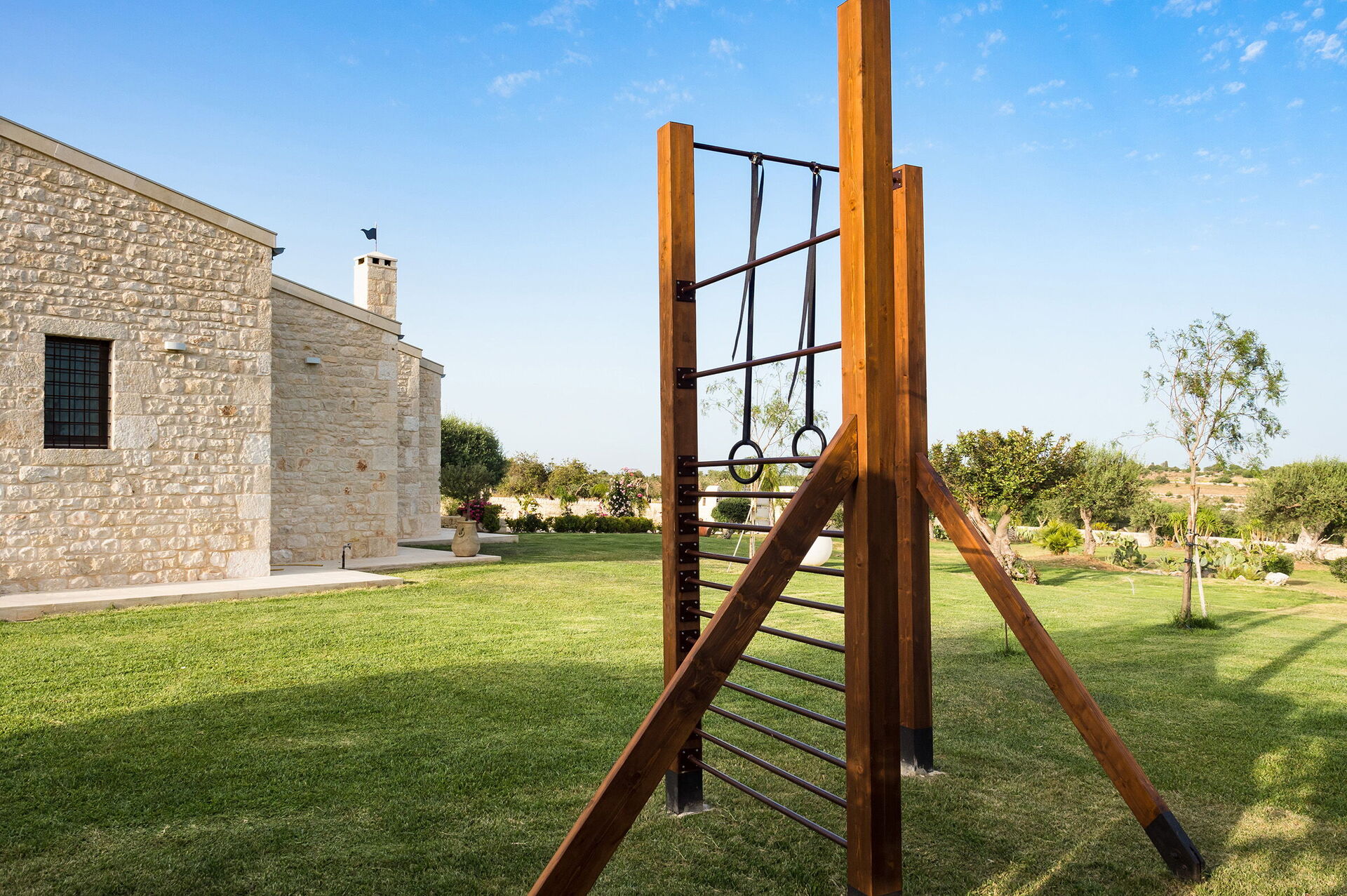Feriehuset på en etasje har nylig blitt renovert består av en hovedenhet med 3 soverom og et anneks (noen få meter unna) med 2 soverom til: hele eiendommen har plass til opptil 10 personer.
