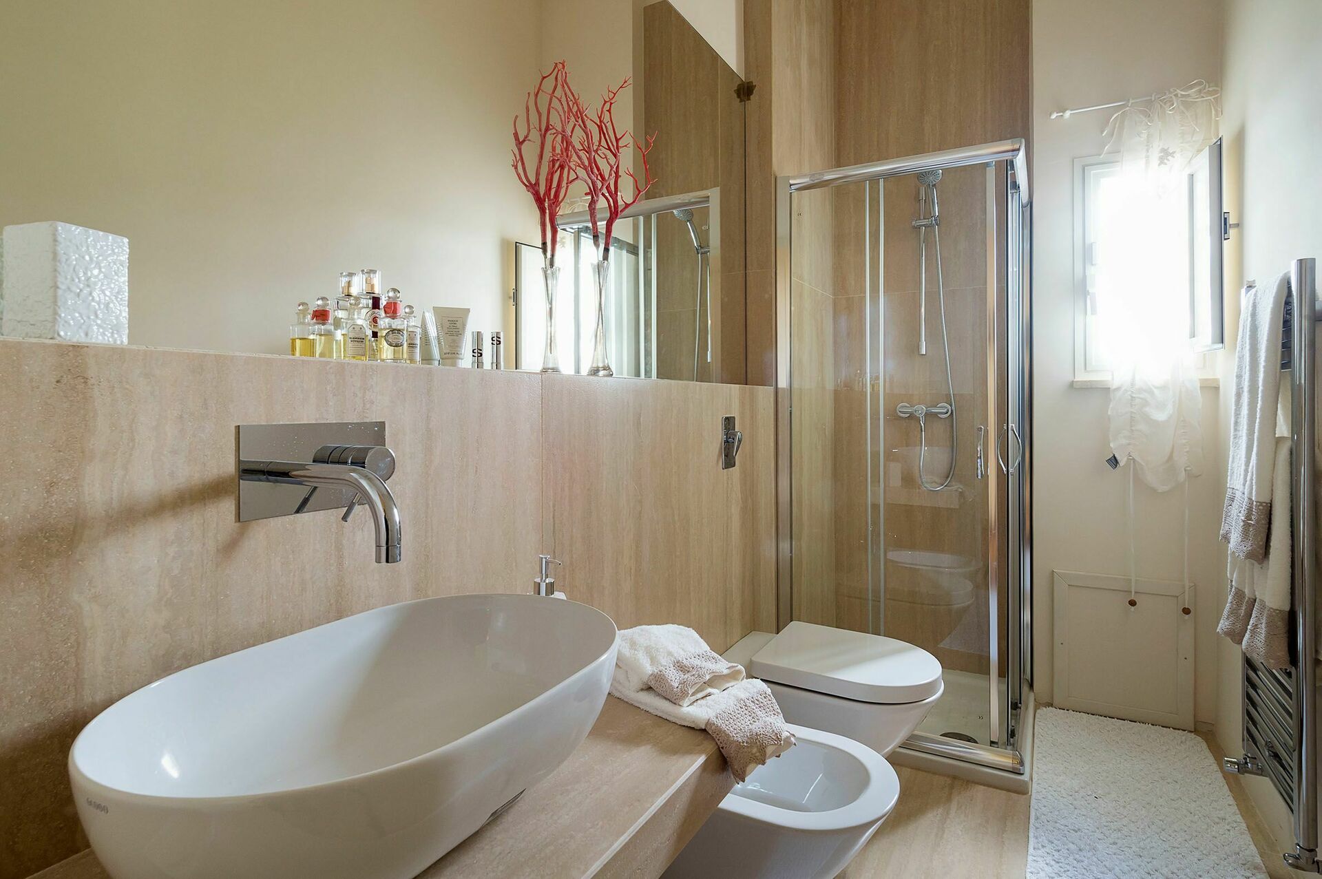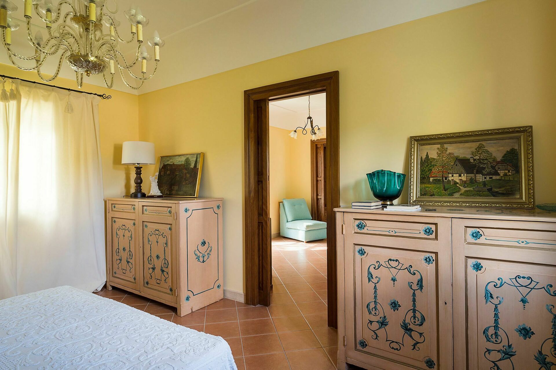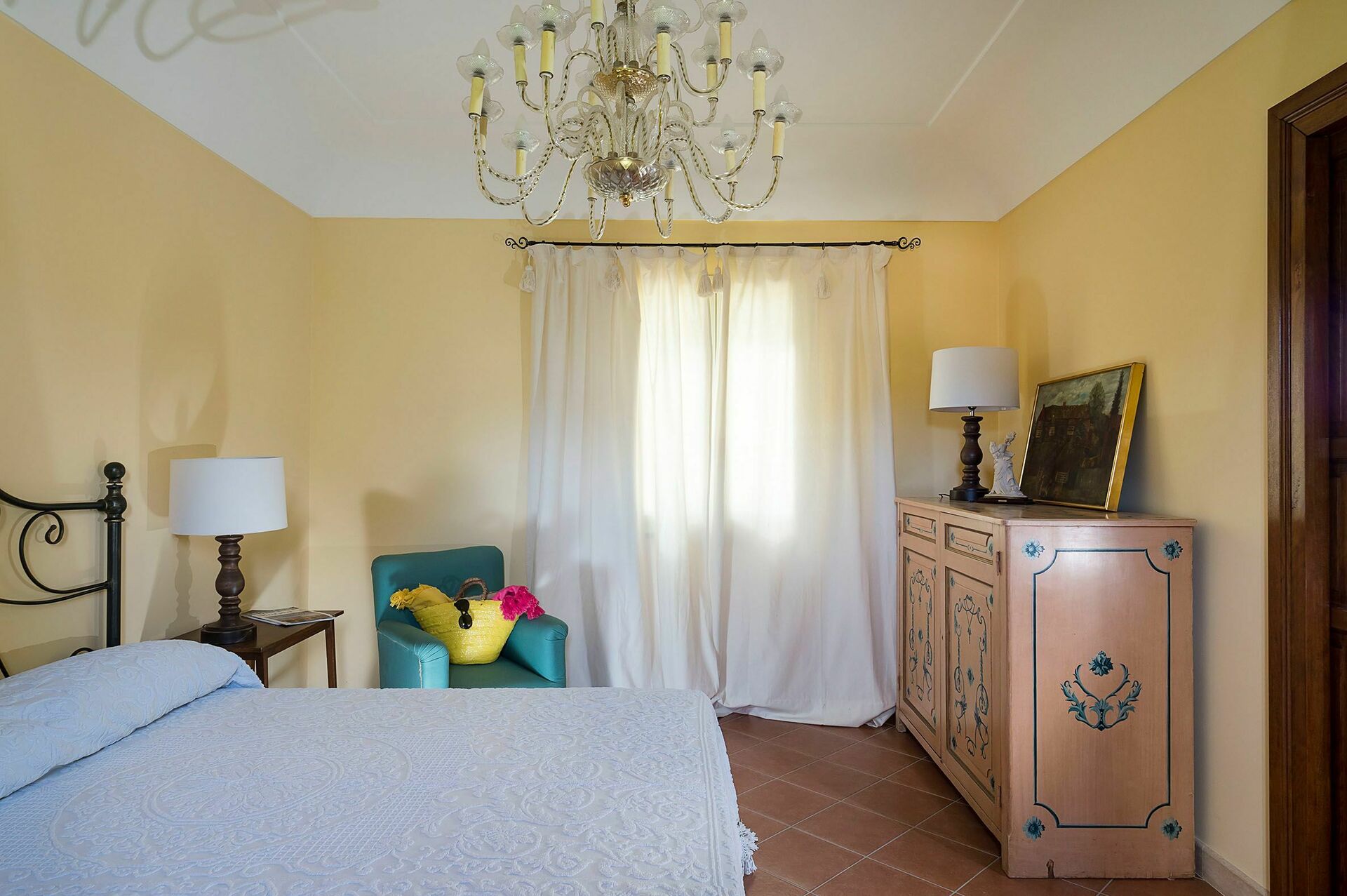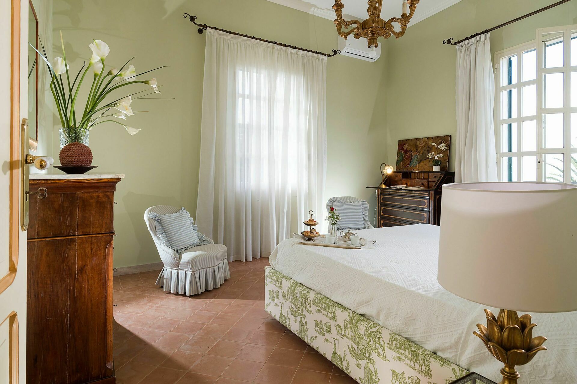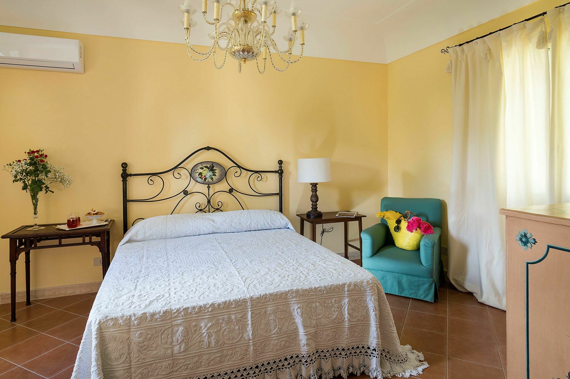 Interiøret er delikat dekorert med pastellfarger, matchende gardiner og tekstiler, og er utstyrt med alle moderne fasiliteter, med aircondition, internett Wi-Fi, satellitt-TV, vaskemaskin og oppvaskmaskin.