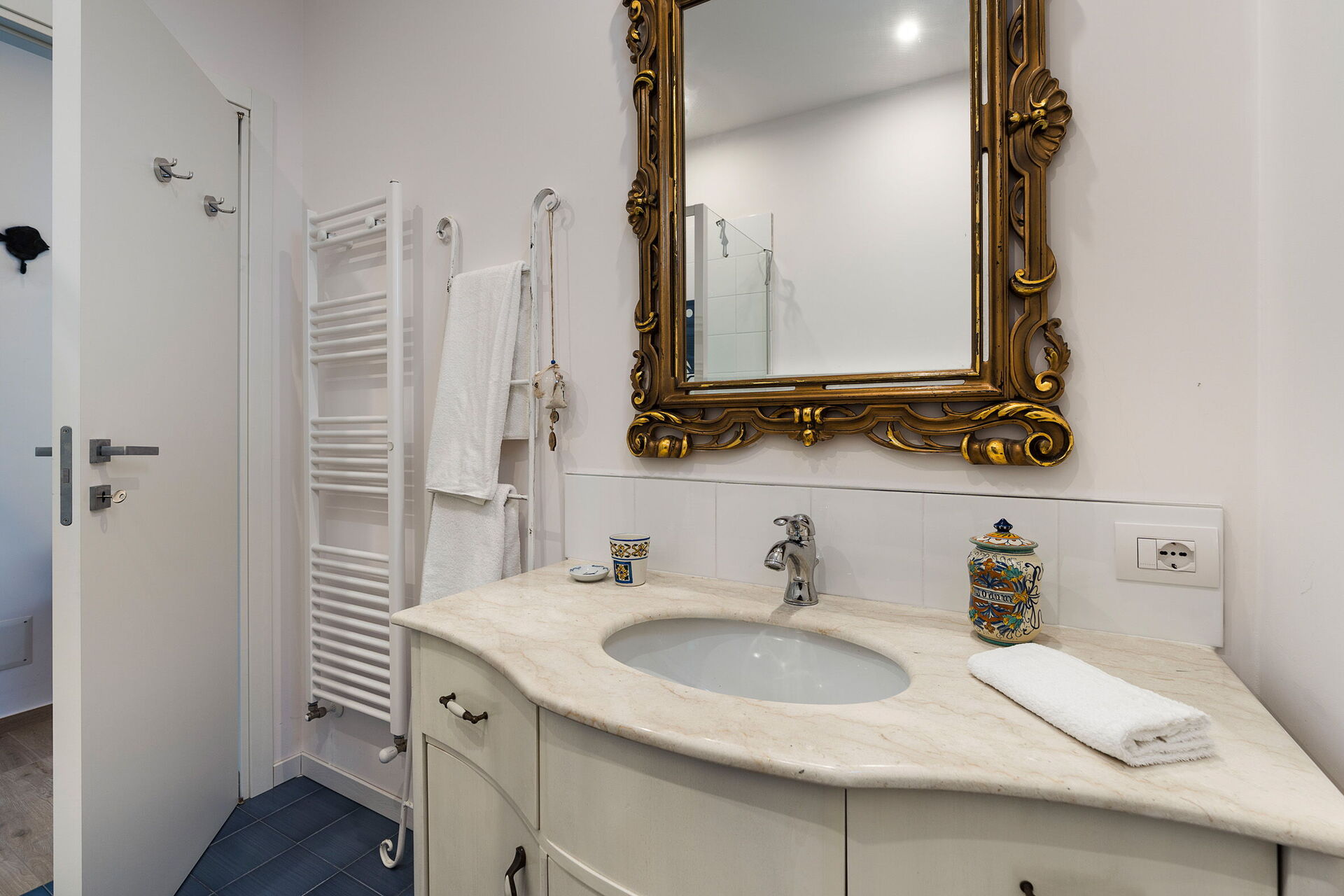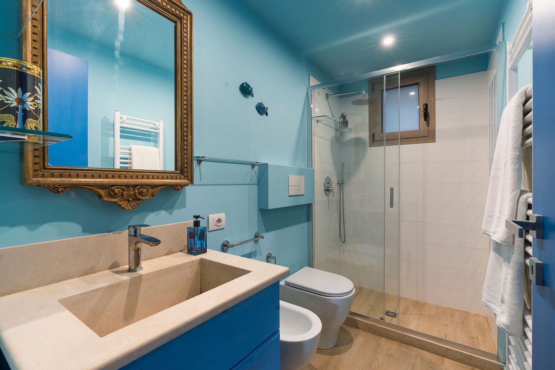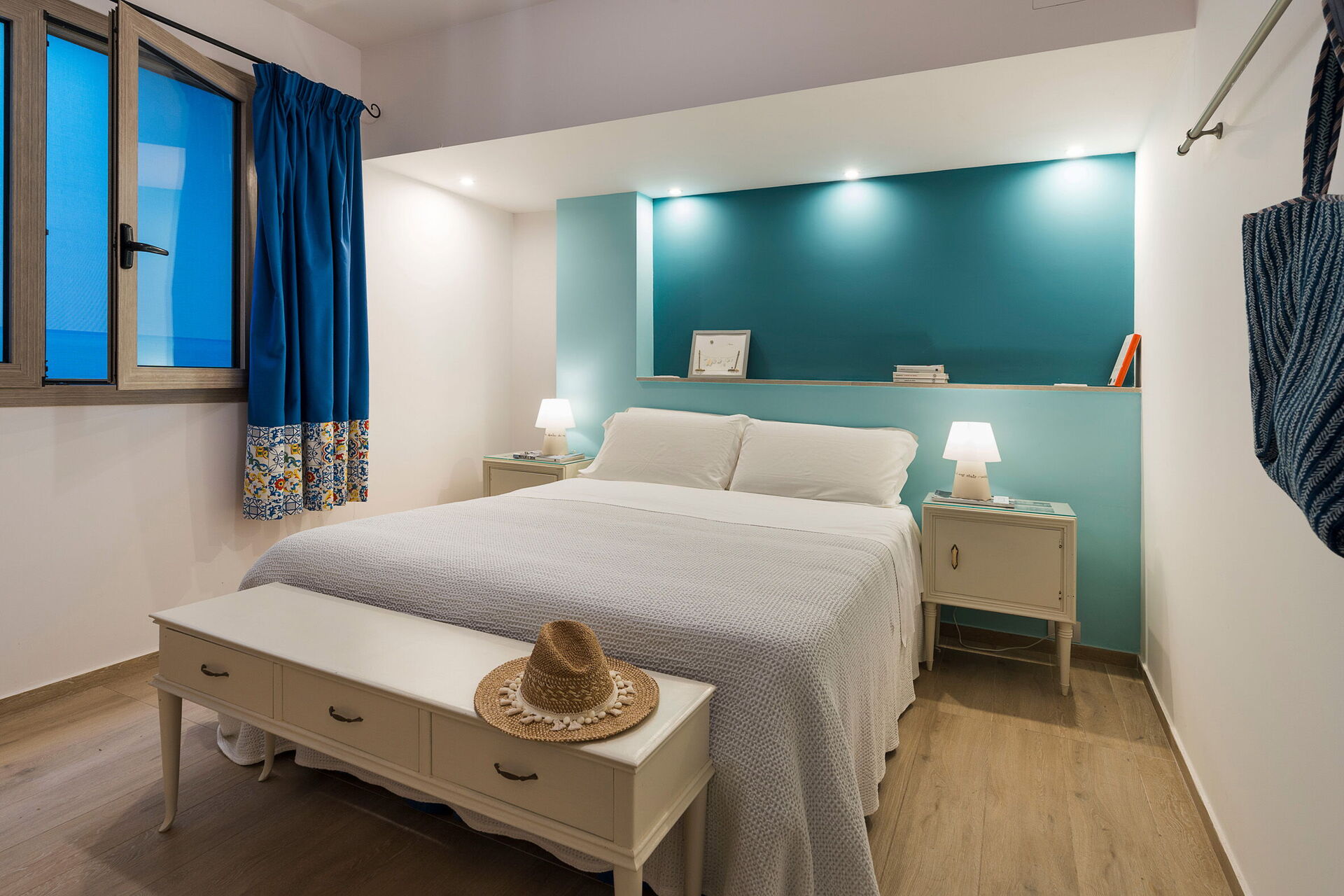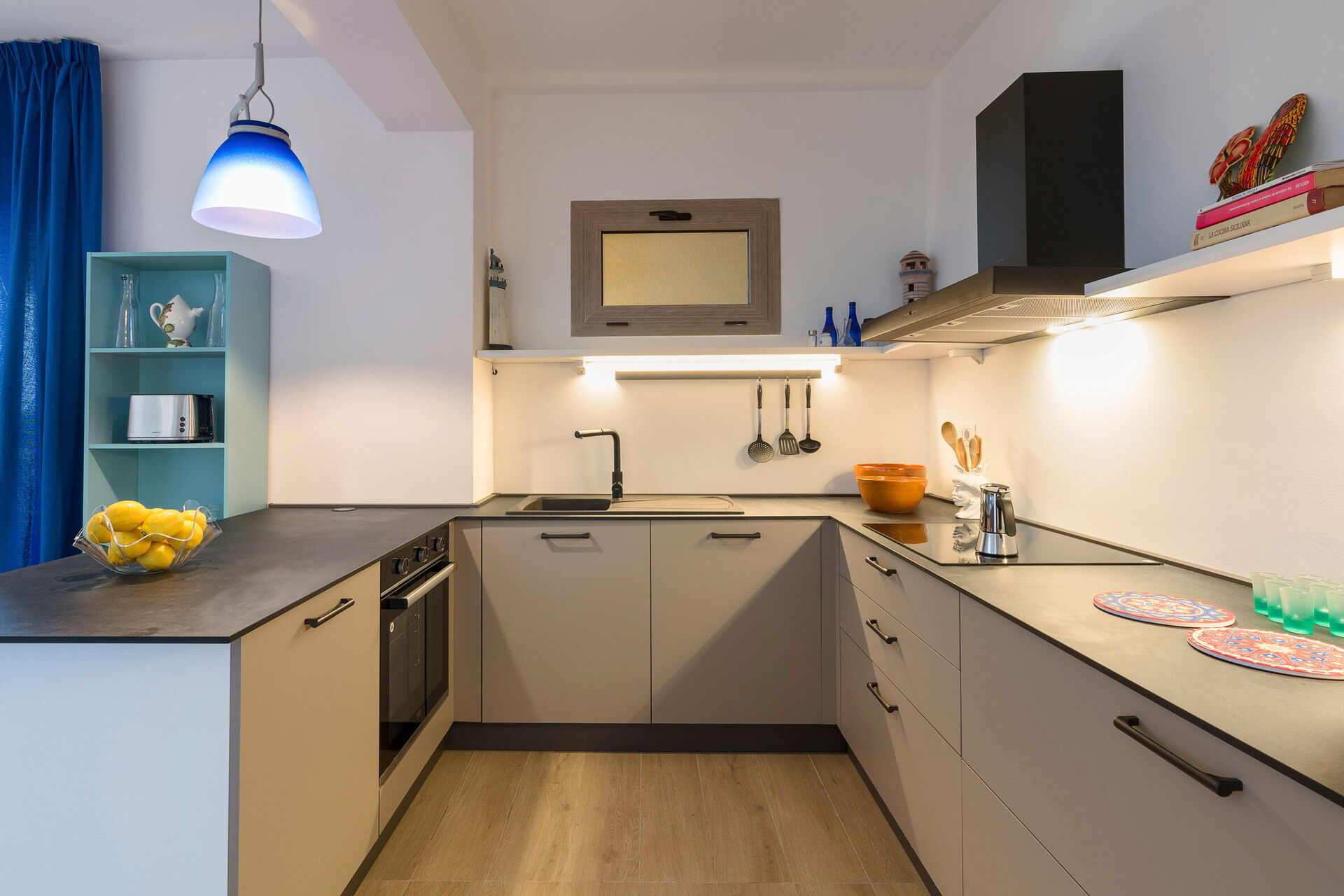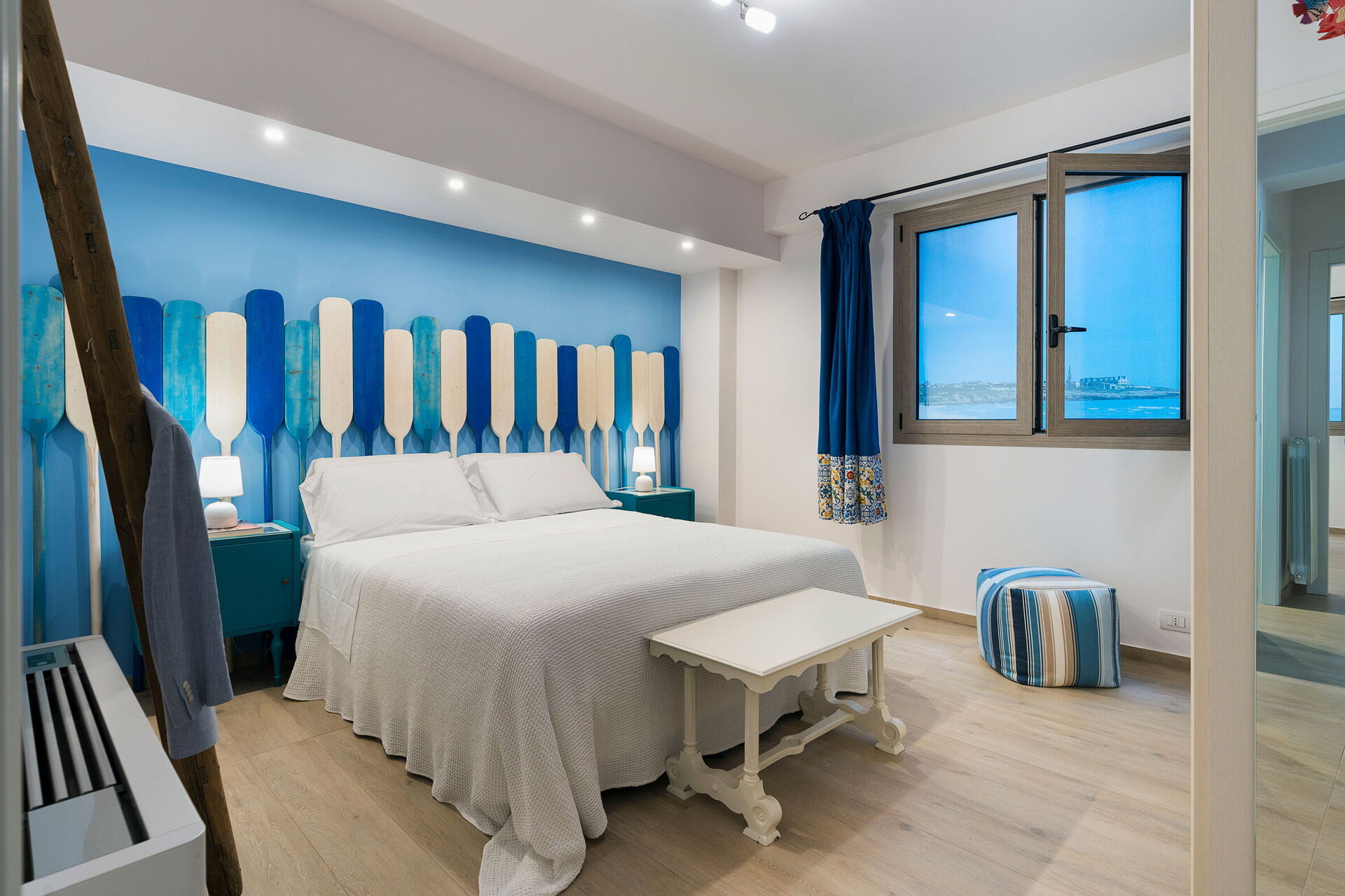 Den store terrassen med utsikt over havet er møblert for å kunne spise ute; her kan du slappe av og nyte en fantastisk panoramautsikt over landsbyen Sampieri og havet.