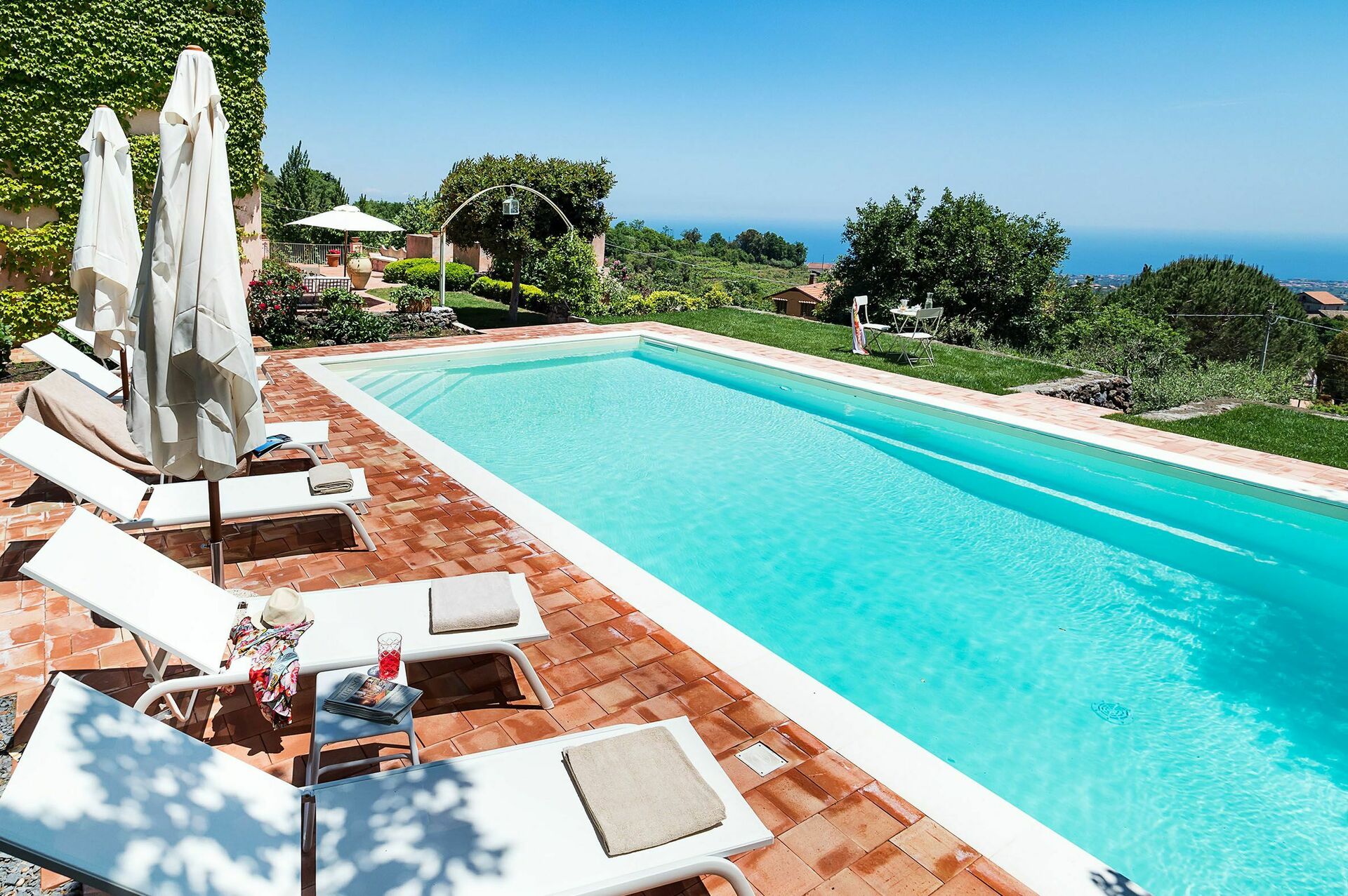 The villa was lovely and the lady who greeted us was fantastic. It was a shame that the pool was not cleaned midweek as specified, as it became quite dirty. The villa could benefit from air conditioning as it was very hot during our visit, also mirrors in the bedrooms would be an advantage. The driveway particularly near the gate was very rough and a concern when driving a hire car. On the whole it was a very pleasant stay and a good base for visiting much of what Sicily has to offer.