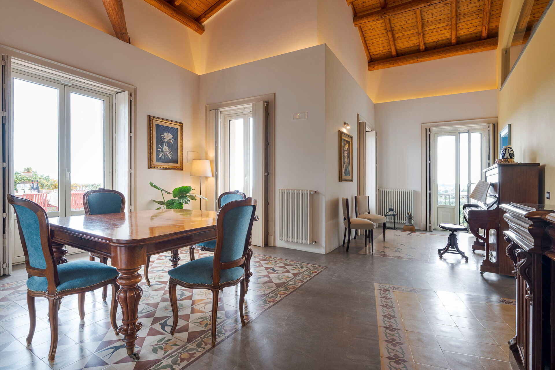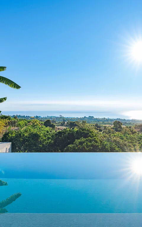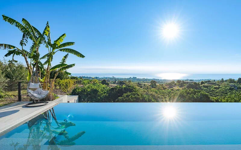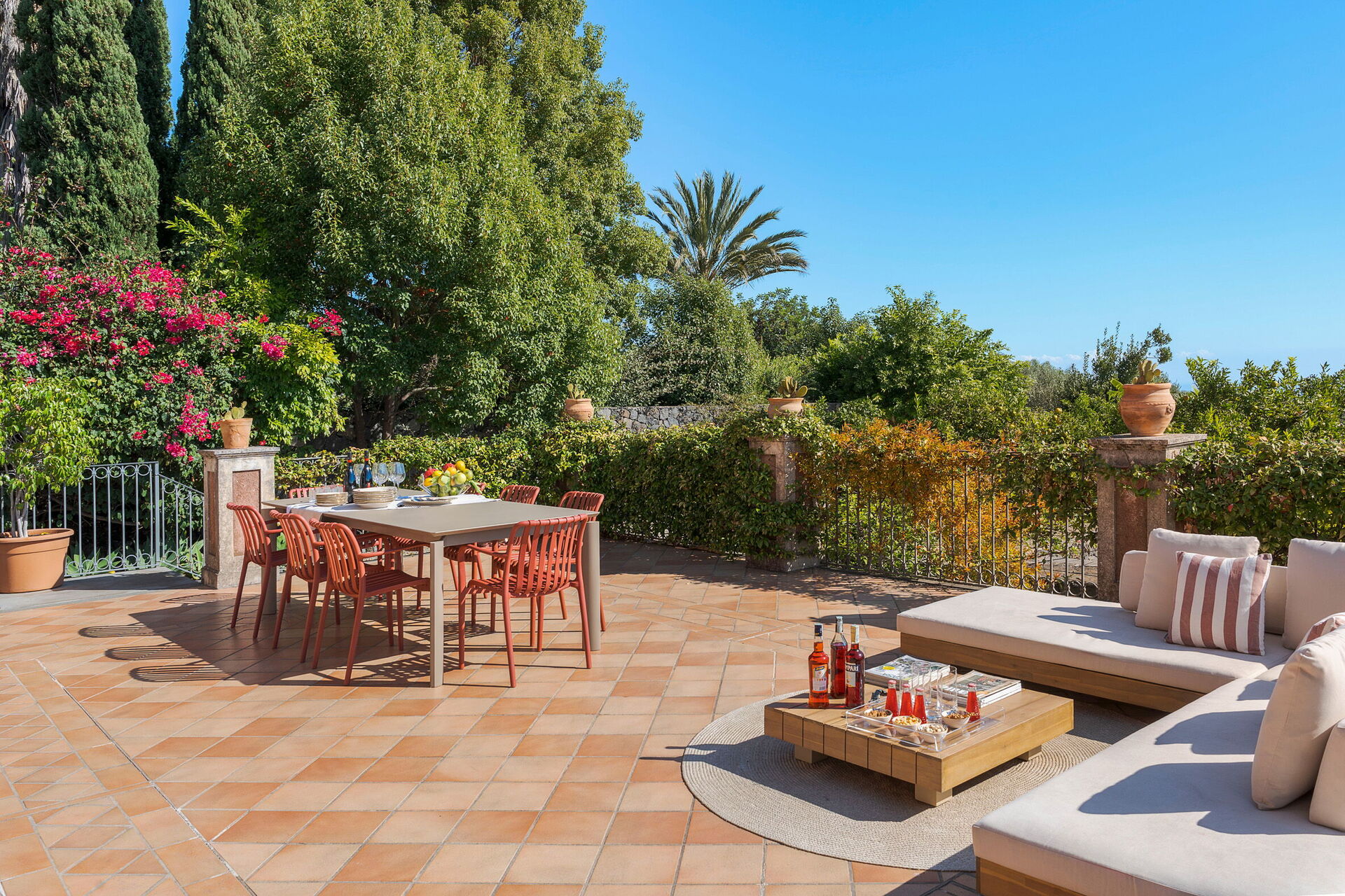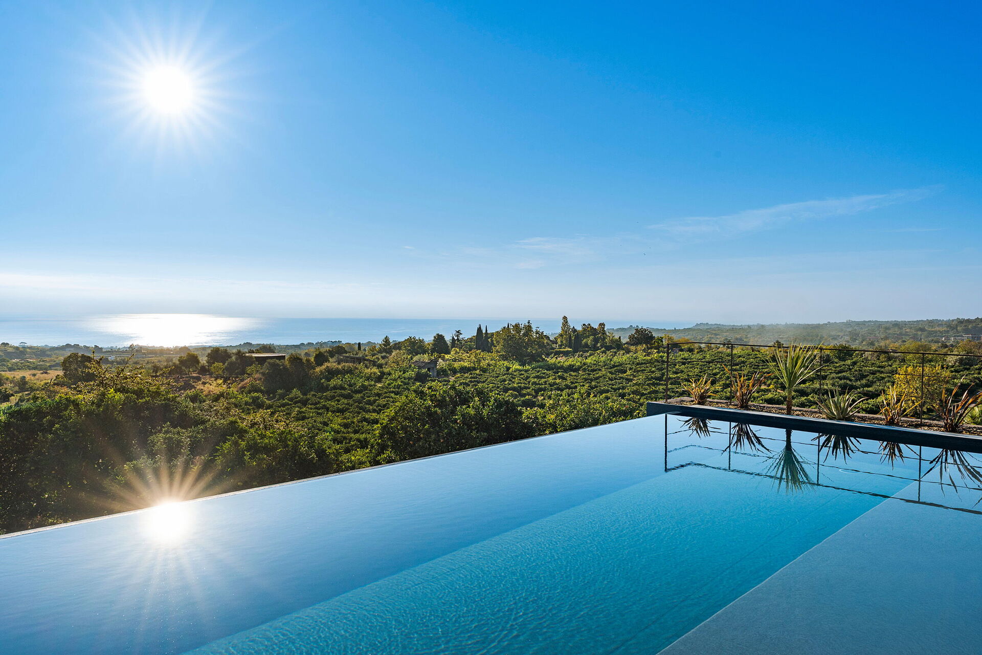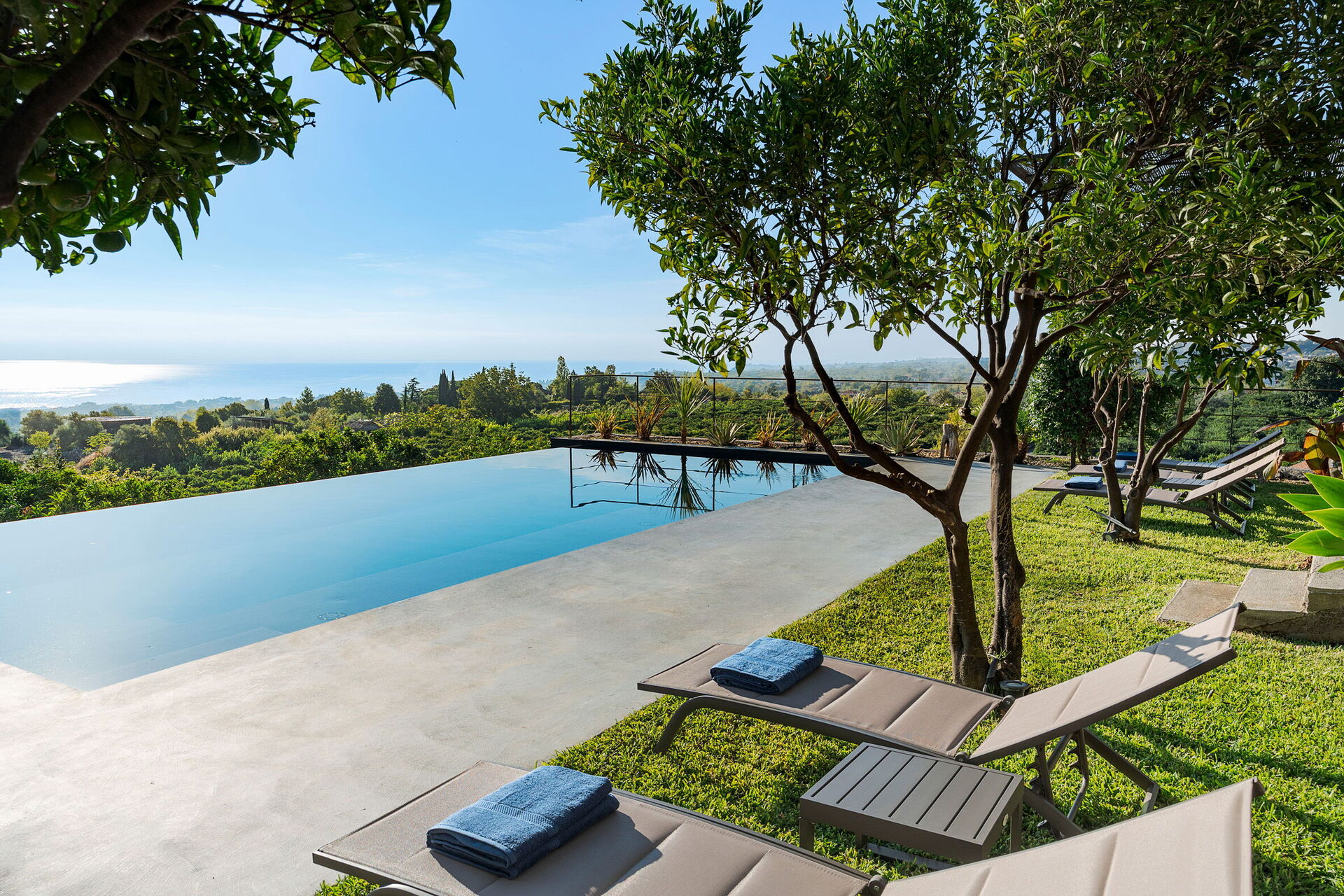 Denne praktfulle villaen vender ut mot en frodig og velstelt hage med aromatiske planter og palmer. I hagen finner man et pent saltvanns-infinitybasseng med panoramautsikt, samt store møblerte terrasser hvor gjestene kan tilbringe uforglemmelige øyeblikk under solen på Sicilia.
