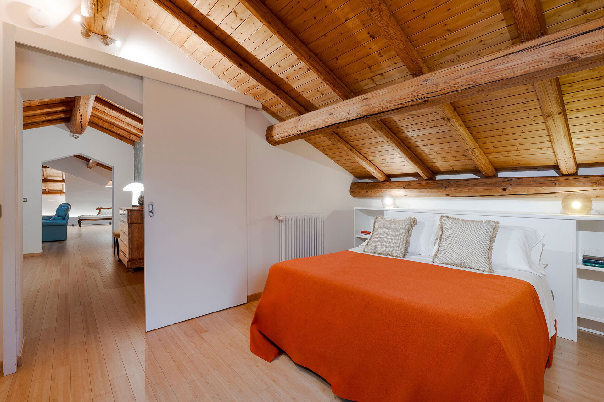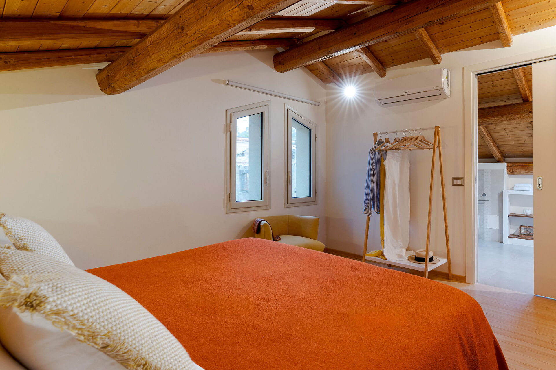 Andre etasje (hems): stor stue, dobbelt soverom (aircondition, myggnett) med eget bad med boblebad.